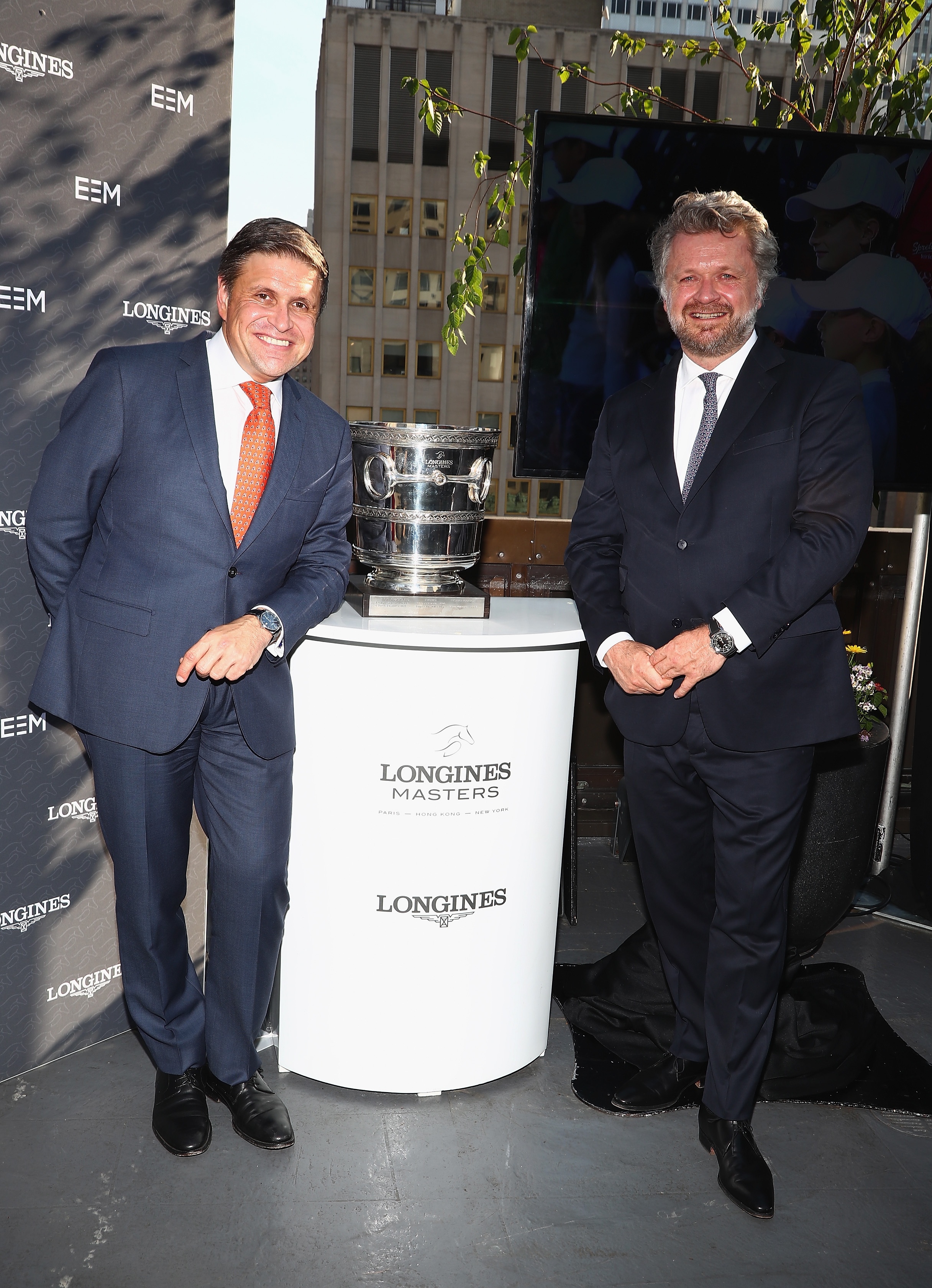 - NEW YORK, NY – MAY 17: Juan-Carlos Capelli, Longines Vice President and Head of International Marketing and Christophe Ameeuw, Founder and CEO of EEM attend the Longines Masters launch party celebrating Series’ epic move to New York at Salon de Ning on May 17, 2017 in New York City. (Photo by Astrid Stawiarz/Getty Images for Longines)