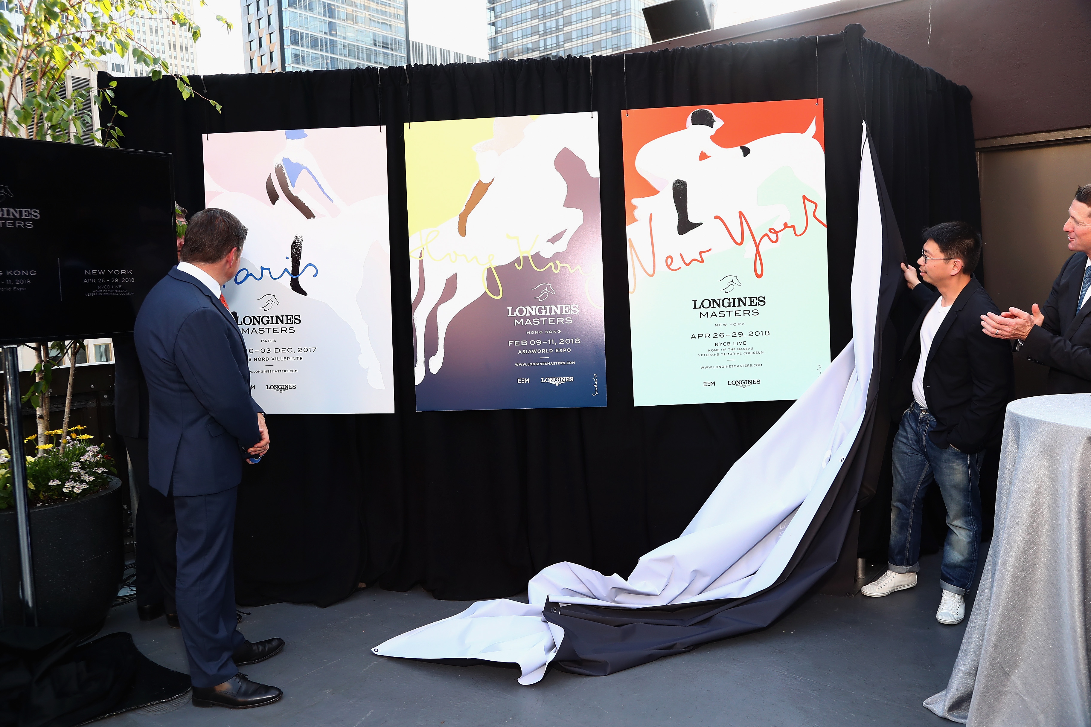 - NEW YORK, NY – MAY 17: Artist Sirichai (R) reveals posters at the Longines Masters launch party celebrating Series’ epic move to New York at Salon de Ning on May 17, 2017 in New York City. (Photo by Astrid Stawiarz/Getty Images for Longines)