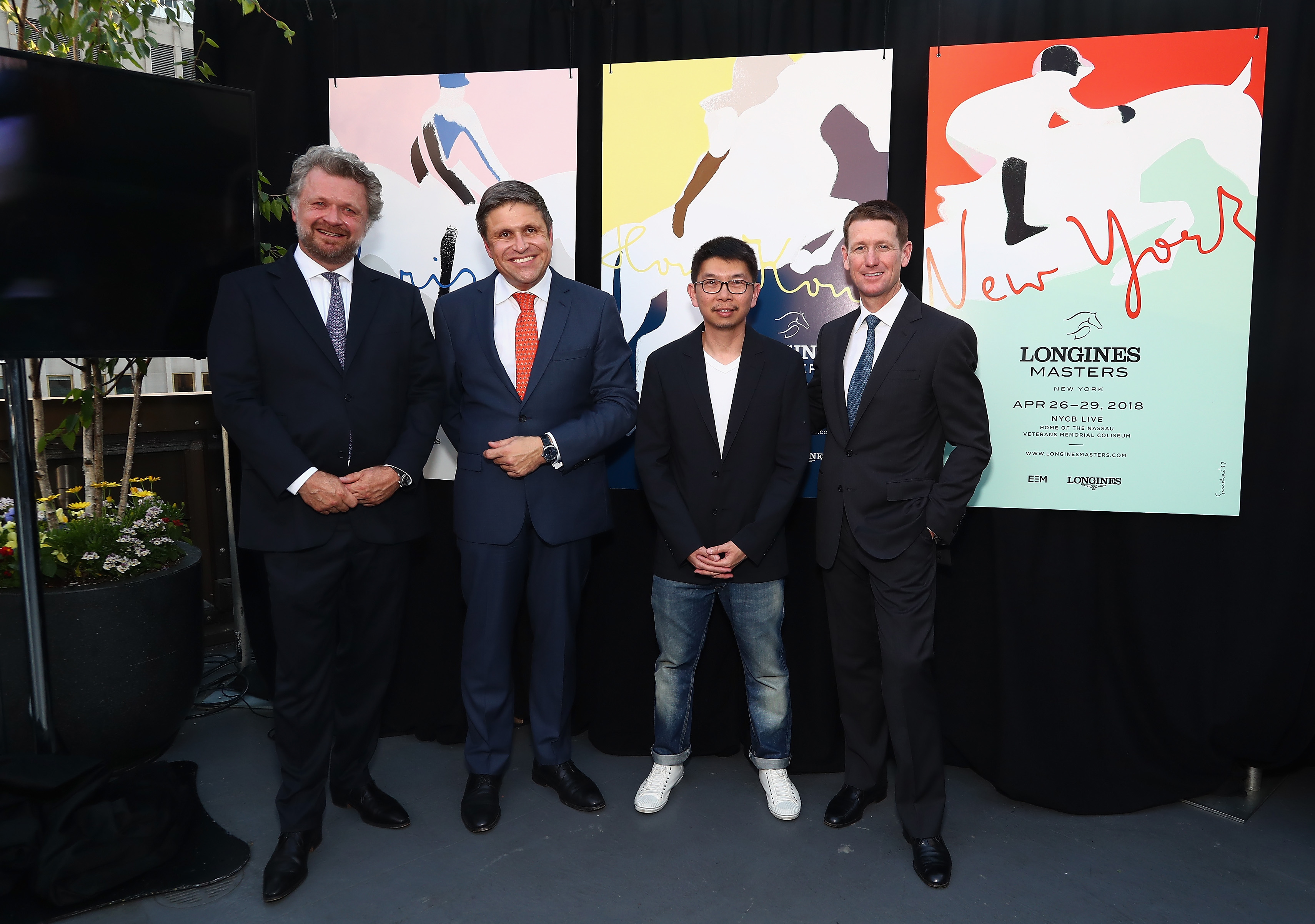 - NEW YORK, NY – MAY 17: (L-R) Christophe Ameeuw, Founder and CEO of EEM, Juan-Carlos Capelli, Longines Vice President and Head of International Marketing, artist Sirichai and Mclain Ward attend the Longines Masters launch party celebrating Series’ epic move to New York at Salon de Ning on May 17, 2017 in New York City. (Photo by Astrid Stawiarz/Getty Images for Longines)