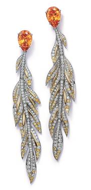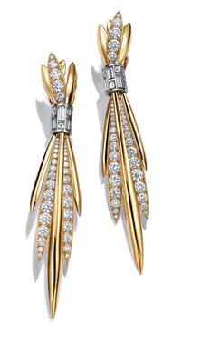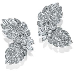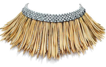 Bien que la nature se présente sous plusieurs formes, on y trouve des thèmes récurrents – telle que la régénération – qui reste éternelle. La Maison a voulu capturer cette notion de renaissance et d’énergie avec laquelle les feuilles cherchent à atteindre le soleil pour leur renouvellement. Dans la nature se trouve à la fois ce sentiment de transparence et de densité. Tiffany & Co. a su recréer ses éléments à travers les pièces Feuilles du Soleil avec un focus sur la légèreté du métal mais avec beaucoup de profondeur dans la manière dont elles sont conçues et confectionnées. Une spectaculaire paire de boucles d’oreilles en forme de feuilles de palmier qui se déploie vers l’extérieur de l’oreille est composée de tsavorites et de saphirs jaunes ainsi que des perles noires des Mers du Sud qui ont été choisies pour leurs intenses nuances de vert pour obtenir une pièce parfaitement harmonieuse. Tiffany & Co. exige que toutes ses perles de Tahiti ne possèdent aucune imperfection, ceci ajoutant un challenge supplémentaire pour trouver une paire complémentaire.