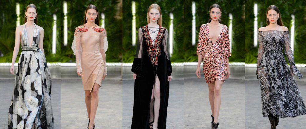 Investissement des cours carrées des lycées Parisiens, et des cloîtres de Port Royal : la Haute-couture s’ouvre dans les lieux historiques d’élaboration du savoir français. Des espaces ou le temps se suspend dans des décors verdoyants; même si la chaleur de l’été agite les éventails au premier rang. Pourtant c’est vers les souffles de l’hiver que Paris se tourne. La bourrasque apparait dans les déserts de L.A avec Rodarte, prend dans son tourbillon des coquillages pailletés chez Galia Lahav avant de s’essouffler dans la palette plus sombre de XUAN couture.