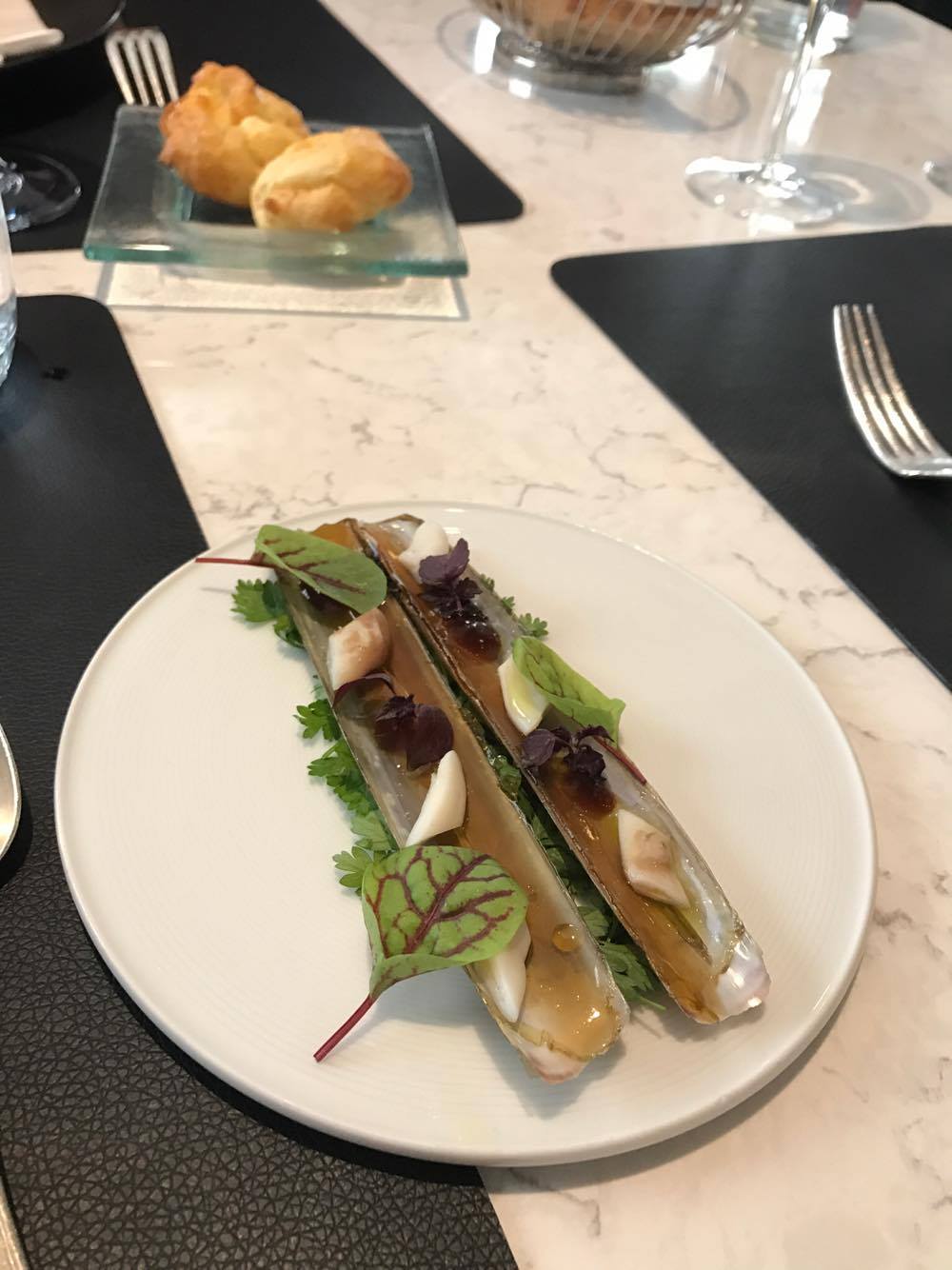 C’est avec un certain enthousiasme que je me suis rendu il y a quelques semaines au Crom’Exquis. J’y étais déjà allé il y a quelques années et j’en avais plutôt un assez bon souvenir. Le lieu a fermé ses portes plusieurs mois suite à un incendie et s’est refait une beauté. Le restaurant mérite le déplacement pour la cuisine orchestrée par le chef Pierre Meneau, fils du célèbre chef étoilé Marc Meneau et formé à l’excellence de la cuisine française. C’est vraiment un chef atypique cultivé et brut de décoffrage. Un homme très attachant. Un vrai passionné !