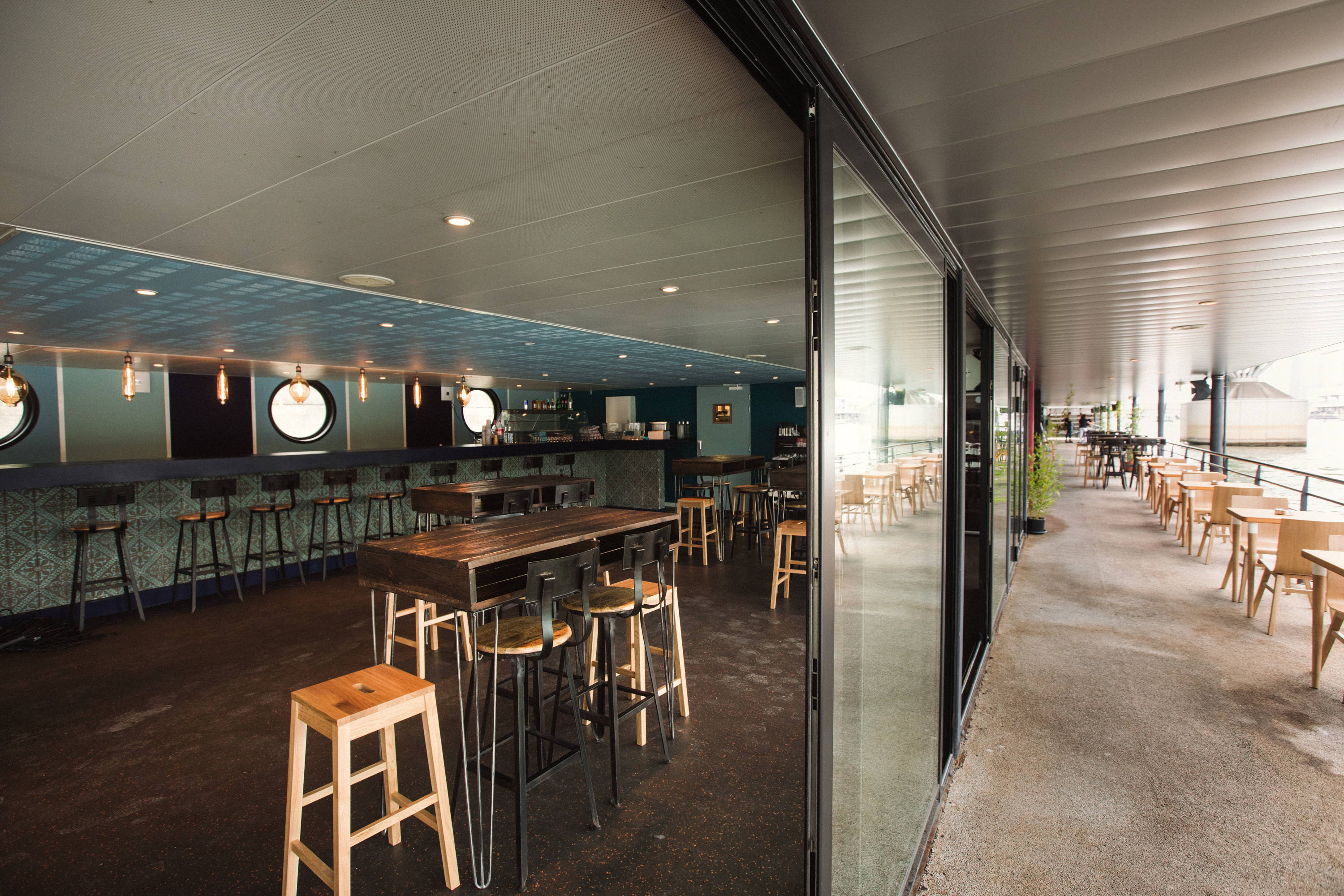 Un restaurant au fil de l’eau C’est entre terre et mer que l’équipe de la Démesure vous accueille et vous propose une pluralité d’expériences au sein d’un même lieu. Sur la barge, on retrouve le restaurant aux accents méditerranéens avec ses 90 couverts intérieurs et ses 120 places sur la promenade au bord de l’eau qui, par son orientation permet de profiter du soleil du matin au soir. Les tables sont disposées autour d’un grand bar ouvert rappelant l’ADN de La Démesure. Sur place, venez y déguster du Lomo Bellota (7,50€ les 50g), des gambas grillées au lard de Colannata (12,50€), de la viande de boeuf sauce bolognaise (12€) ou une salade de poulpe et céleri à 9€.