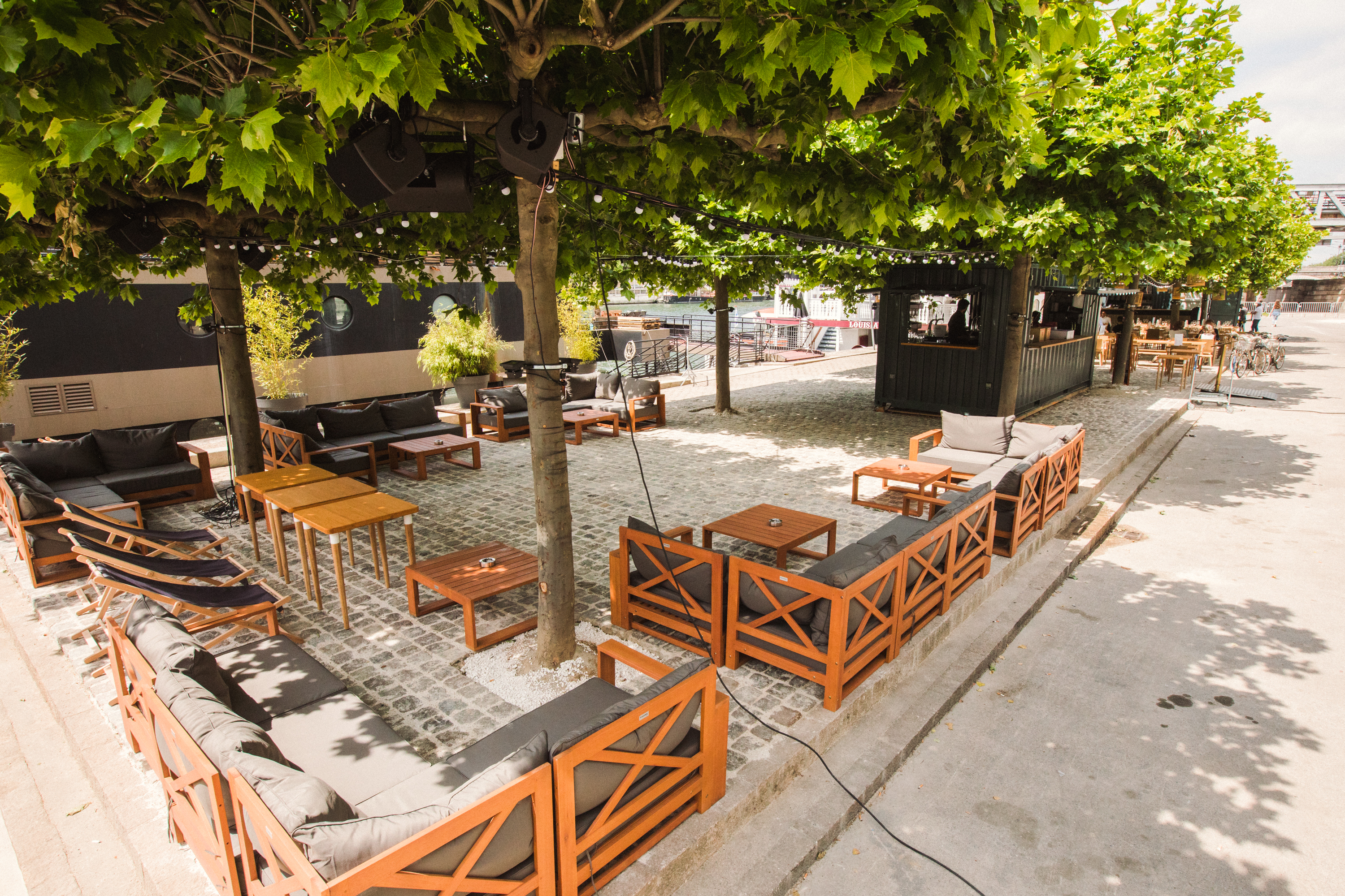 Dans une ambiance plus décontractée, un coin chill vous accueille dans un espace conçu comme un jardin véritable, grands canapés, terrain de pétanque et chaises longues. De nombreuses activités y sont prévues, et rythmeront vos journées et vos soirées : apéro piano, concerts acoustiques, collectif d’artistes, expositions photos, co-working avec Wifi gratuit … Sur le quai, le bar principal inspiré de celui de La Démesure peut accueillir plus de 200 personnes dans une décoration industrielle où bois brut et canapés côtoient le soleil et parasols végétaux qui se reflètent dans les eaux scintillantes de la Seine.