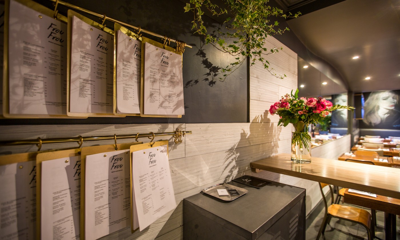 Tous les dimanches, FrouFrou propose un brunch à la cuisine ultra-raffinée qui se renouvelle chaque semaine et twiste les best-sellers anglo-saxons (les œufs, le pain perdu) avec quelques clins d’œil au déjeuner dominical à la française comme le poulet rôti ! Exemple de brunch : une boisson chaude, un panier de pains, beurre et confitures, un jus frais, une faisselle à la noix et fines herbes, un poulet rôti arrosé de jus et des pommes de terres grenailles, du pain perdu au caramel beurre salé.