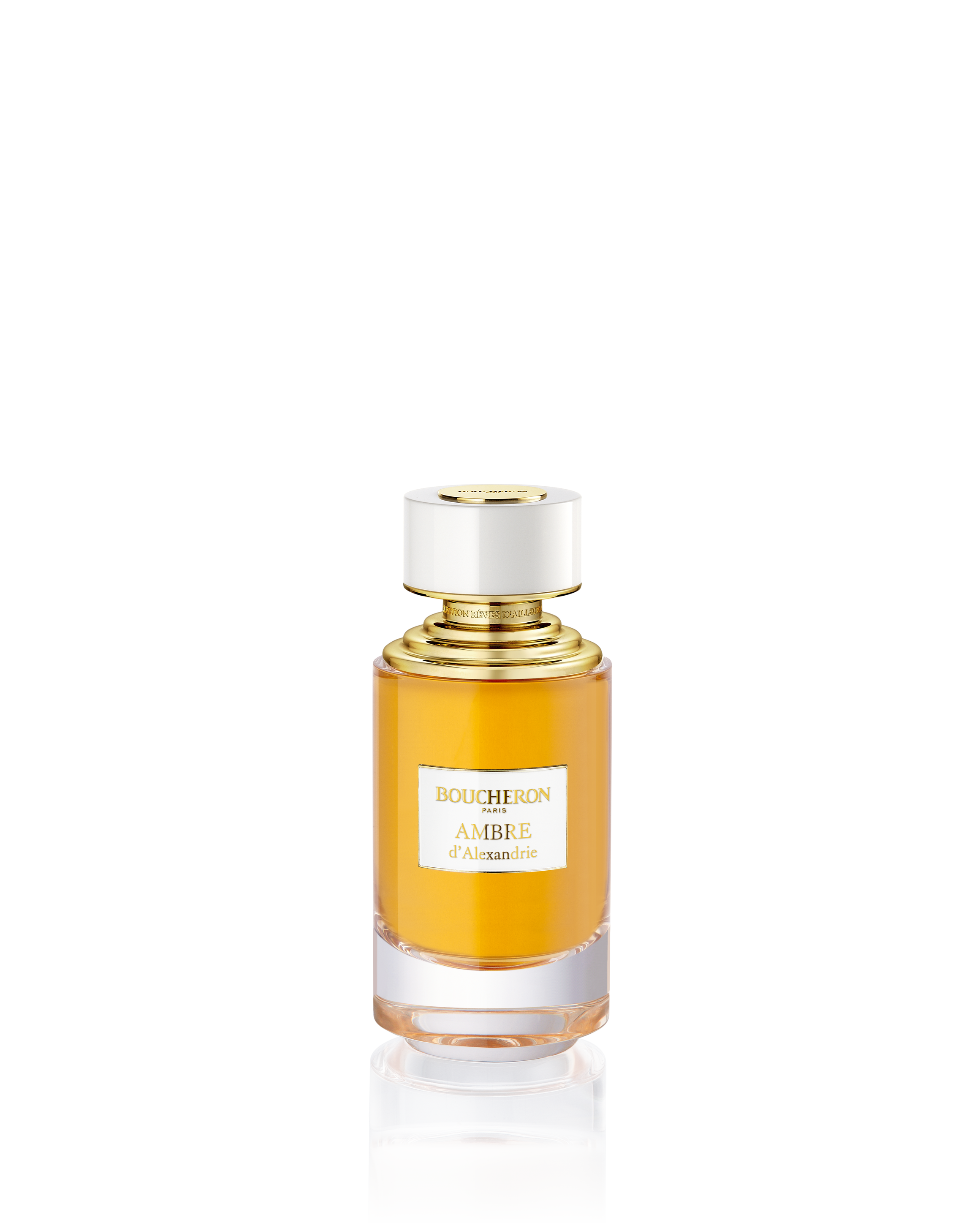 La cité millénaire égyptienne, d’Alexandrie éclairait l’antiquité de sa culture et de ses arts, mais aussi de ses richesses minérales. L’Ambre, pierre aux multiples vertus, apporta à la Joaillerie une part de magie, de mystère et d’imperfections à sublimer. L’Ambre de la Collection est construit dans une harmonie singulière pour combiner des ingrédients à fort caractère, aussi précieux que les épices et les résines échangées alors à Alexandrie. Le plus intemporel des Ambres de parfumeur, harmonie voluptueuse de vanille lactée, de benjoin aux facettes pralinées, de volutes enivrantes de narguilé et de résine de ciste, embrasée par quelques touches charnelles animales. Un oriental ambré, précieux et intemporel A la fois douces et voluptueuses, les notes de Vanille Lactée et de Benjoin ont été enrobées d’un accord Esprit de Narguilé, dans un surprenant mélange mystique et hypnotisant. La résine de Ciste vient rehausser l’accord Ambré avec ses facettes orientales cuirées. Pour plus de complexité avec une touche animale, le fond a été créé autour d’un lit d’Ambre Gris et de Musc charnel, laissant un sillage remarquable