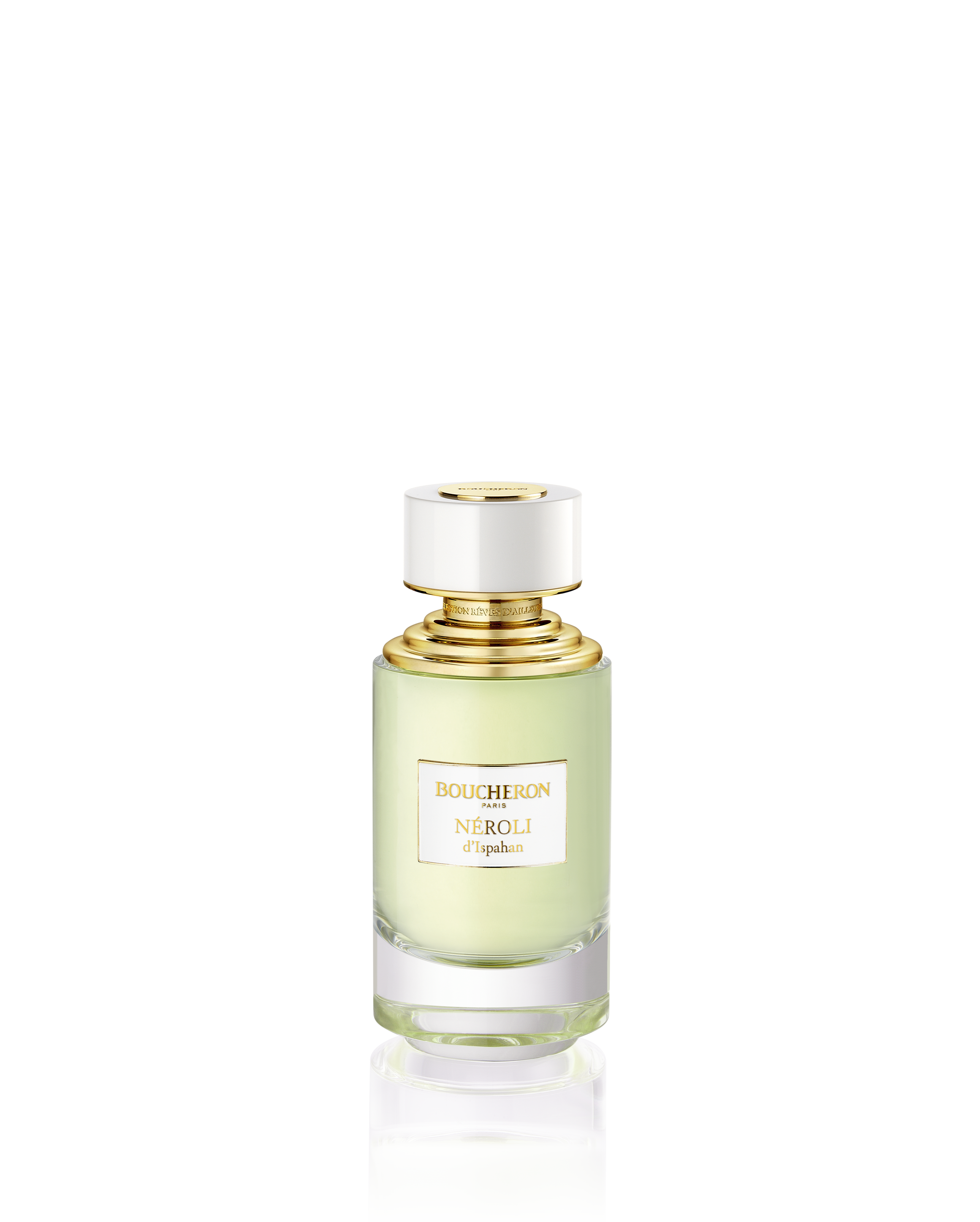 À la croisée des routes de la soie et des épices entre Orient et Occident, la verte Ispahan étincelle au soleil du désert comme un éclat dans un écrin de sable. Par ses paysages authentiques et ensoleillés, Ispahan, la cité persane, invite au voyage, à la contemplation, à explorer un ailleurs qui détient de fabuleux trésors : de pierres précieuses ou olfactifs. Un joyau de verdure enchâssé dans la chaleur des déserts, dont la fraîcheur rappelle le Péridot et sa teinte acidulée. Dans ses jardins sublimes s’épanouit librement l’oranger dont la fleur embaumante prodigue la précieuse Essence de Néroli. Chauffé par le soleil, secoué par le vent, le Néroli irradie d’intensité et de contraste. Il est ici revisité avec beaucoup de relief comme une eau ambrée. Une eau ambrée, fraîche et lumineuse L’association éclatante en tête, de la Cardamome Verte et du Gingembre présente une profondeur élégante et fusante, accentuée par les facettes fraîches et poivrées de l’Elémi. Un puissant trio qui révèle le caractère fougueux des épices. Infusée par l’intensité solaire du Néroli, la fragrance dévoile un coeur de Ciste dont la douceur ambrée et résineuse est facettée par la vigueur effervescente du Poivre Rose. Bercé par la sensualité délicate des Muscs Blancs, ce fond authentique conjugue la minéralité ambrée de l’Ambrox® et le caractère profondément boisé et chaud de l’Essence de Patchouli.