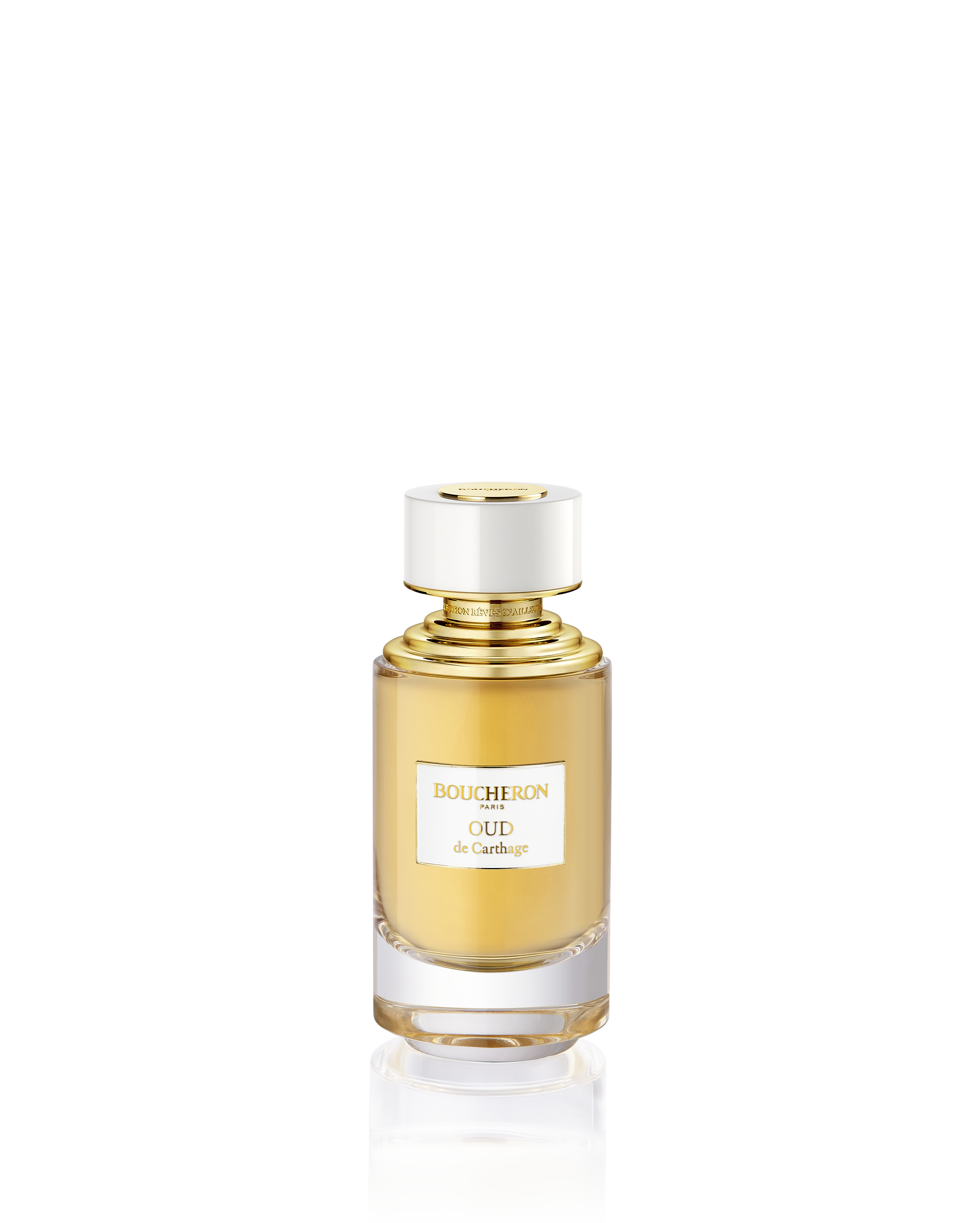 La puissante Carthage a vu transiter les matières les plus nobles et les plus précieuses du monde antique. Le Bois de Oud, se mêlait aux cargaisons de pierreries, d’encens, d’épices, apportées en terres tunisiennes, depuis l’Orient mystérieux. Les chasseurs de pierres ont marché sur les traces de ces marchands, ils ont traversé monts et océans pour y découvrir le Quartz Fumé, une pierre à l’éclat aussi énigmatique que les effluves du Bois de Oud. La magnificence du Oud, puissamment oriental par la force des résines, envoûtant grâce aux notes gustatives, et imposant dans un sillage de bois. Un oriental cuiré, riche et puissant Un accord extrêmement riche, offrant trois facettes aussi distinctes que complémentaires. La force d’une note orientale avec une touche mystique apportée par l’Encens et le Miel. Le magnétisme déclenché par un mélange de Labdanum Absolu et de Fève Tonka aux notes sensuelles et confortables. En fond, la touche racée et imposante de deux accords Oud et Cuir.