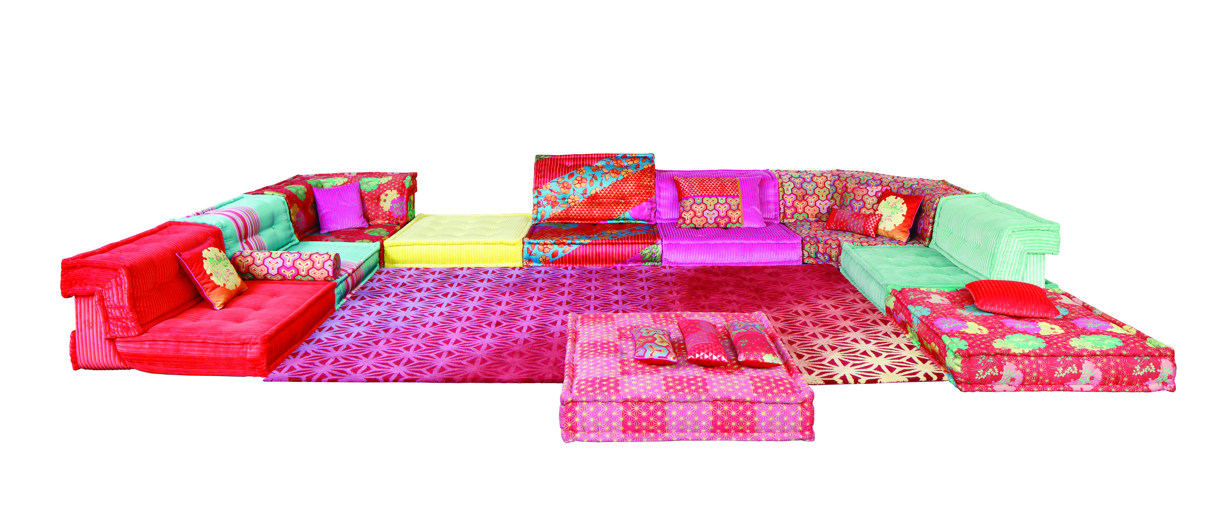 Le créateur japonais Kenzo Takada revisite quant à lui le mythique canapé Mah Jong de Roche Bobois en réinterprétant des motifs inspirés d’anciens kimonos japonais. Il réalise une collection de tissus déclinée en trois harmonies qu’il agrémente d’une ligne de coussins et de céramiques teintée de modernité et d’élégance.