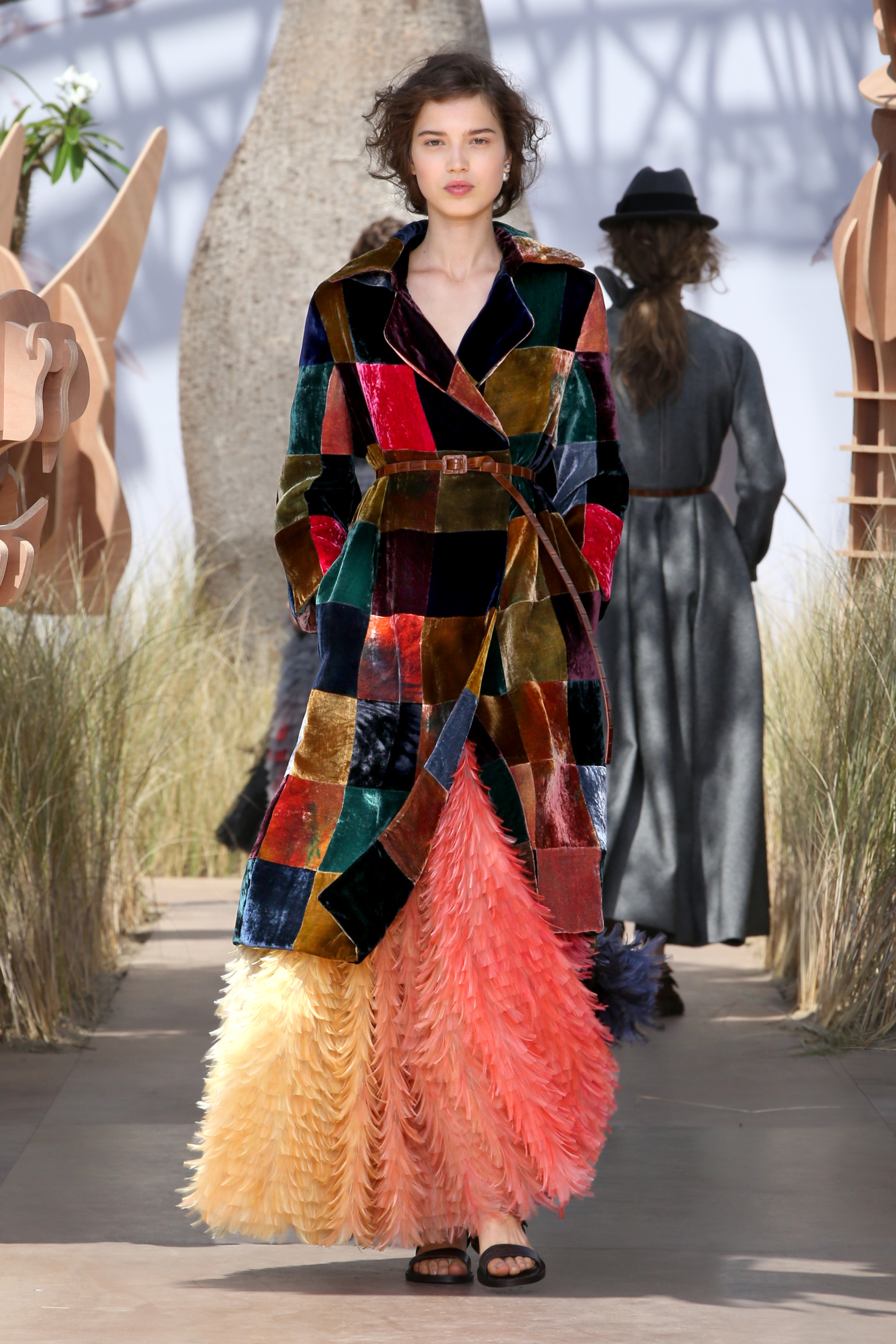 D’un côté, une gravure d’Albert Decaris, datant de 1953 et retrouvée dans les archives Dior : une carte des cinq continents qui raconte la Maison et son expansion dans le monde. De l’autre, cette affirmation lue dans Christian Dior et moi, l’autobiographie du couturier : «Une collection complète doit s’adresser à tous les types de femmes dans tous les pays. » Ce sont ces deux inspirations qui guident Maria Grazia Chiuri, Directrice Artistique des collections femme, pour ce défilé de haute couture automne-hiver 2017-2018, qui célèbre les soixante-dix ans de la Maison.