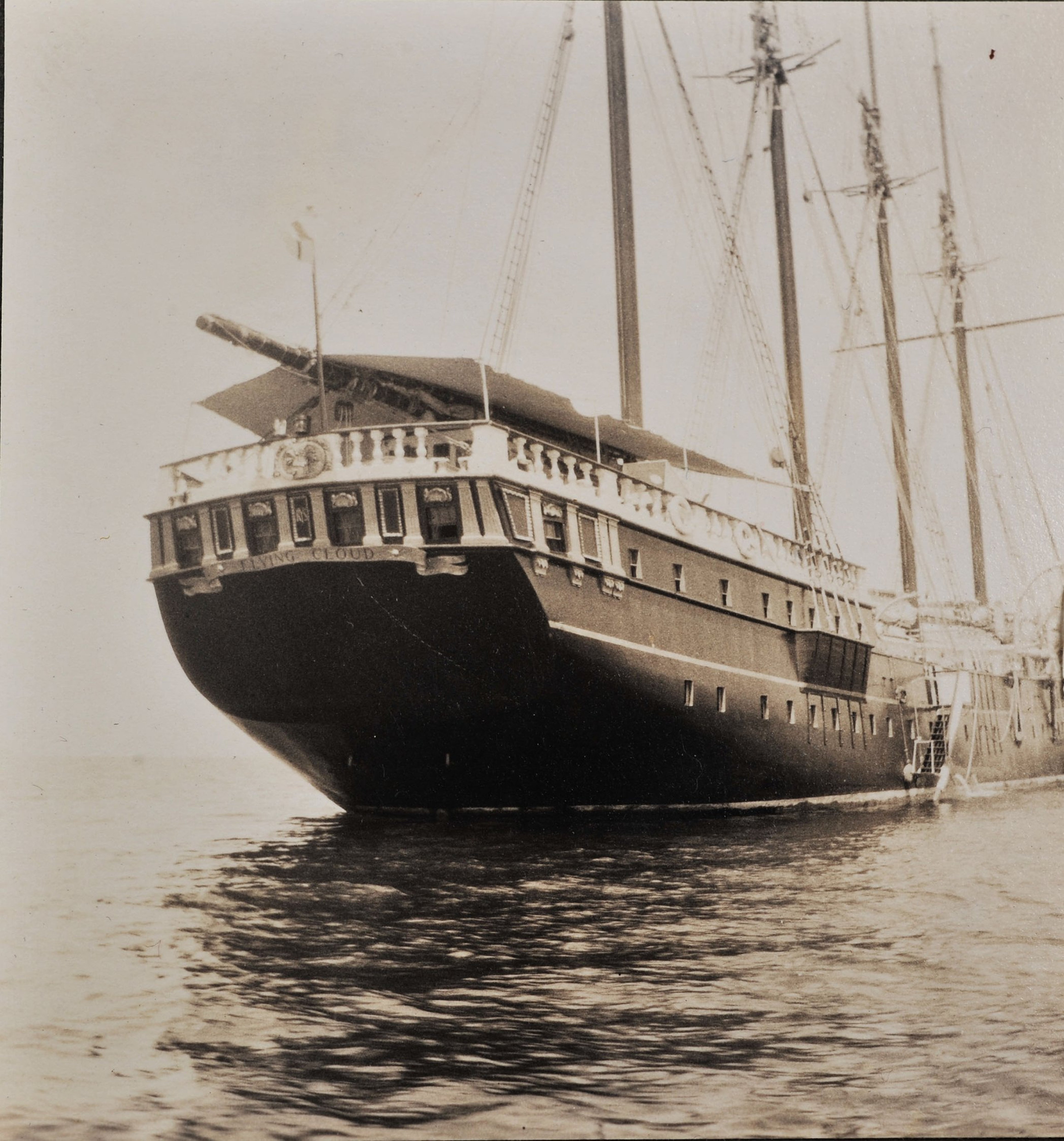 Flying Cloud : un quatre-mâts à la coque noire et au pont de bois blanc qui ne fut pas seulement lieu de vacances, et d’amours, parfois orageuses, mais aussi et surtout l’emblème d’un mode de vie où le luxe le plus inouï – il ne fallait pas moins d’une quarantaine d’hommes d’équipage pour mener le bateau – n’était que la condition de la simplicité la plus extrême, de déjeuners de soleil, de charades et de conversations entre amis. « Le luxe, disait Gabrielle Chanel, est une nécessité qui commence où s’arrête la nécessité ».