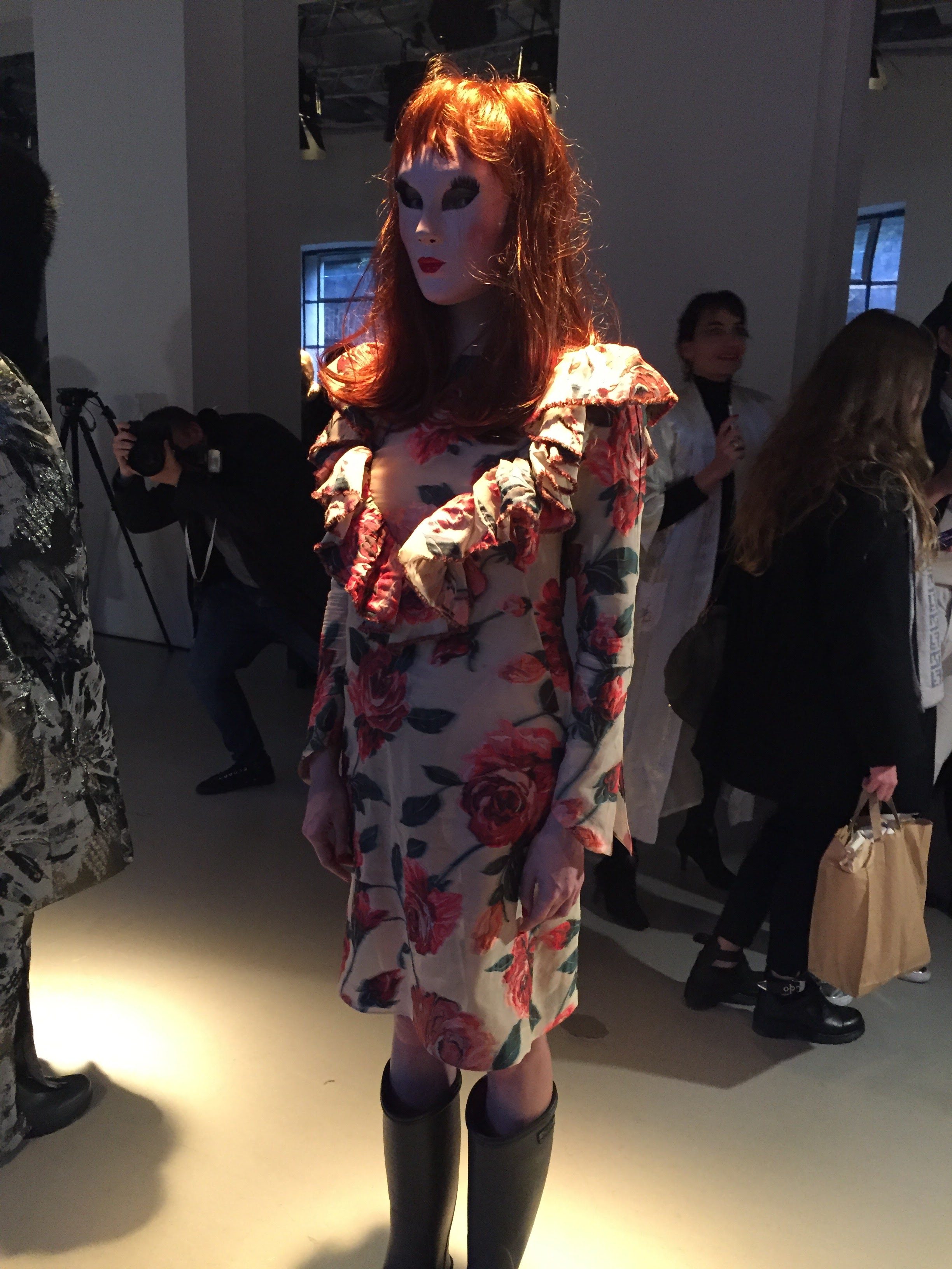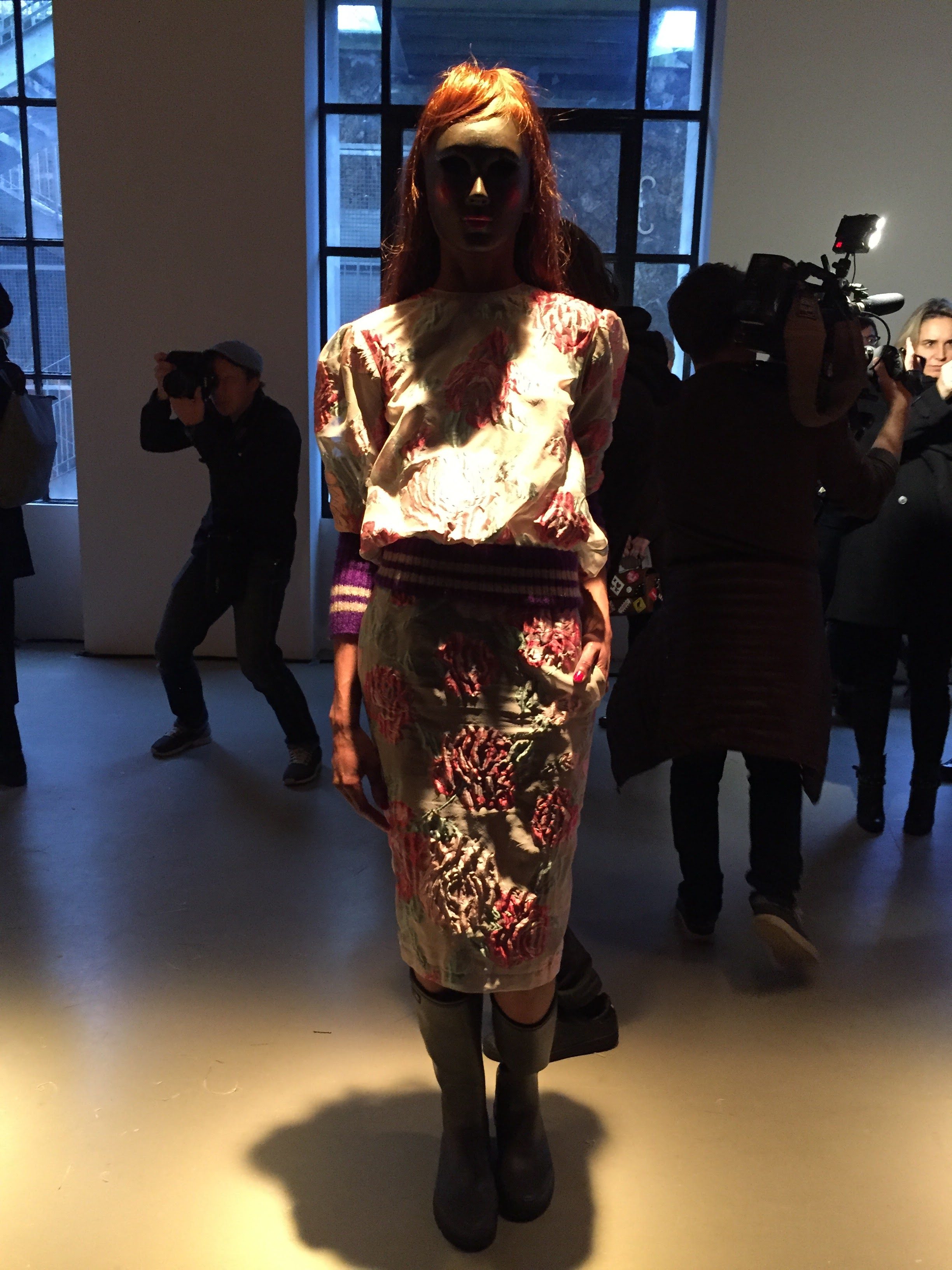 La collection est un grand bouquet champêtre embrassant tous ses vêtements fétiches. Fraichement déballées pour cette courte escale au Palais de Tokyo, les silhouettes sont déjà sur le depart, direction New York ou la Bretagne, qui sait ?