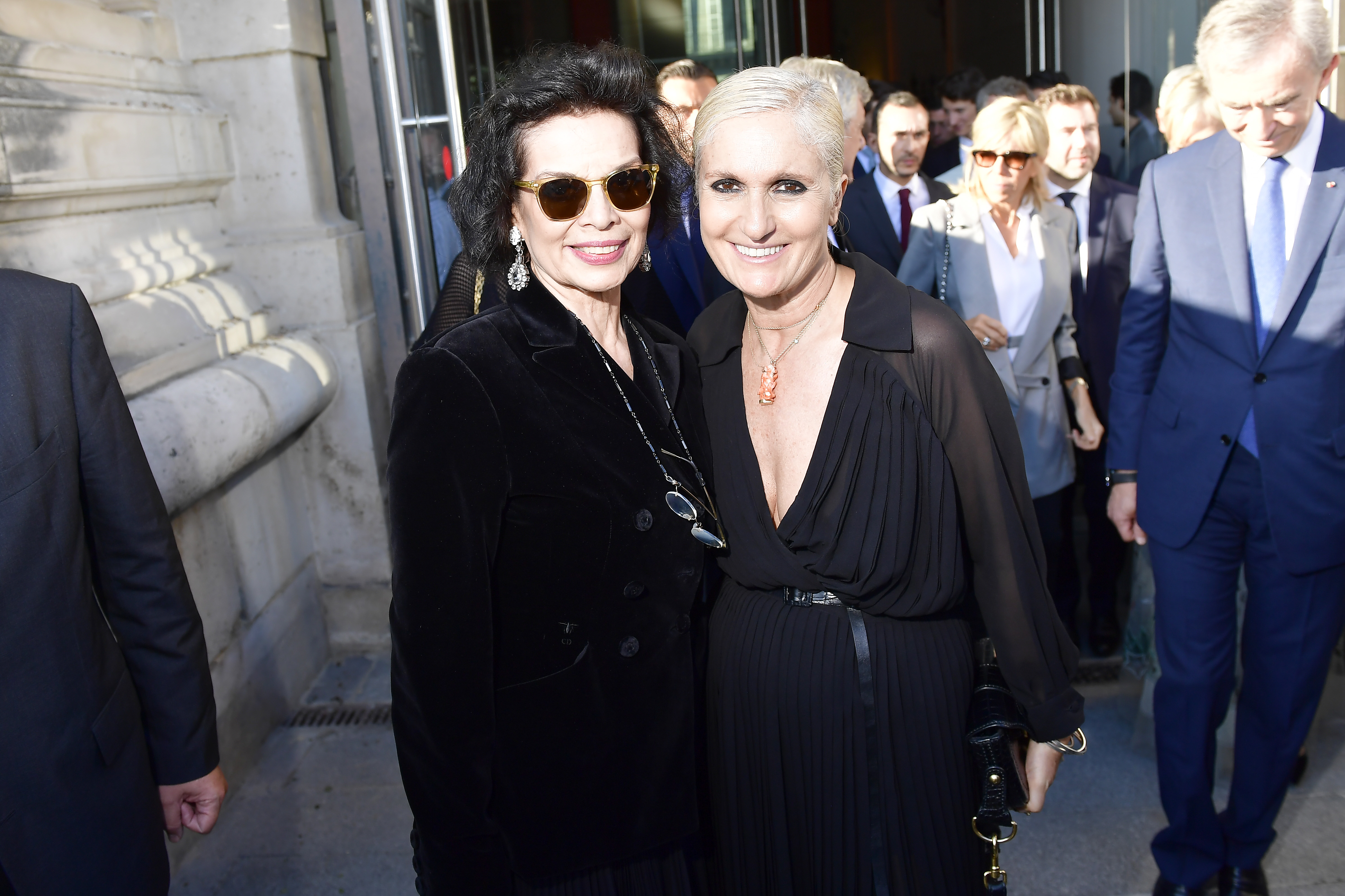 PARIS, FRANCE – JULY 03: Bianca Jagger and Maria Grazia Chiuri attend ‘Christian Dior, couturier du reve’ Exhibition Launch celebrating 70 years of creation at Loulou Club on July 3, 2017 in Paris, France. (Photo by Victor Boyko/Getty Images for Christian Dior) *** Local Caption *** Bianca Jagger;Maria Grazia Chiuri