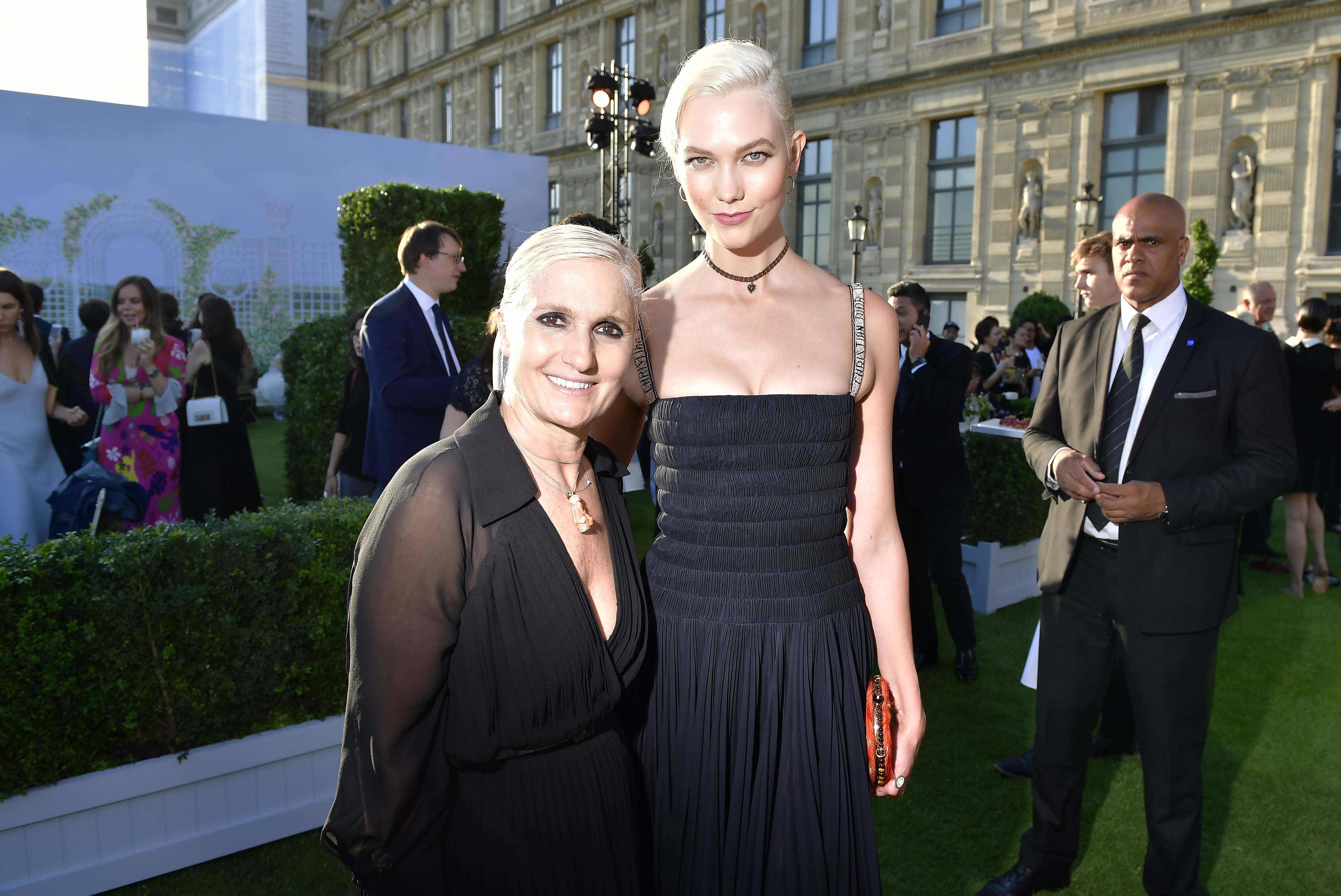 PARIS, FRANCE – JULY 03: Maria Grazia Chiuri and Karlie Kloss attend ‘Christian Dior, couturier du reve’ Exhibition Launch celebrating 70 years of creation at Loulou Club on July 3, 2017 in Paris, France. (Photo by Victor Boyko/Getty Images for Christian Dior) *** Local Caption *** Maria Grazia Chiuri;Karlie Kloss