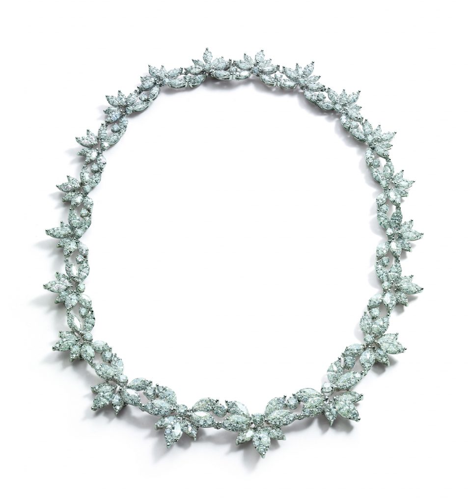 Chaque bijou de cette collection est un petit chef d’œuvre, une mosaïque de pierres blanches d’une grande pureté juxtaposées pour se mettre en valeur les unes et les autres. Une pure merveille pour une collection sous le signe du romantisme et du charme féminin.