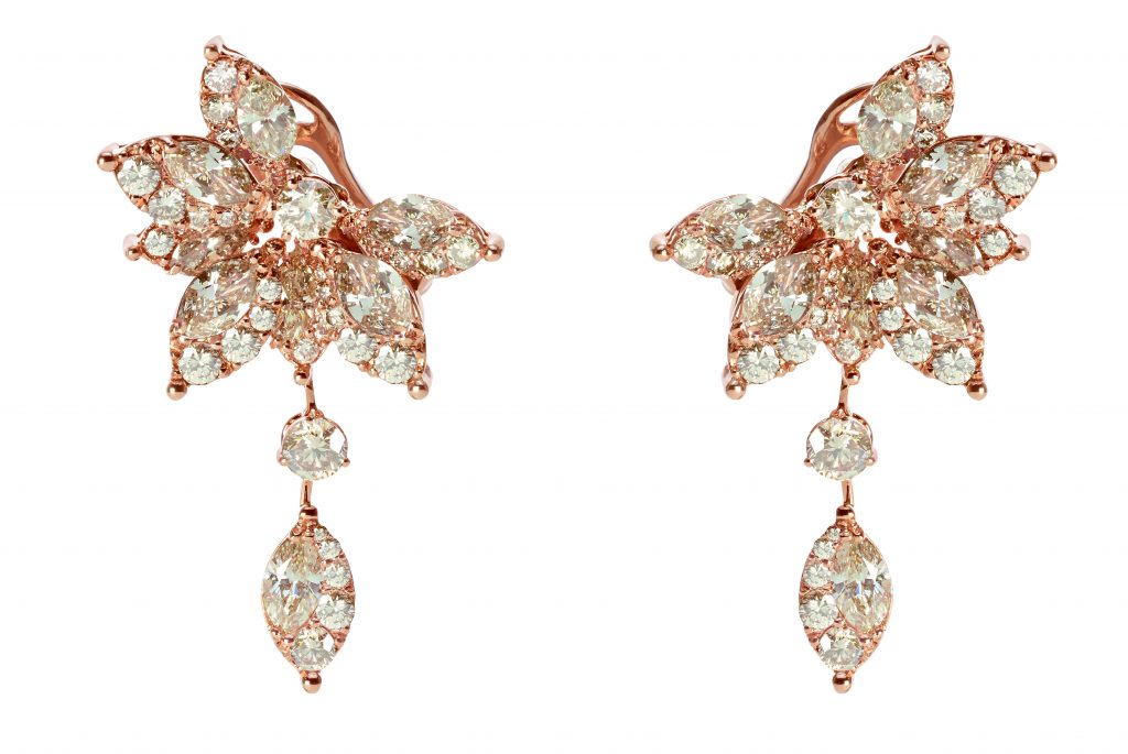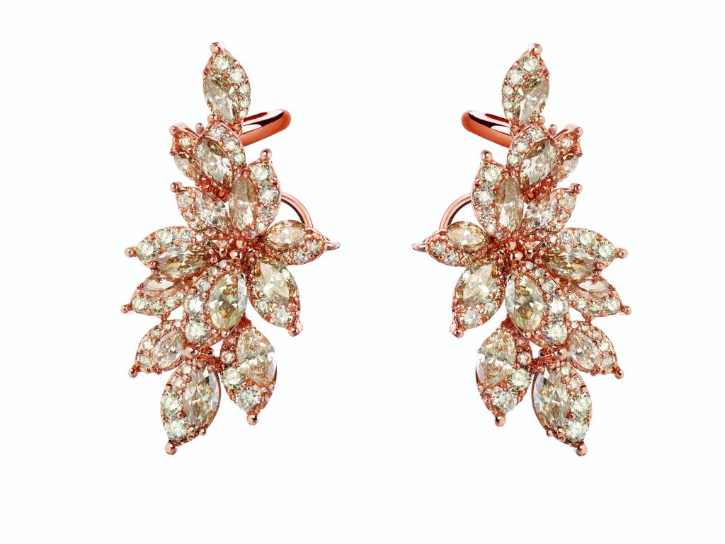 La collection se compose de deux versions : une en diamants blancs, et l’autre en diamants bruns montés sur or rose.