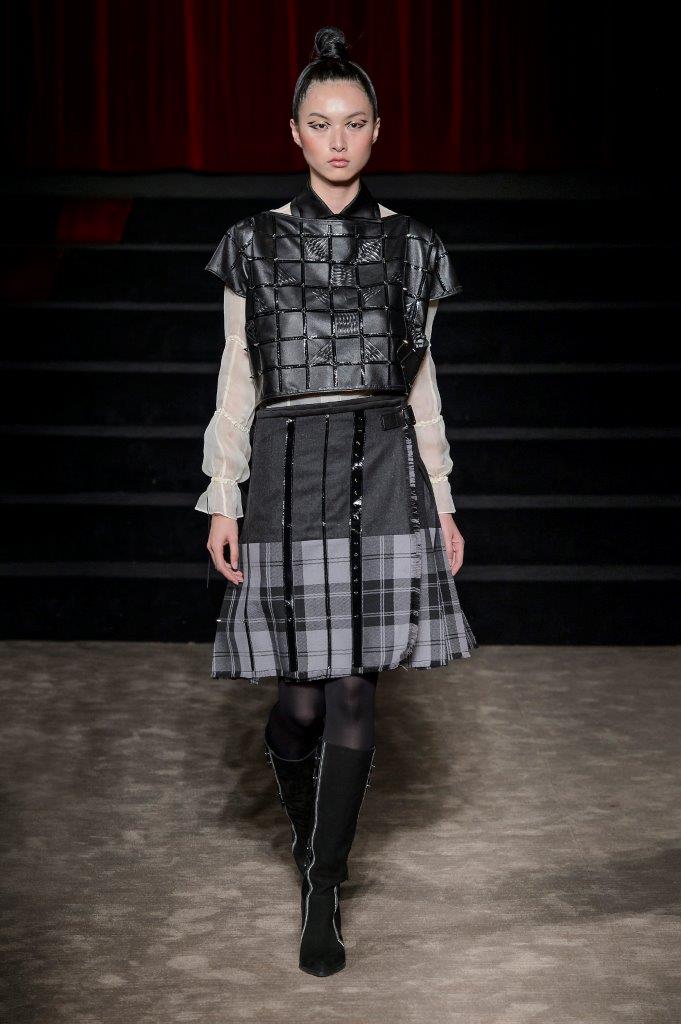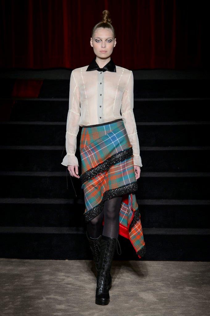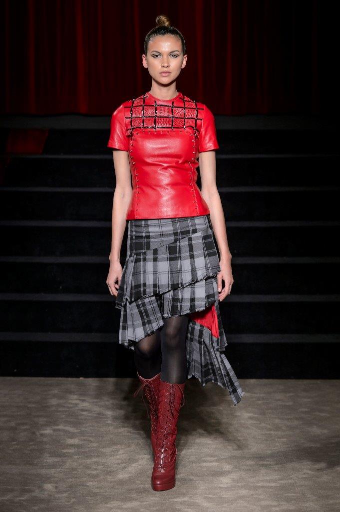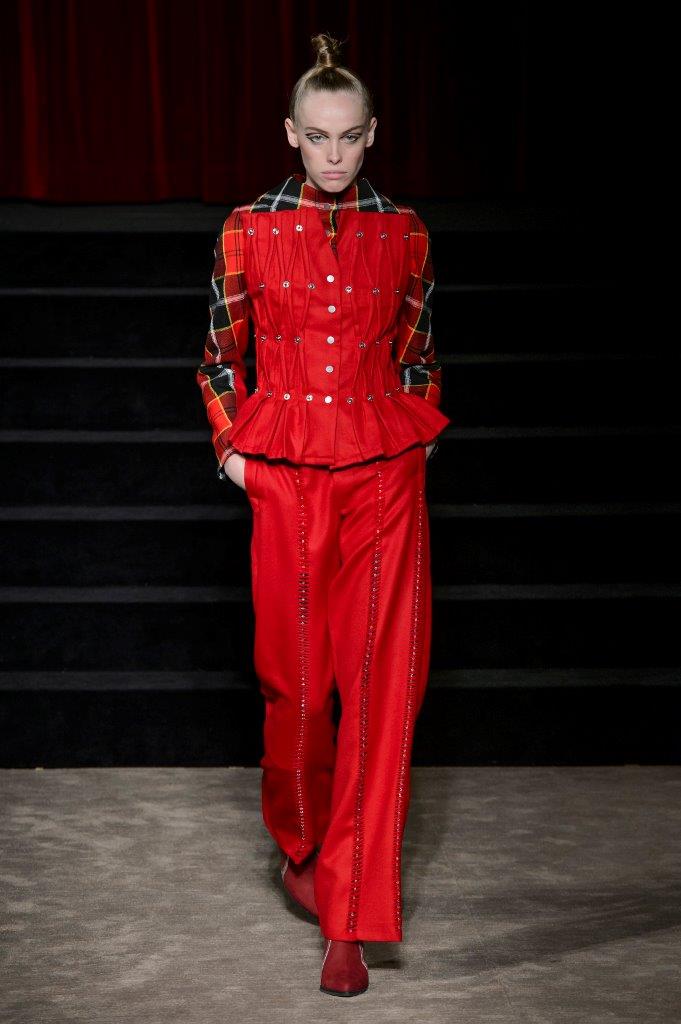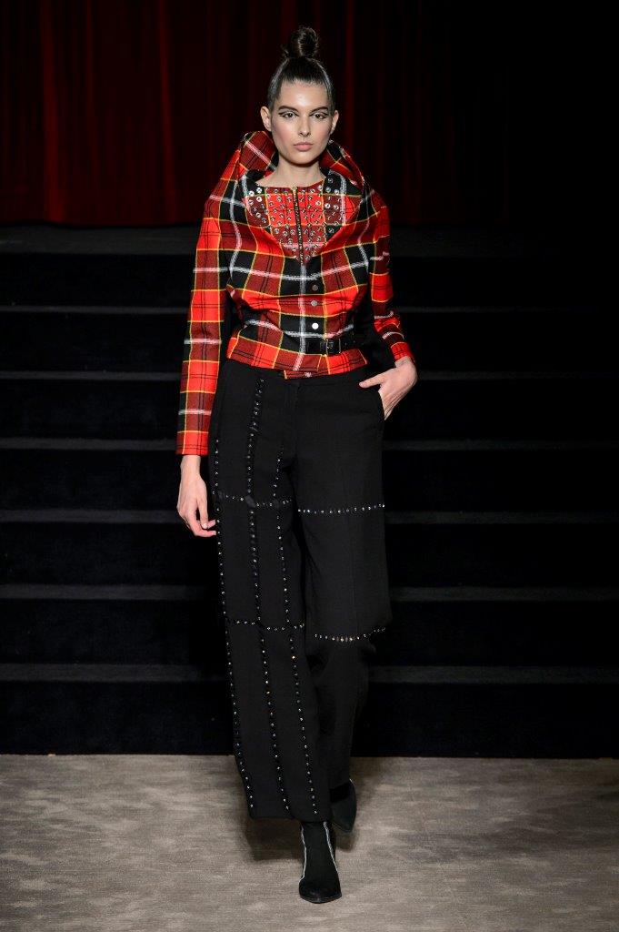 « Sans peur » : la devise d’un clan des Highlands écossais est le leitmotiv de cette collection. Les styles audacieux s’affirment et s’imposent… Et les femmes qui arborent ces symboles, n’ont pas froid aux yeux. Elles avancent. Le tartan aux couleurs vives évoque le cri de guerre primitif des gens du nord. Des peuples autochtones qui brandissent leur identité, une fierté sans compromis, née d’une force intérieure et d’un instinct de survie. Le choc de la mode punk rejette le conventionnel; les spikes en métal qui déchirent les vêtements et dérangent l’ordre établi. La pureté de la ligne droite, la perfection d’un carré. Une géométrie cruelle. Laine, cuir, métal et soie, des matières nobles qui caractérisent la marque Ortega. Des coupes crues, une diagonale coupante. Une étincelle de cristal. Une explosion de couleurs. Un cocktail d’émotions aux effets enivrants pour la femme affirmée