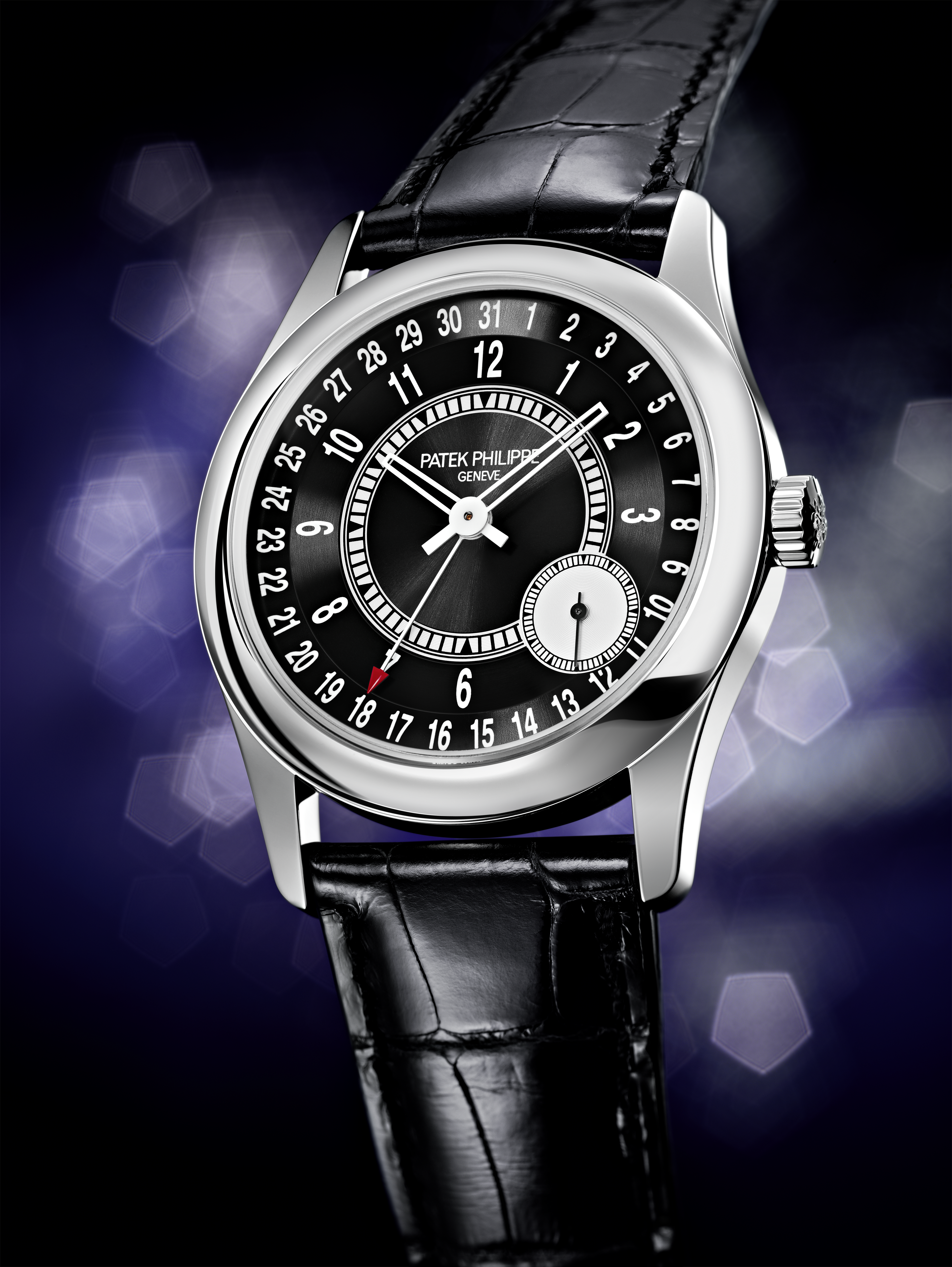 Avec sa petite seconde placée de manière originale entre 4h et 5h, la Calatrava référence 6006G illustre un autre aspect intéressant du calibre 240. Cette montre classique intemporelle en or gris se distingue par le style très graphique de son cadran épuré noir ébène, avec finitions contrastées.