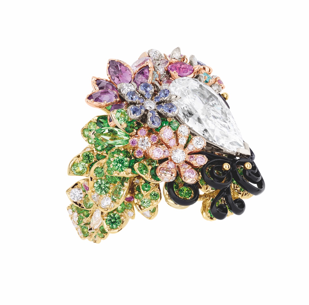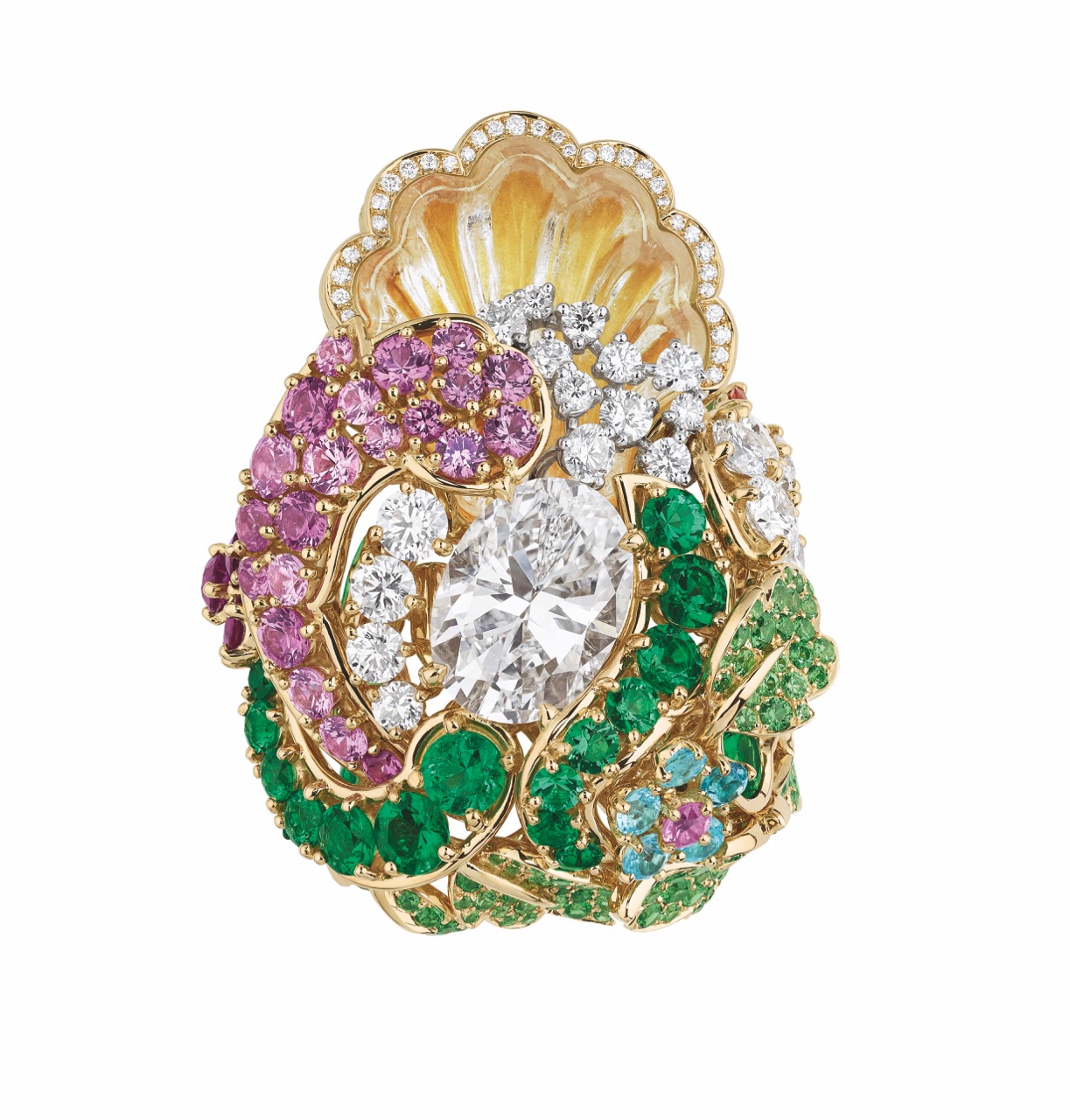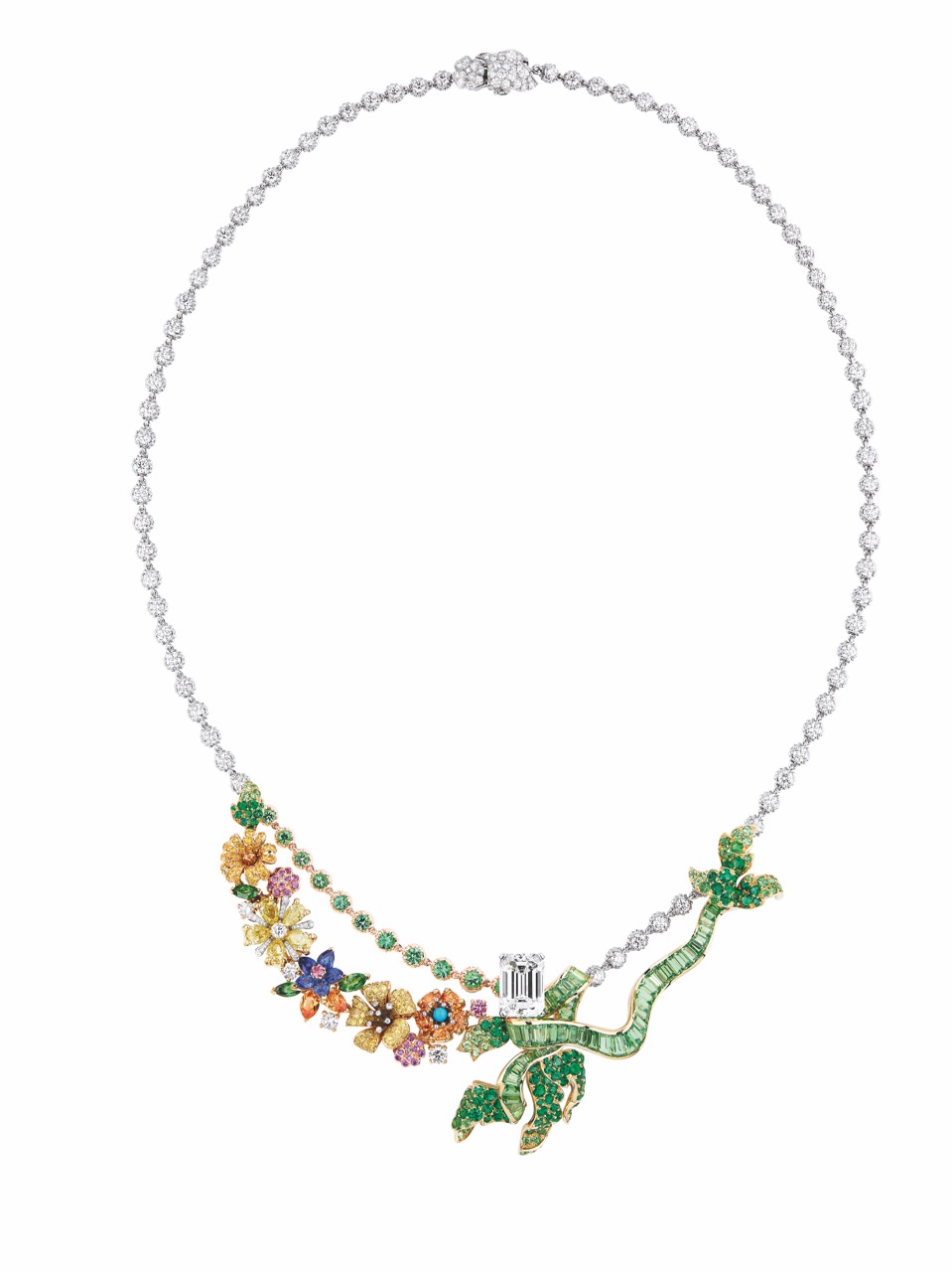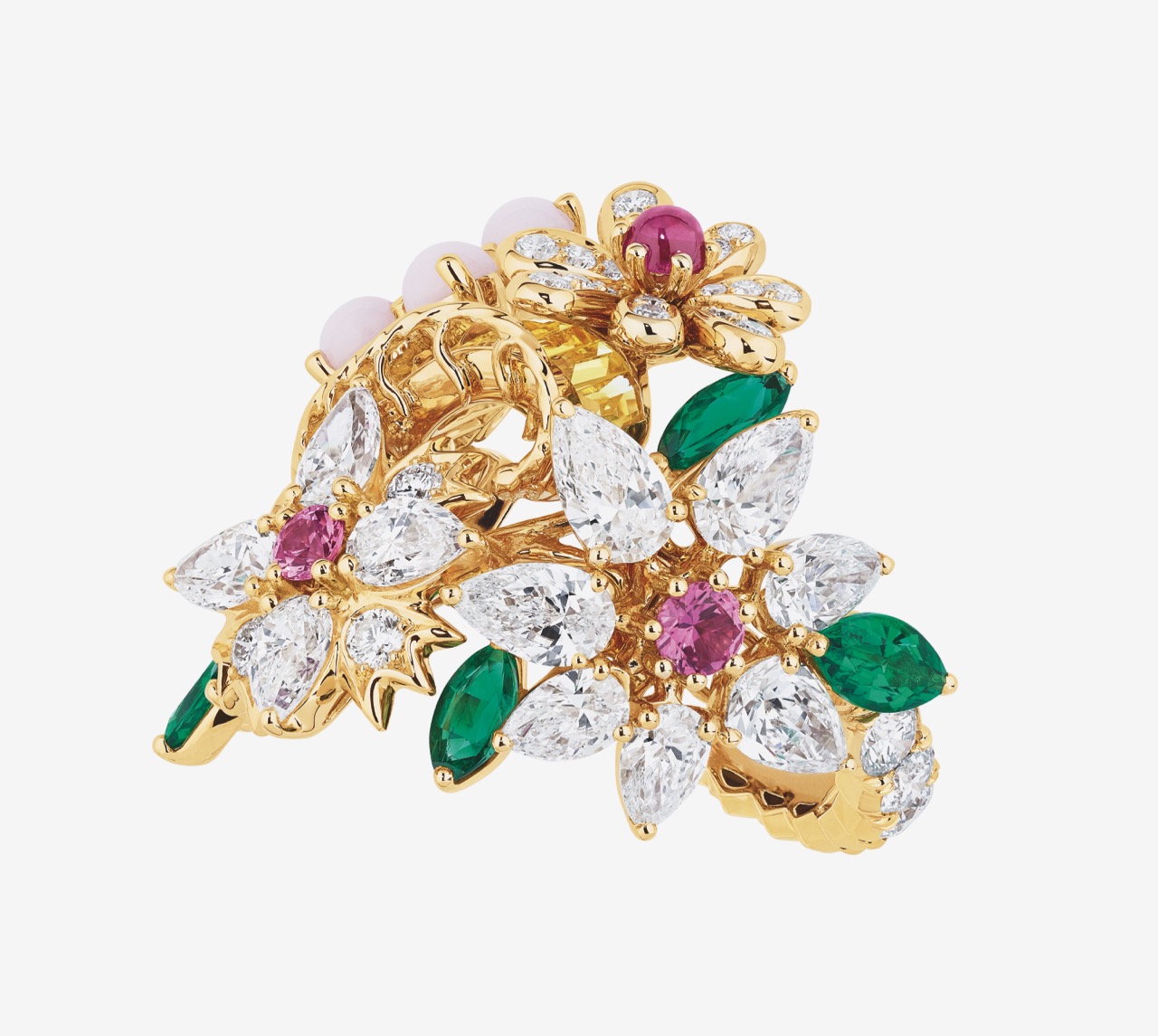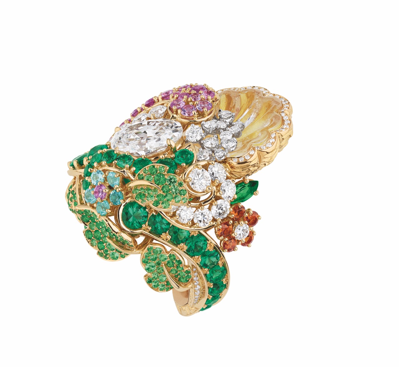 Versailles, acte II. La nouvelle collection de haute joaillerie de Victoire de Castellane pour la maison Dior poursuit son exploration du domaine royal. Au château et ses détails ornementaux – théâtre d’inspiration de la collection précédente – répondent ici les jardins, leur ordonnancement architecturé et leur monde végétalisé. Massifs, bosquets et parterres, mais aussi bassins, statues et allées minérales composent cette promenade narrative au cœur du plus emblématique des jardins français.