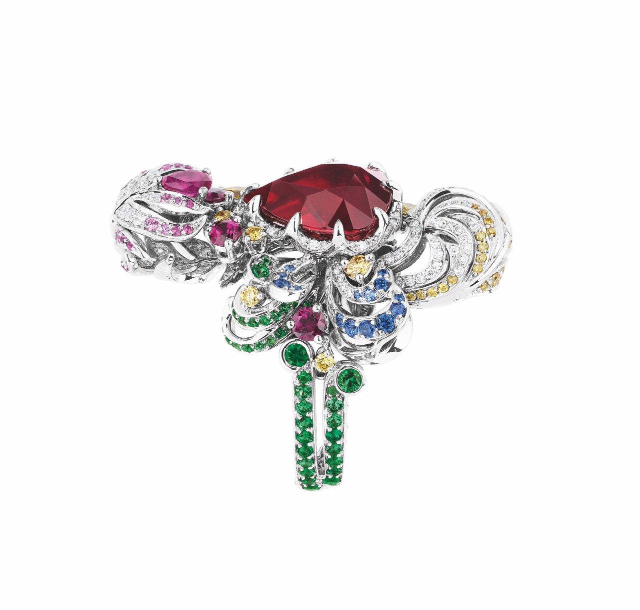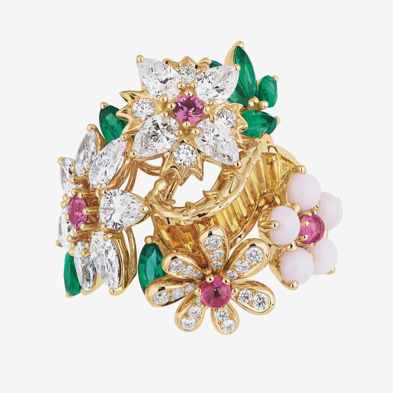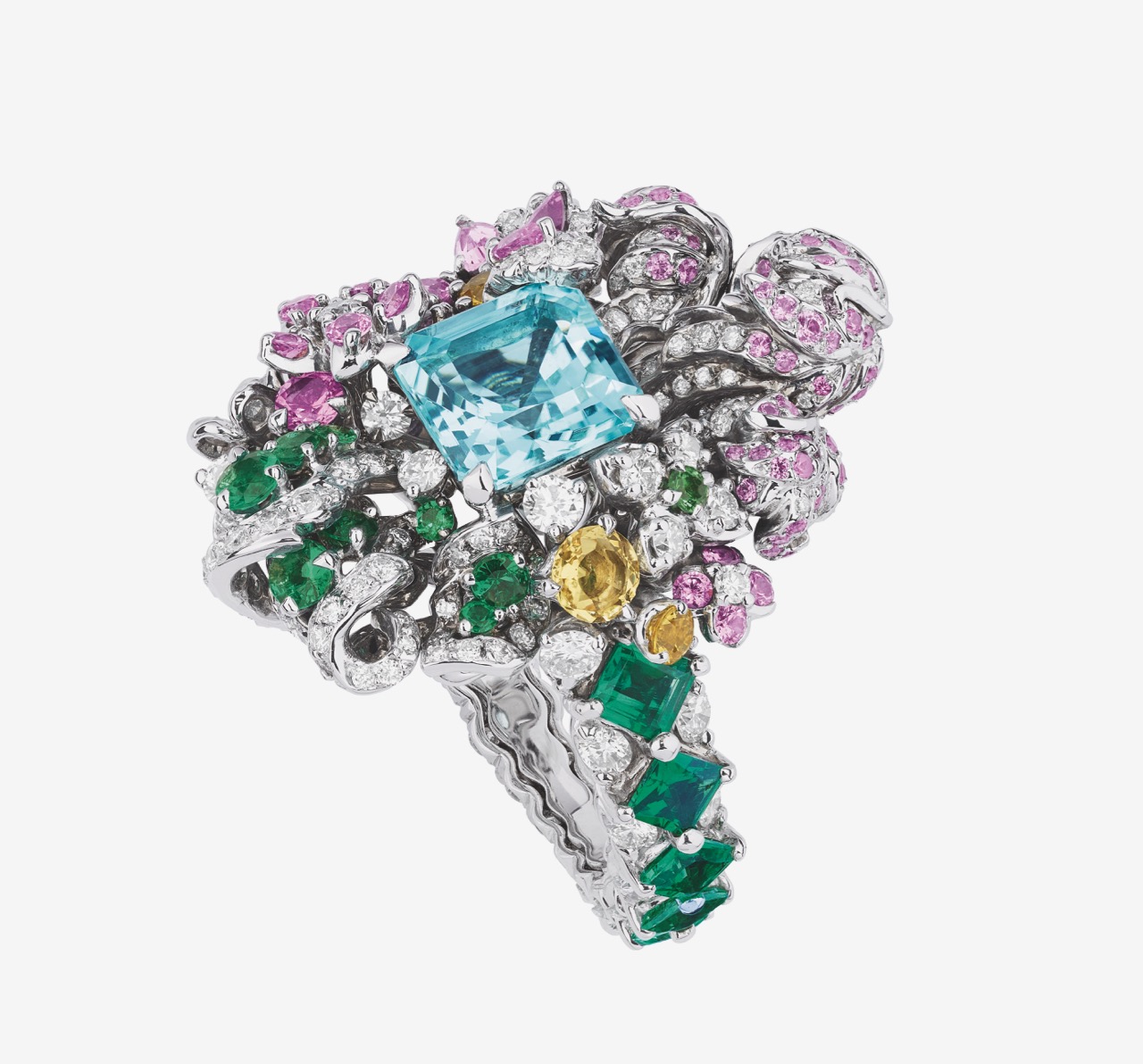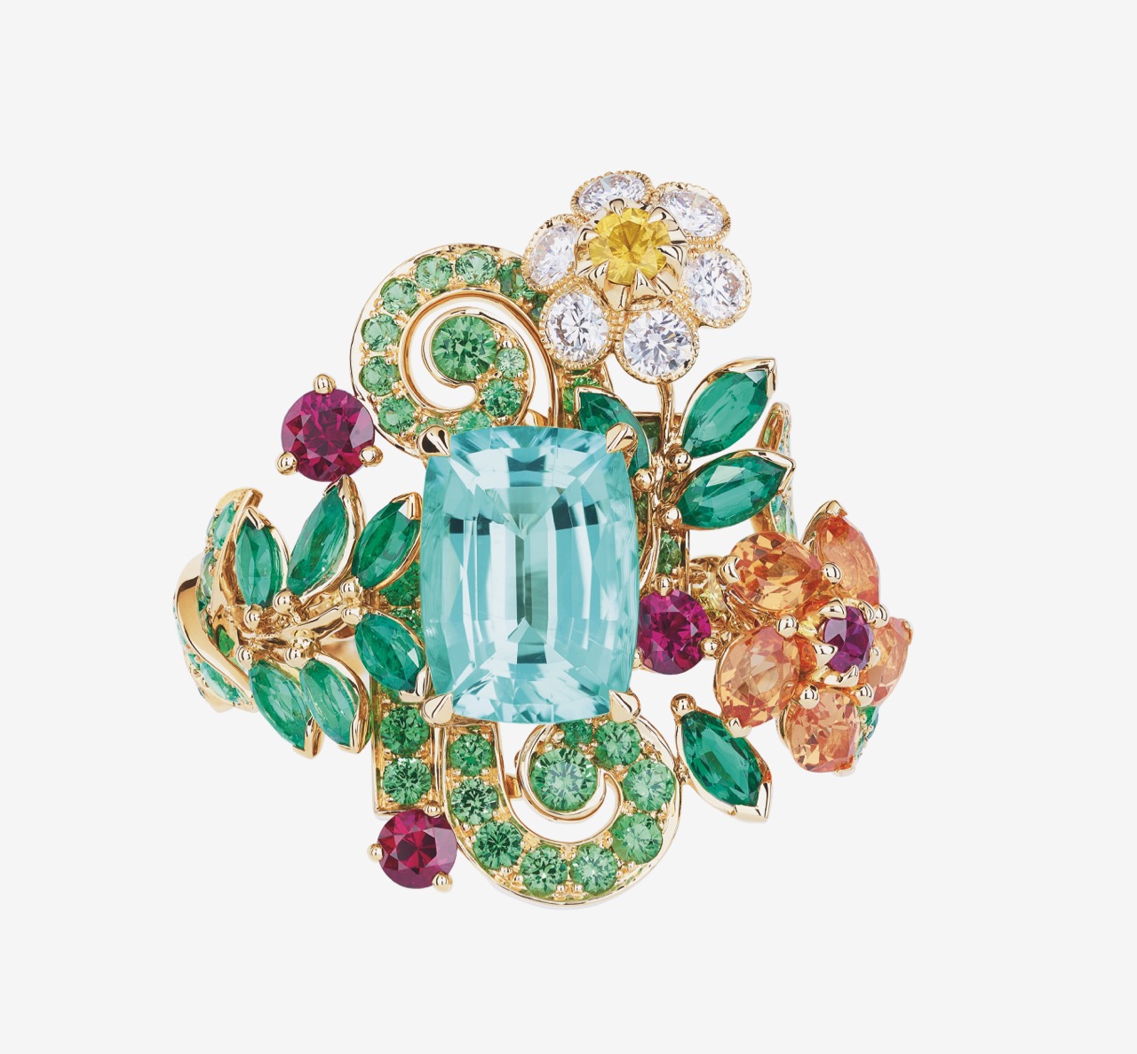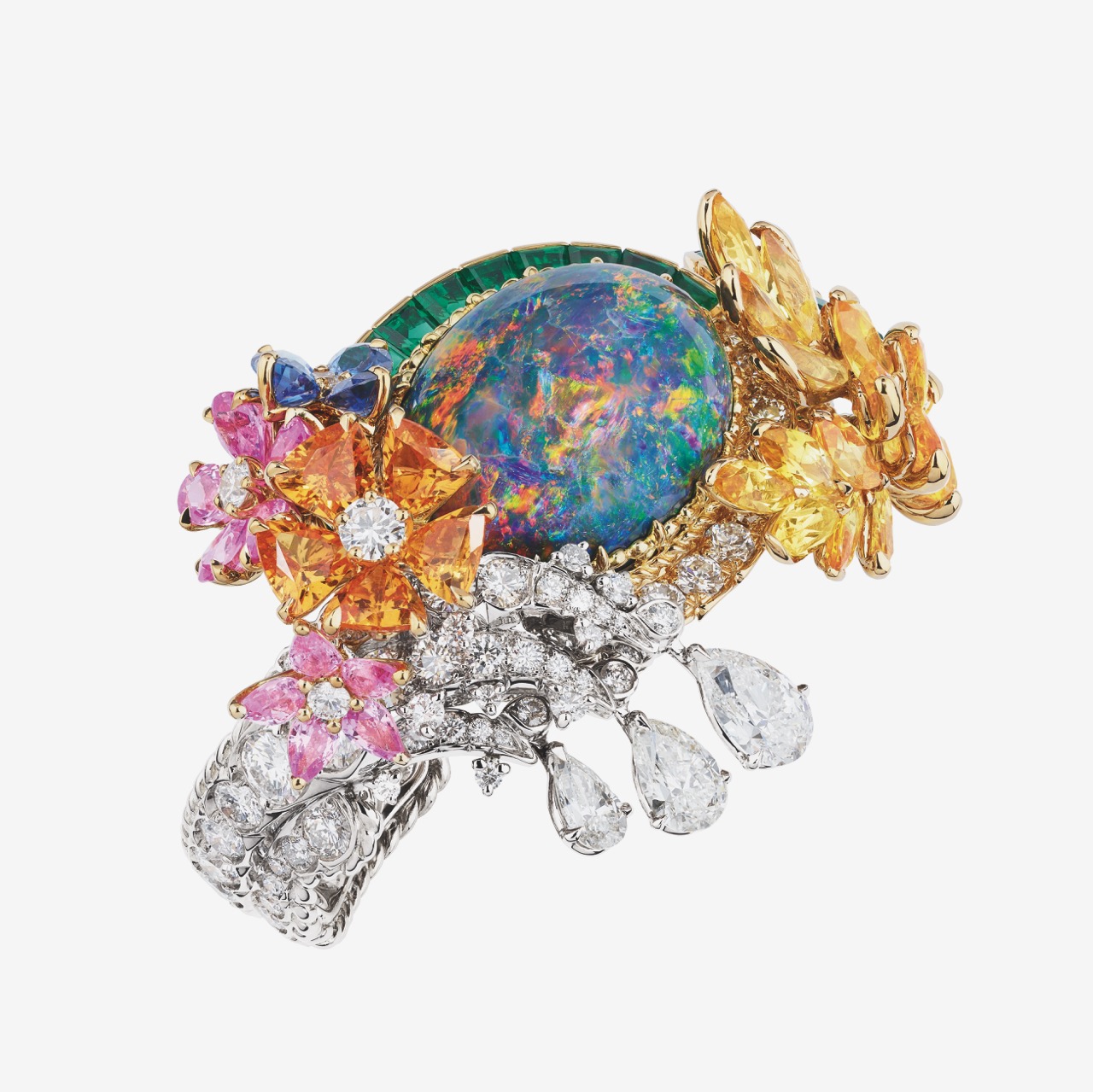 Versailles, acte II. La nouvelle collection de haute joaillerie de Victoire de Castellane pour la maison Dior poursuit son exploration du domaine royal. Au château et ses détails ornementaux – théâtre d’inspiration de la collection précédente – répondent ici les jardins, leur ordonnancement architecturé et leur monde végétalisé. Massifs, bosquets et parterres, mais aussi bassins, statues et allées minérales composent cette promenade narrative au cœur du plus emblématique des jardins français.