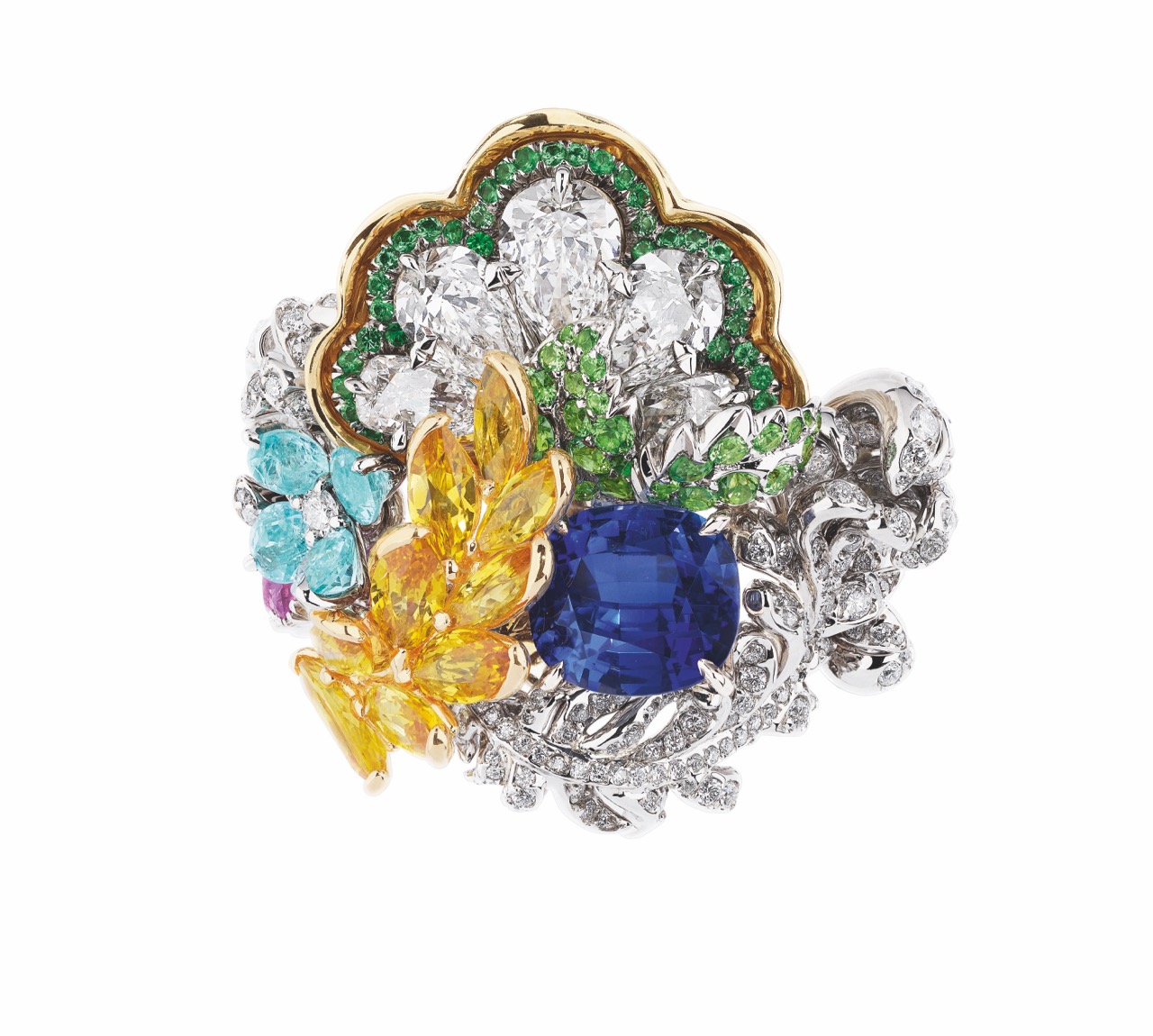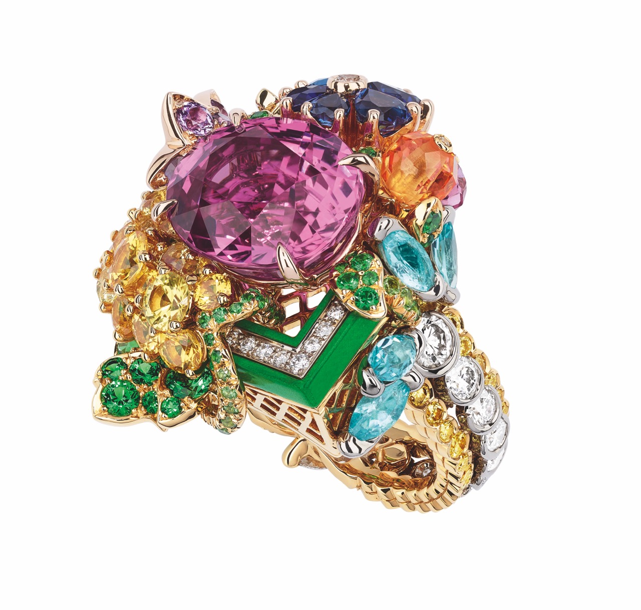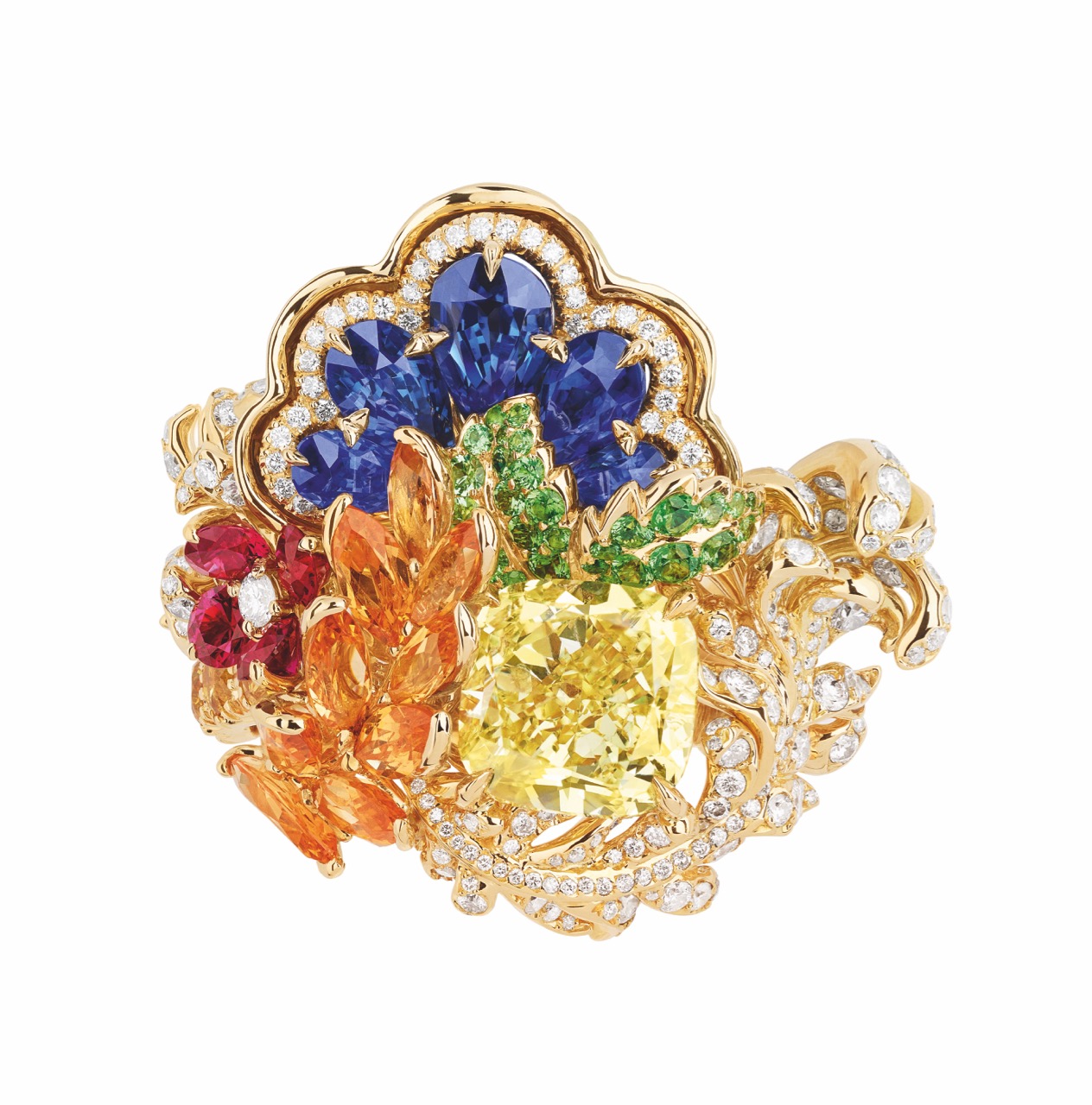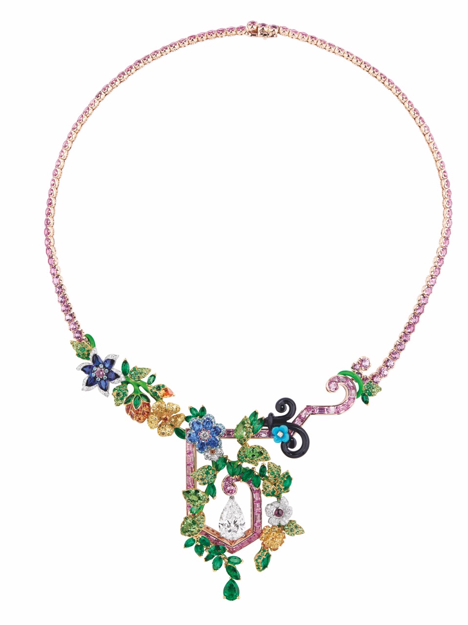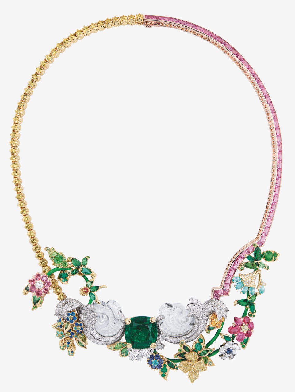 Versailles, acte II. La nouvelle collection de haute joaillerie de Victoire de Castellane pour la maison Dior poursuit son exploration du domaine royal. Au château et ses détails ornementaux – théâtre d’inspiration de la collection précédente – répondent ici les jardins, leur ordonnancement architecturé et leur monde végétalisé. Massifs, bosquets et parterres, mais aussi bassins, statues et allées minérales composent cette promenade narrative au cœur du plus emblématique des jardins français.