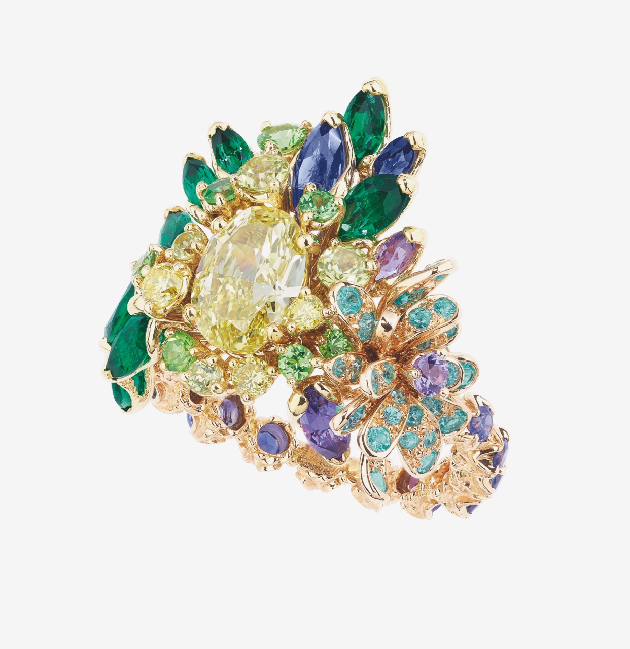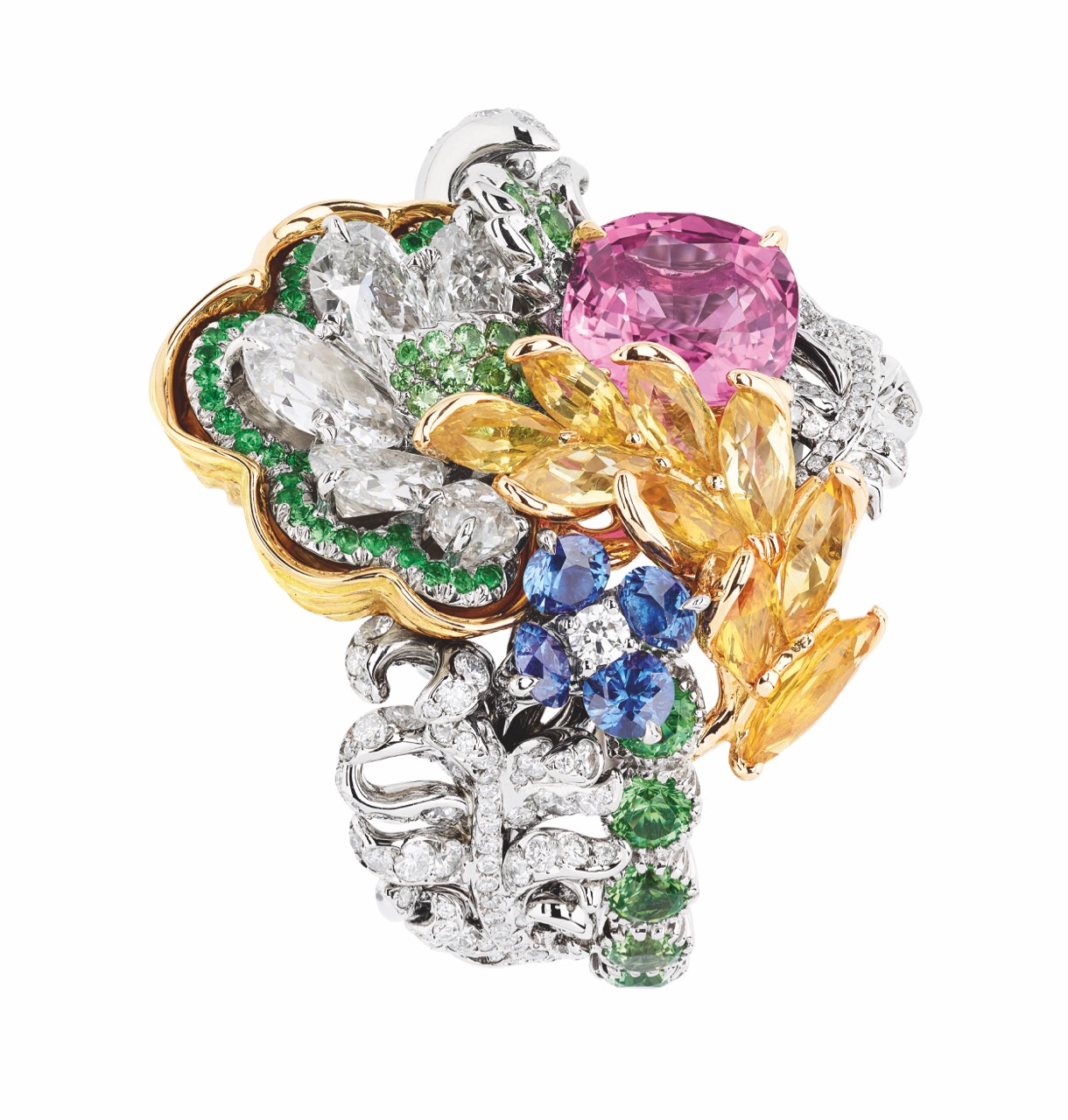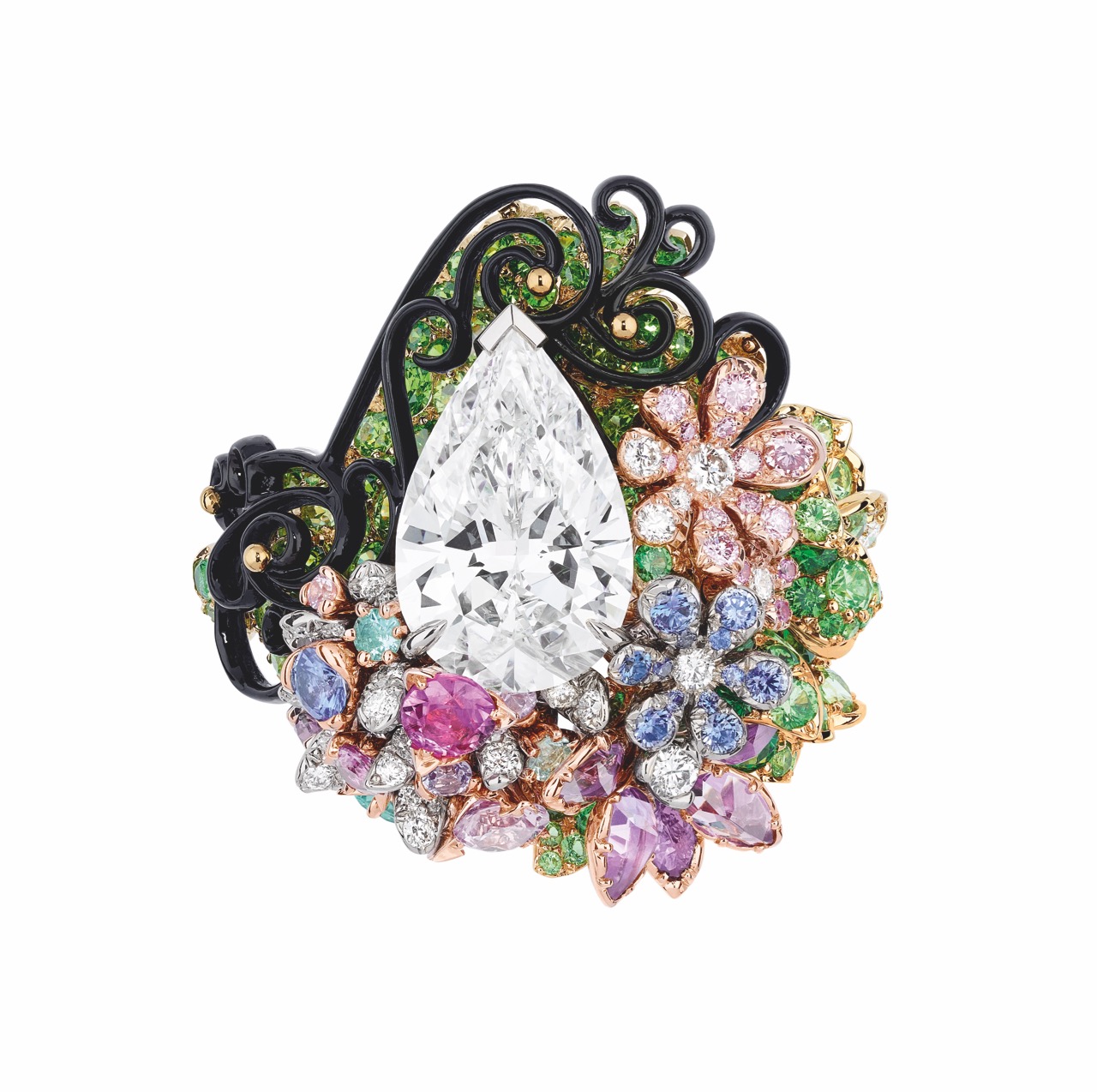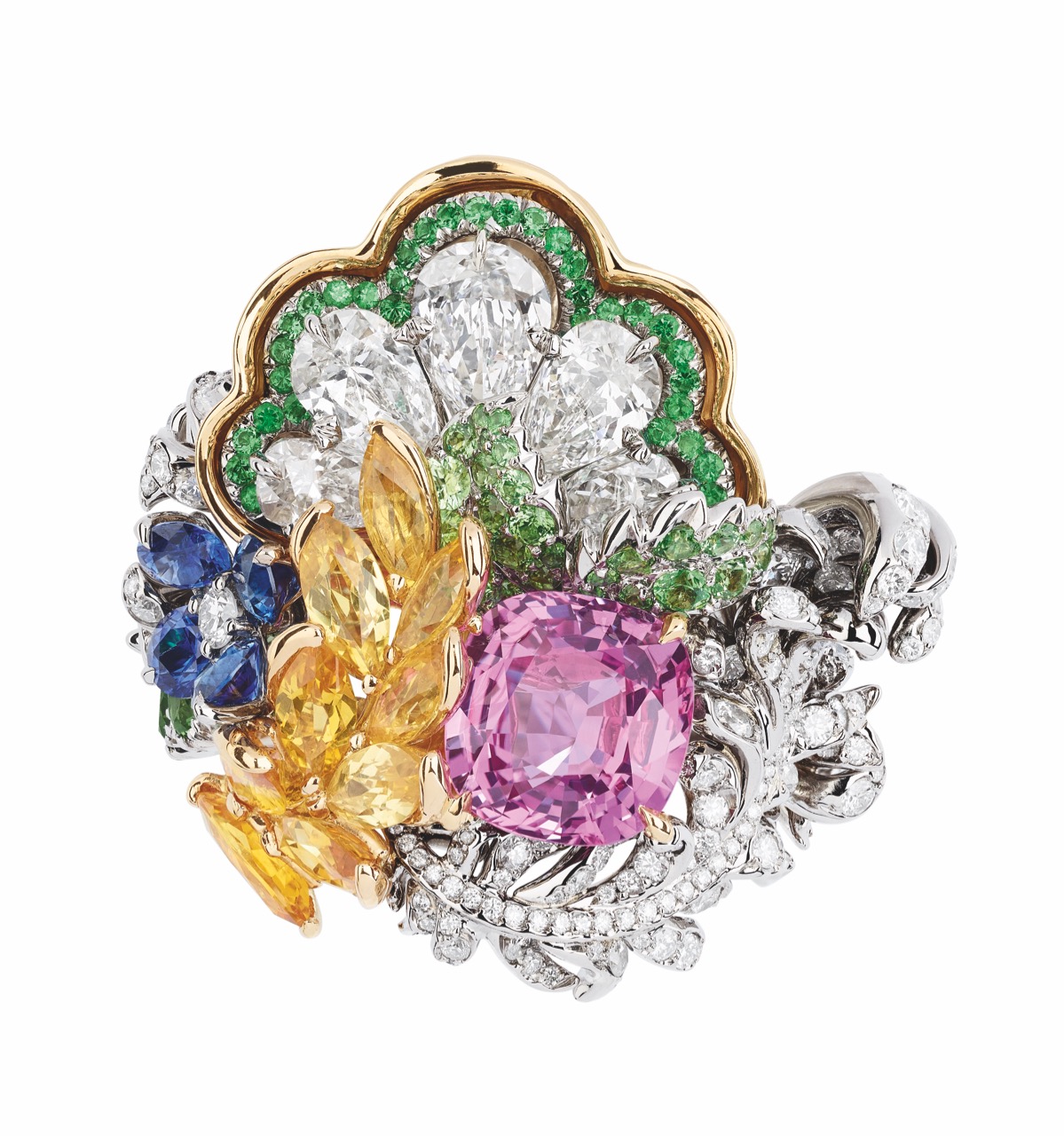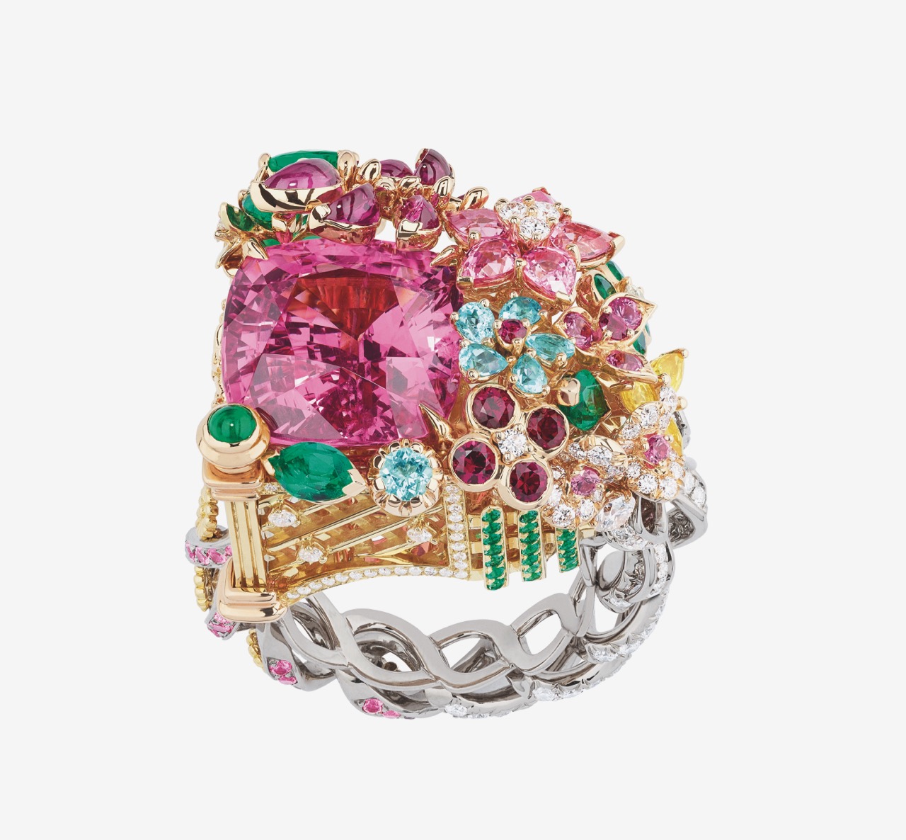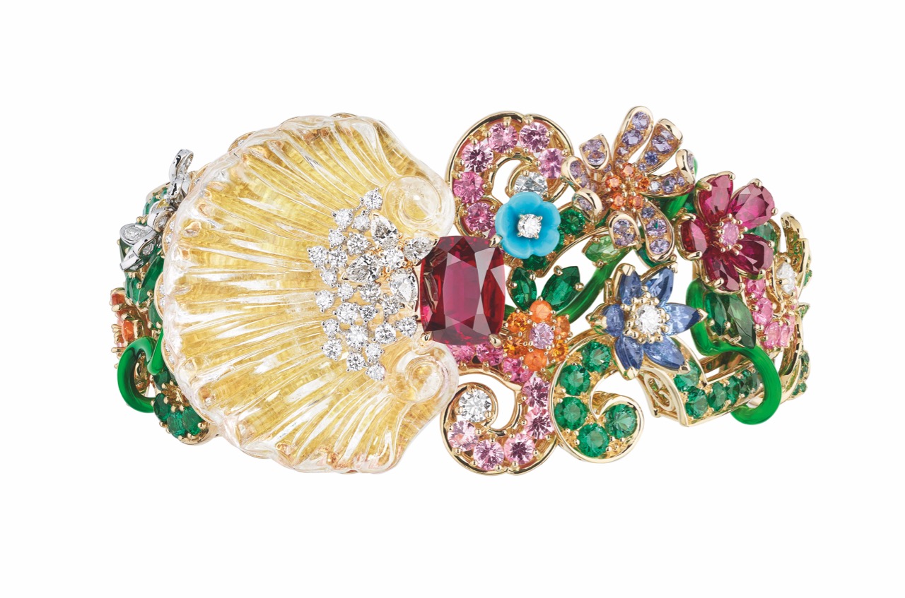 Versailles, acte II. La nouvelle collection de haute joaillerie de Victoire de Castellane pour la maison Dior poursuit son exploration du domaine royal. Au château et ses détails ornementaux – théâtre d’inspiration de la collection précédente – répondent ici les jardins, leur ordonnancement architecturé et leur monde végétalisé. Massifs, bosquets et parterres, mais aussi bassins, statues et allées minérales composent cette promenade narrative au cœur du plus emblématique des jardins français.