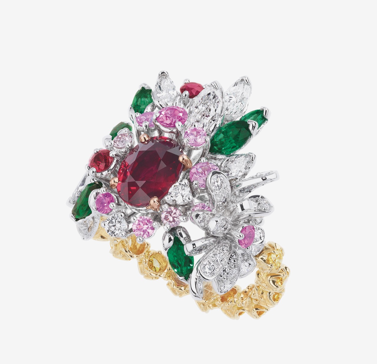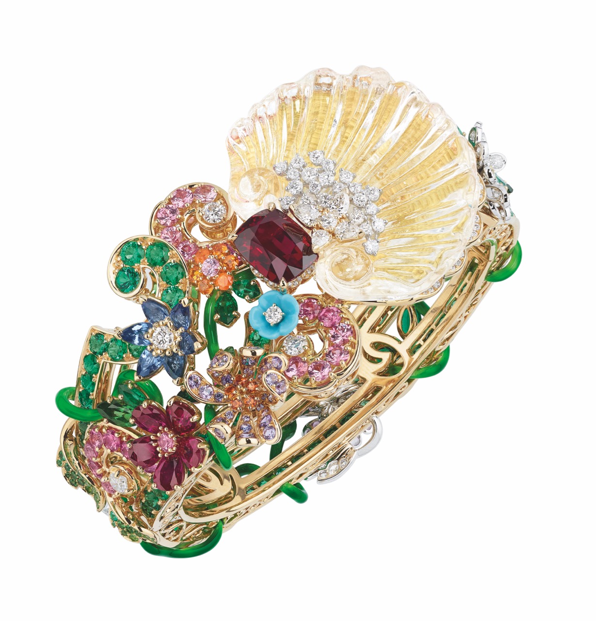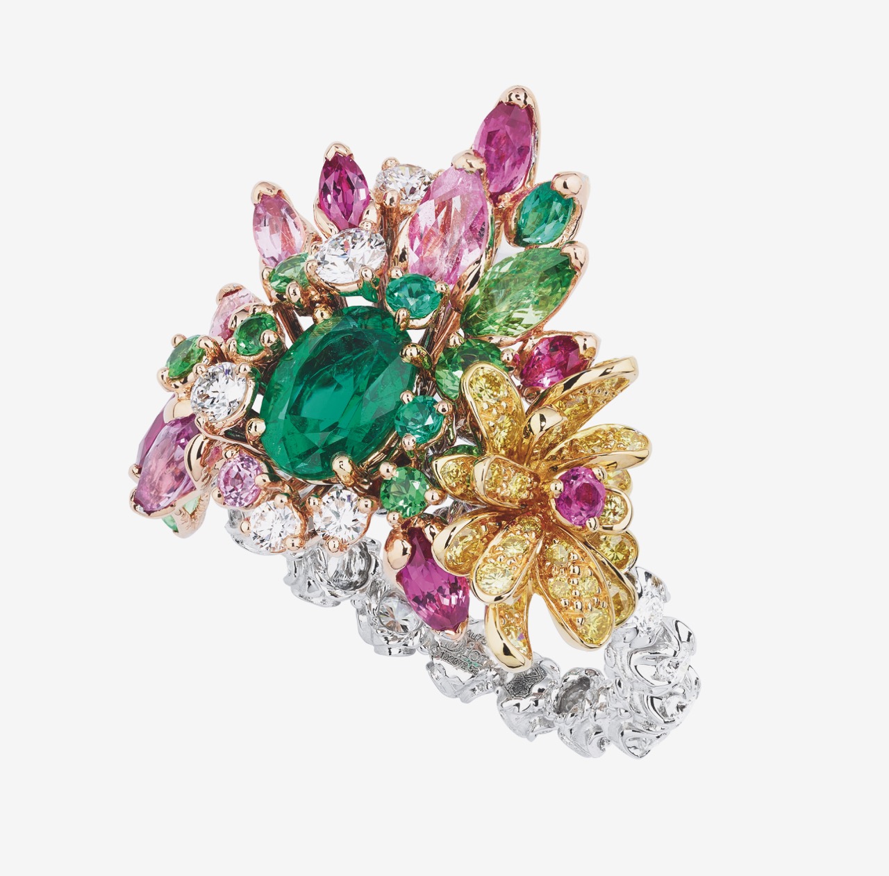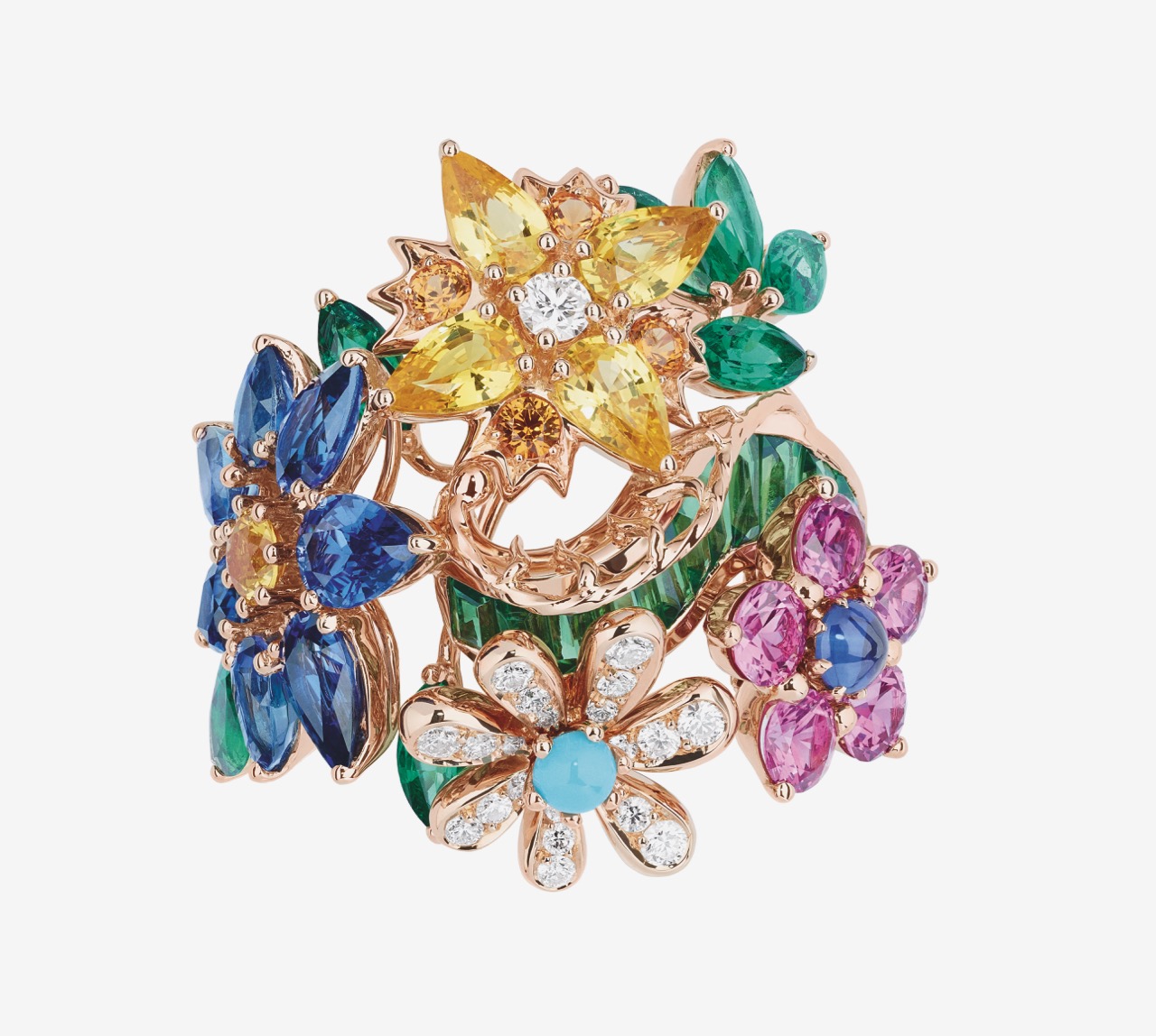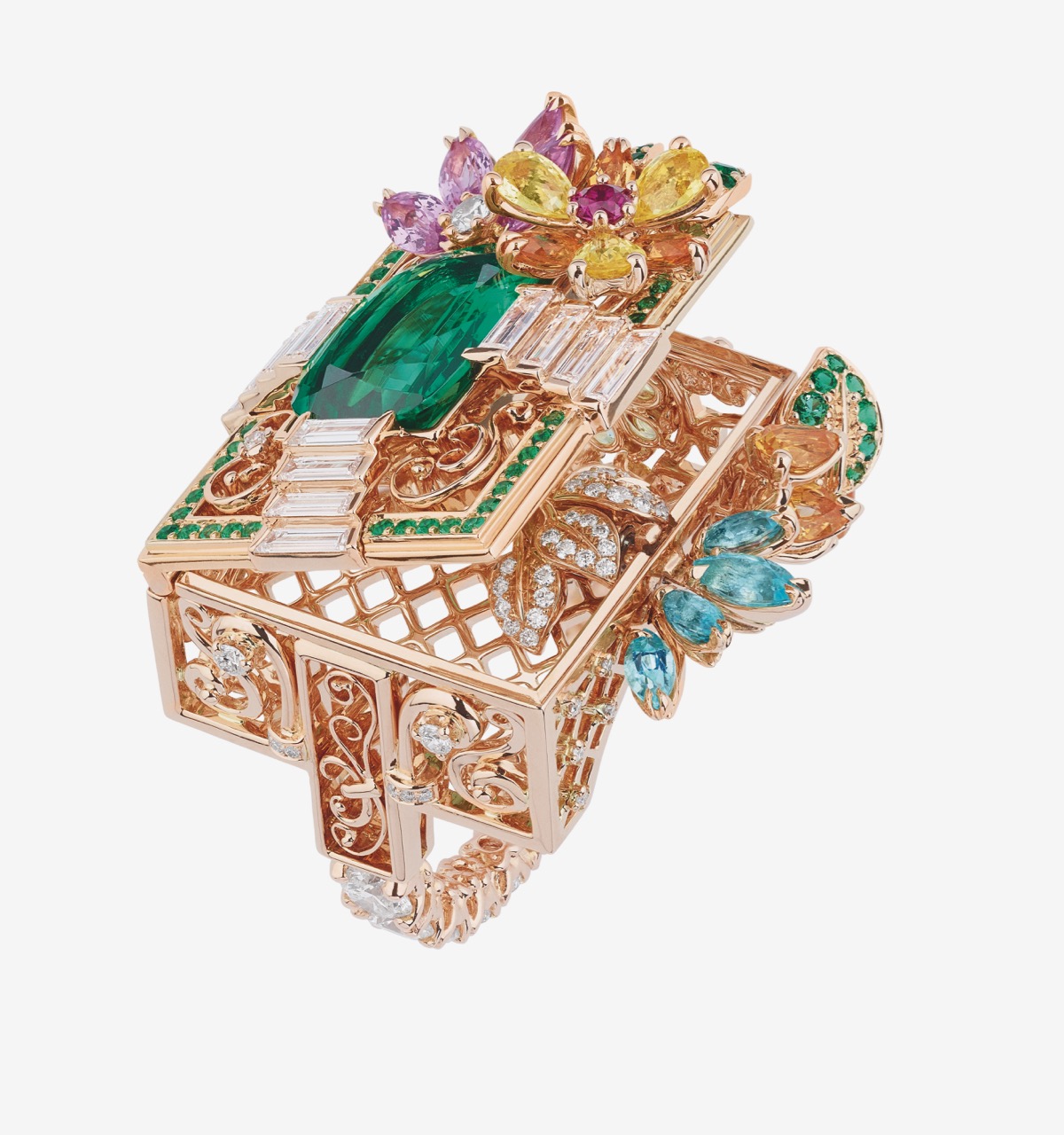 Versailles, acte II. La nouvelle collection de haute joaillerie de Victoire de Castellane pour la maison Dior poursuit son exploration du domaine royal. Au château et ses détails ornementaux – théâtre d’inspiration de la collection précédente – répondent ici les jardins, leur ordonnancement architecturé et leur monde végétalisé. Massifs, bosquets et parterres, mais aussi bassins, statues et allées minérales composent cette promenade narrative au cœur du plus emblématique des jardins français.