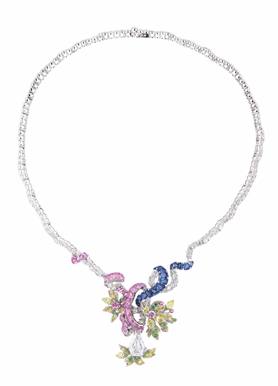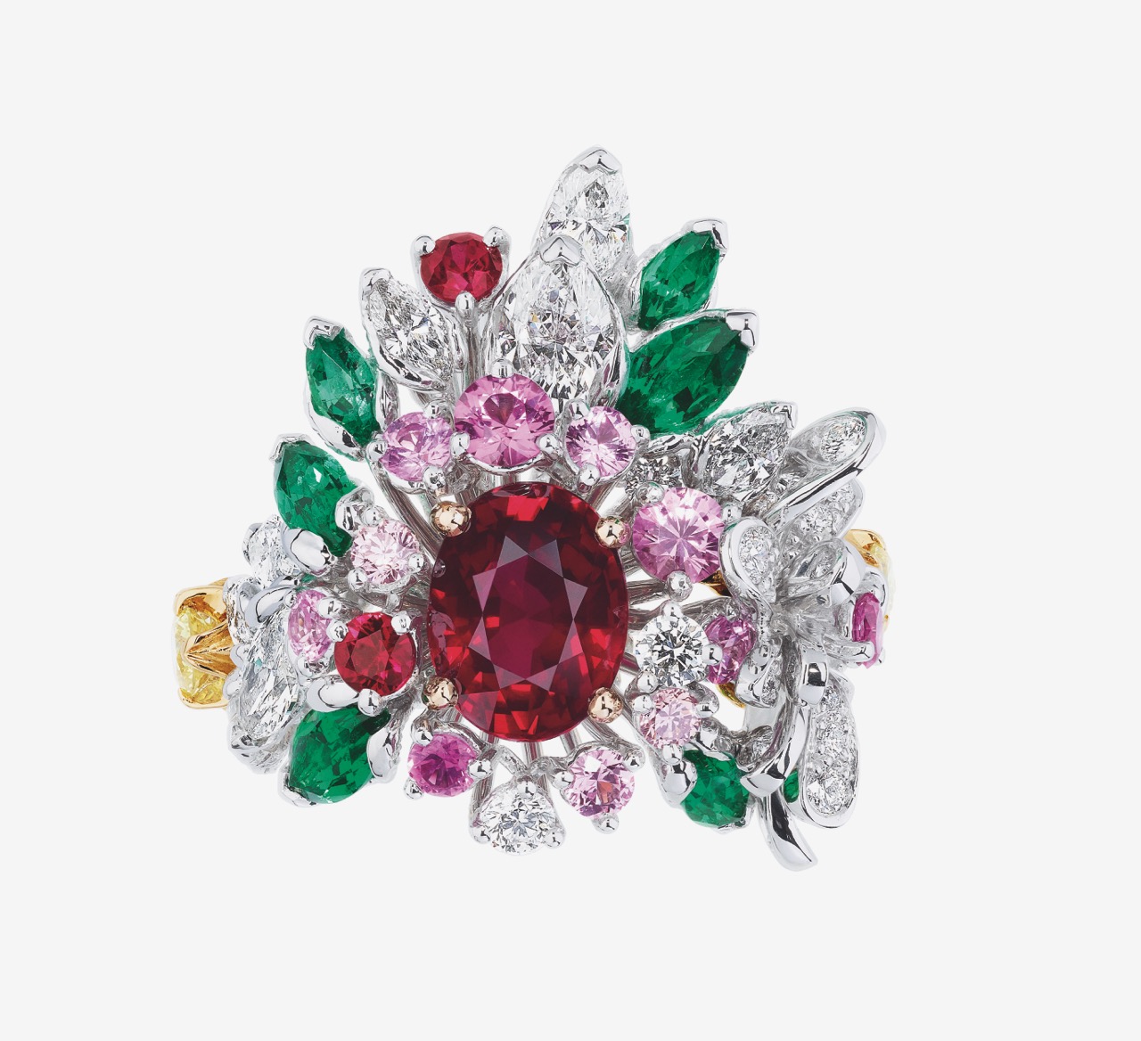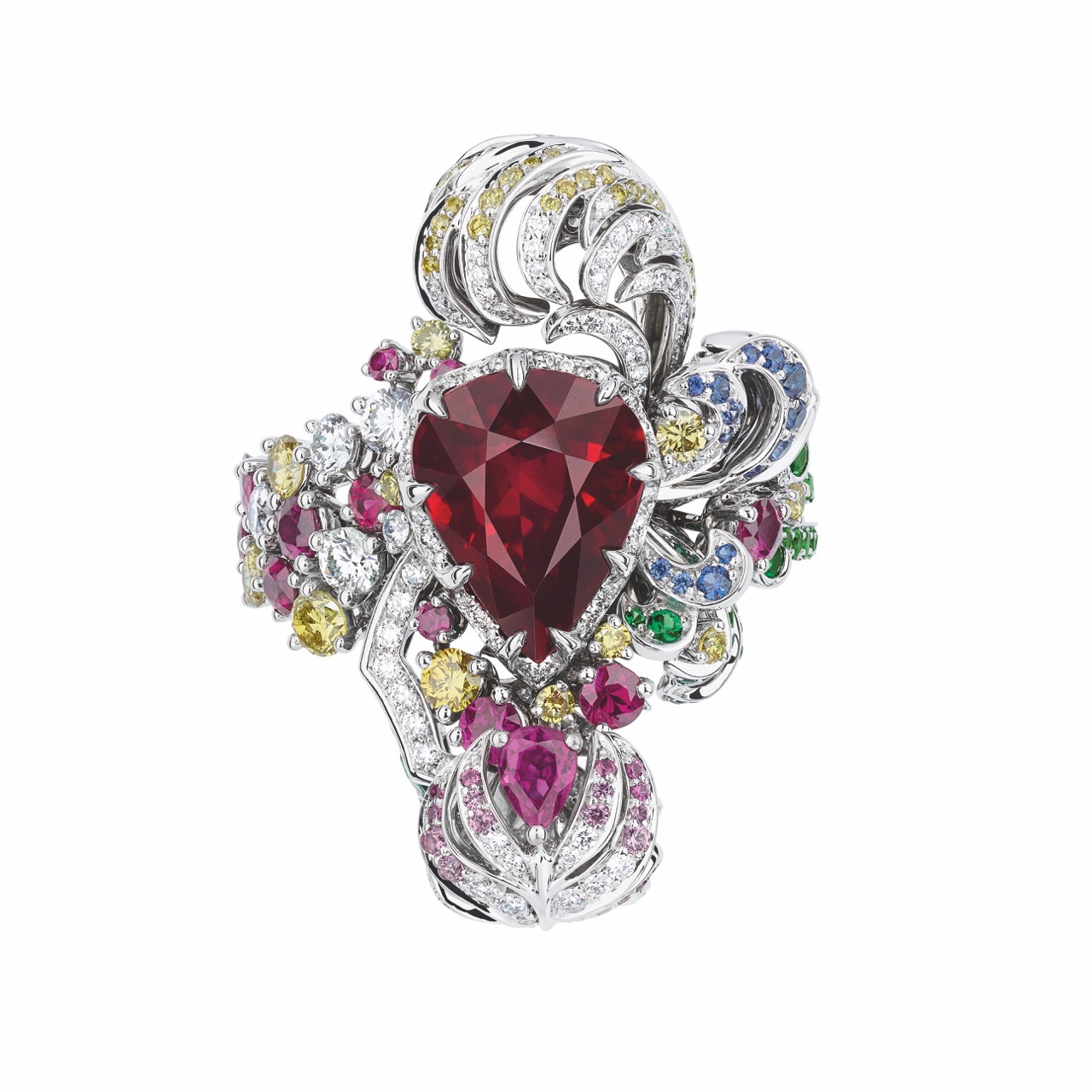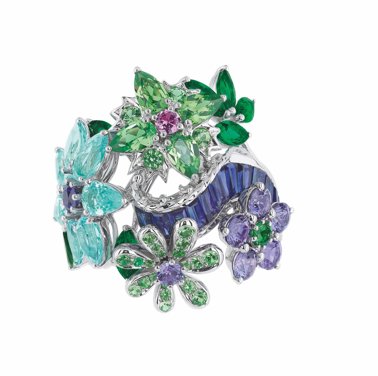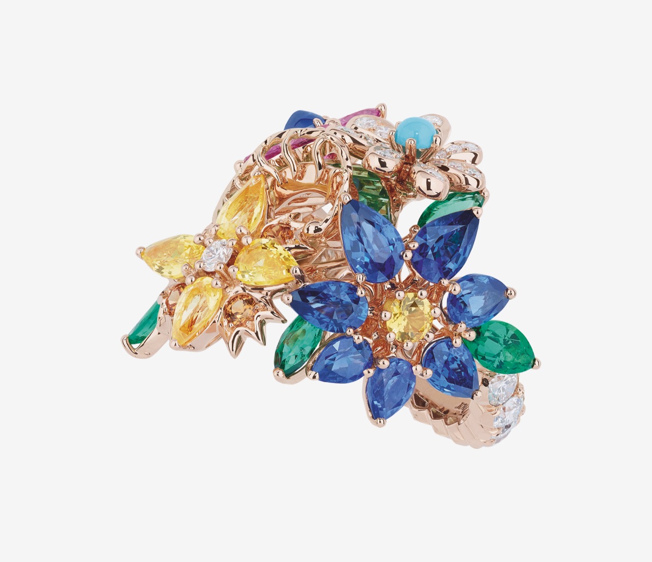 Versailles, acte II. La nouvelle collection de haute joaillerie de Victoire de Castellane pour la maison Dior poursuit son exploration du domaine royal. Au château et ses détails ornementaux – théâtre d’inspiration de la collection précédente – répondent ici les jardins, leur ordonnancement architecturé et leur monde végétalisé. Massifs, bosquets et parterres, mais aussi bassins, statues et allées minérales composent cette promenade narrative au cœur du plus emblématique des jardins français.