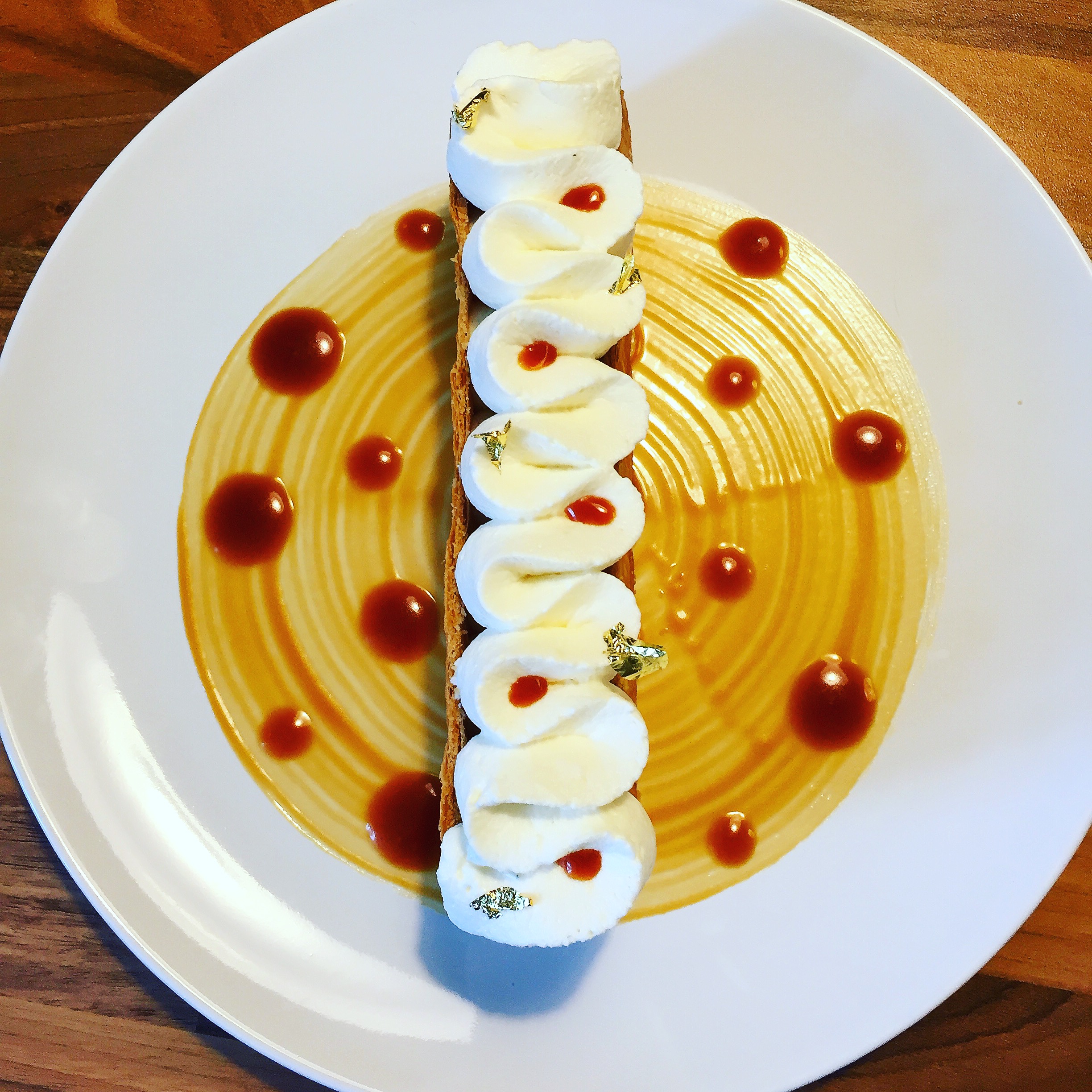 . « Le Millefeuille des Anges », avec une crème diplomate très légère et un étonnant coulis caramel au beurre salé