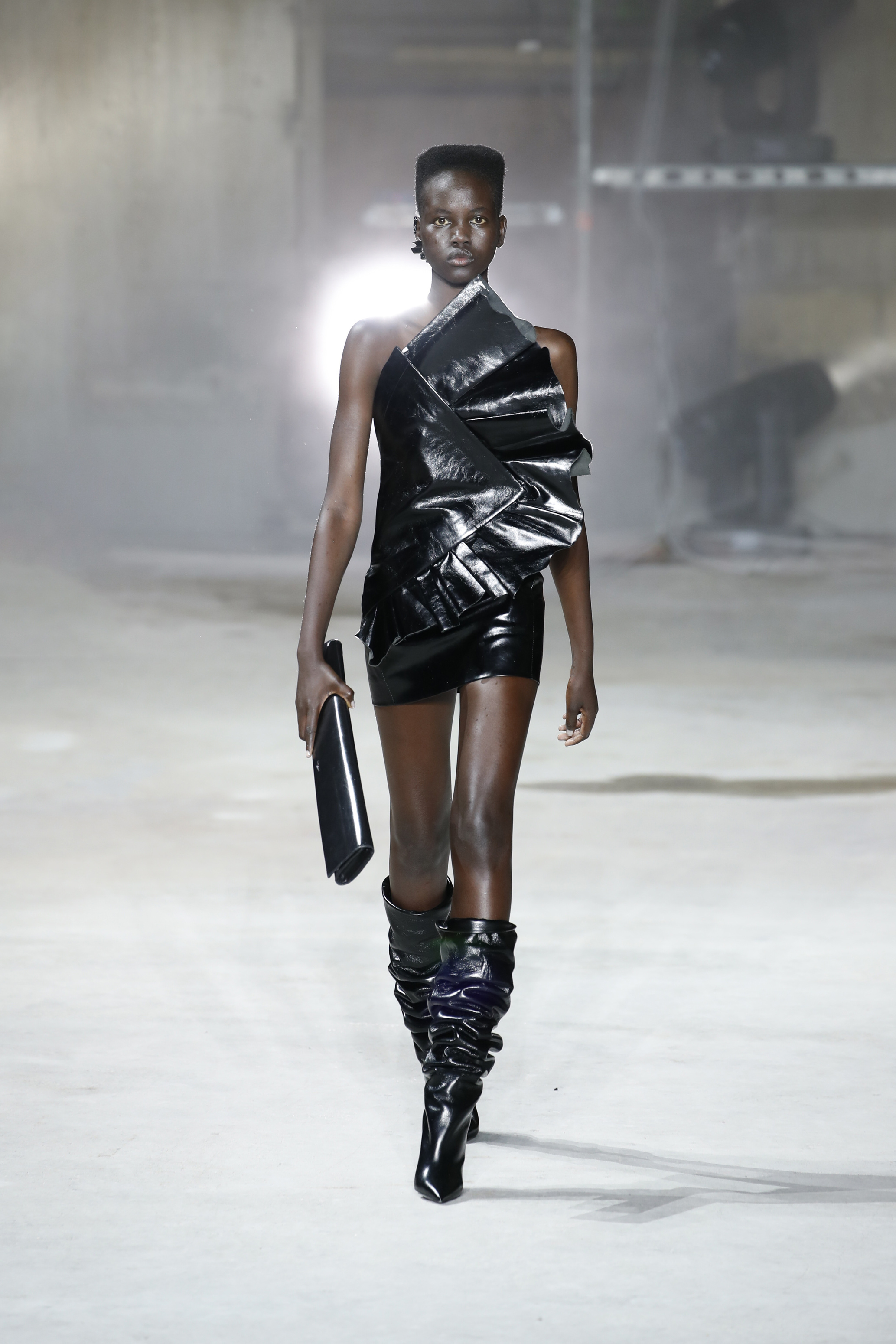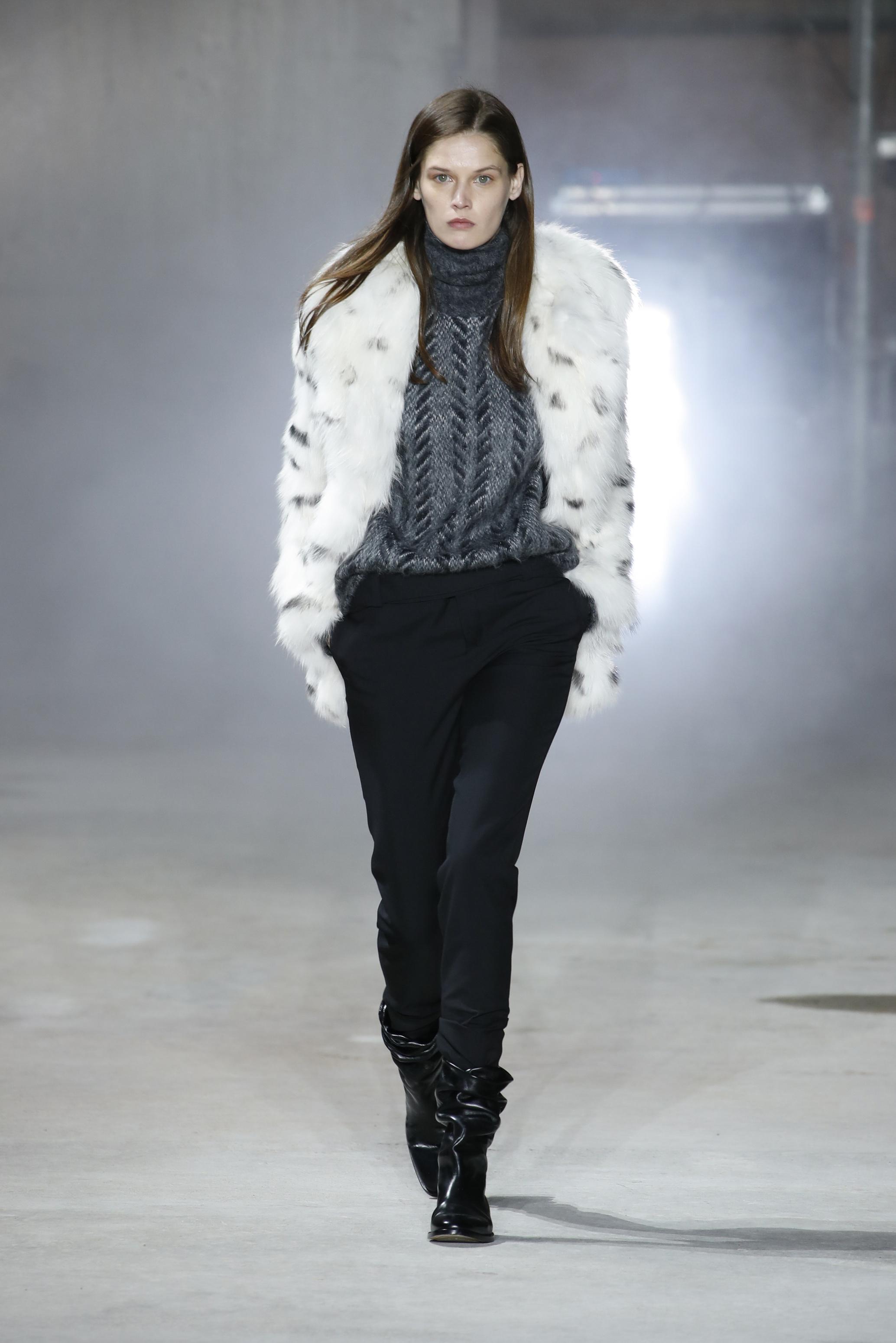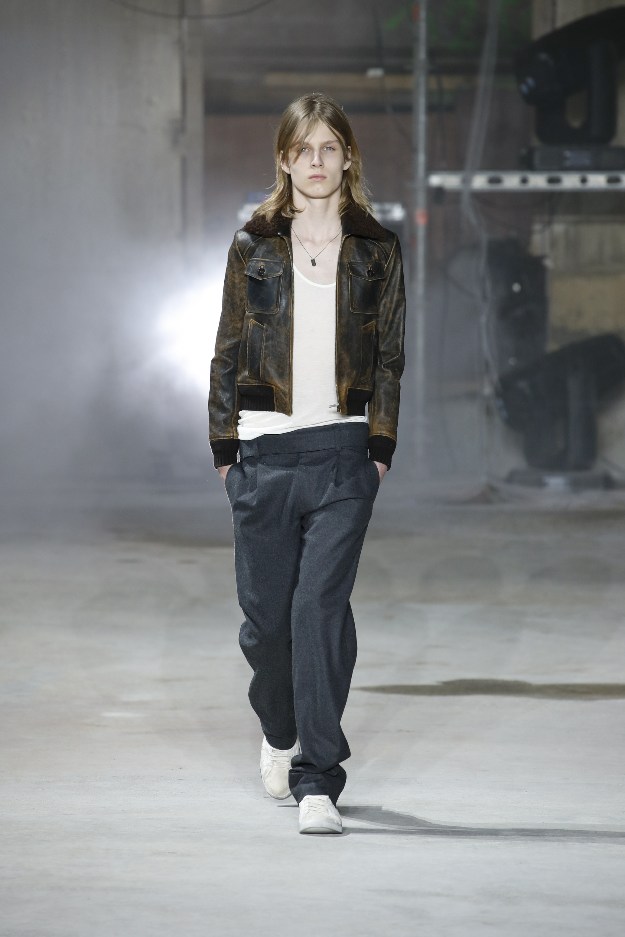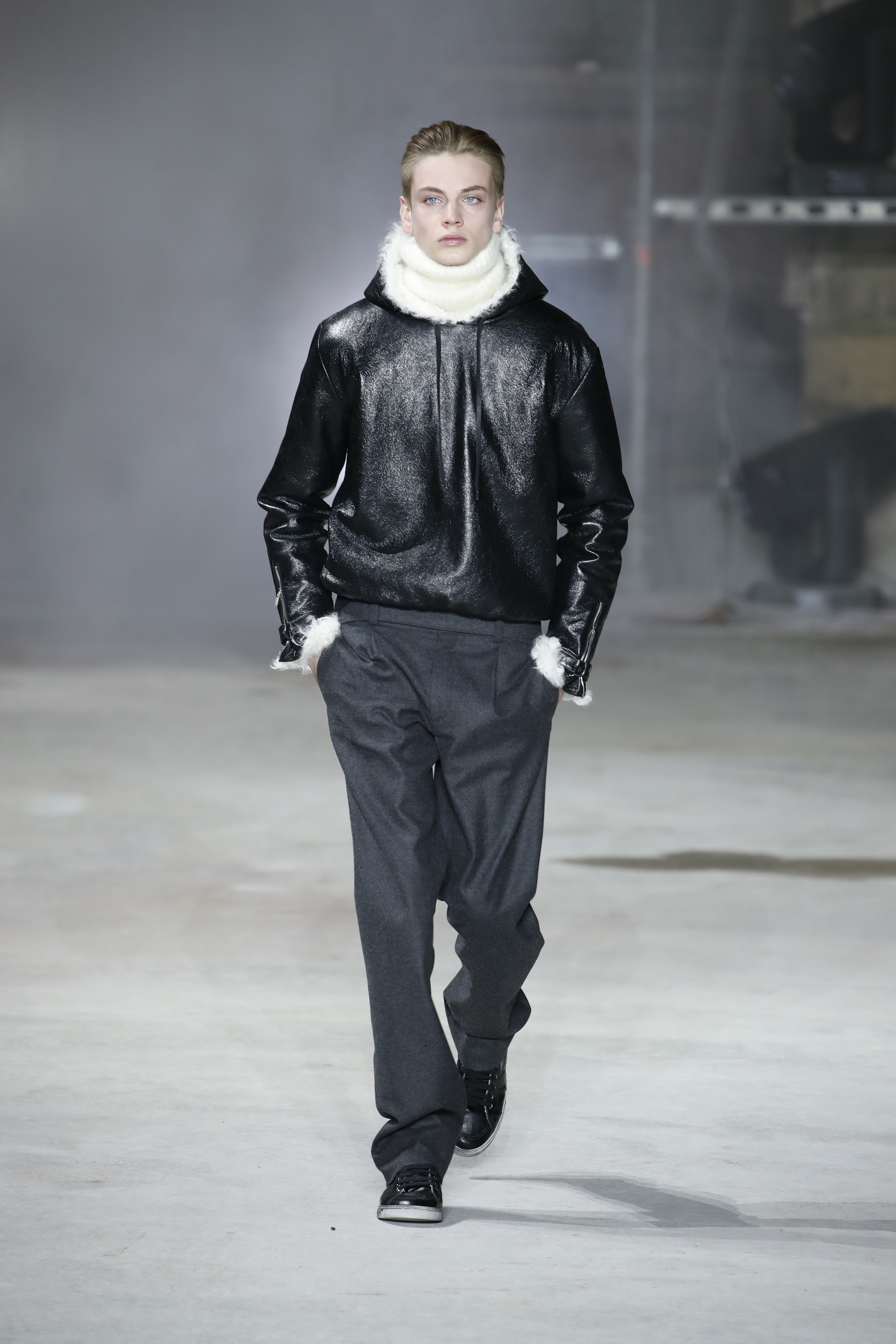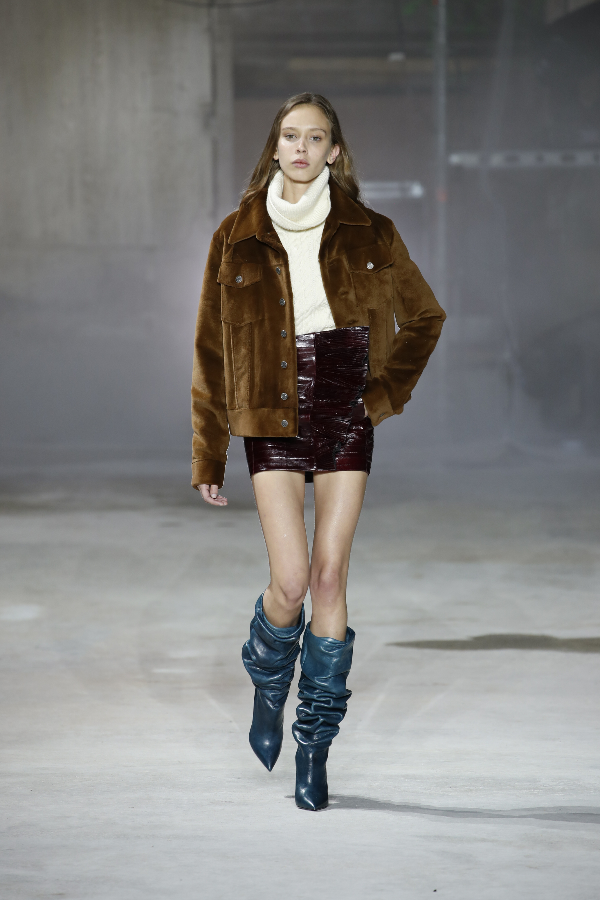 Anthony Vaccarello révèle le couturier à travers cette collection Automne/Hiver dans une atmosphère chic et festive : chemisiers transparents, drapés, tenues de soirée asymétriques, pièces de cuir, bottes froncées… La collection dévoile des silhouettes féminines, masculines et androgynes dans un décor brut.