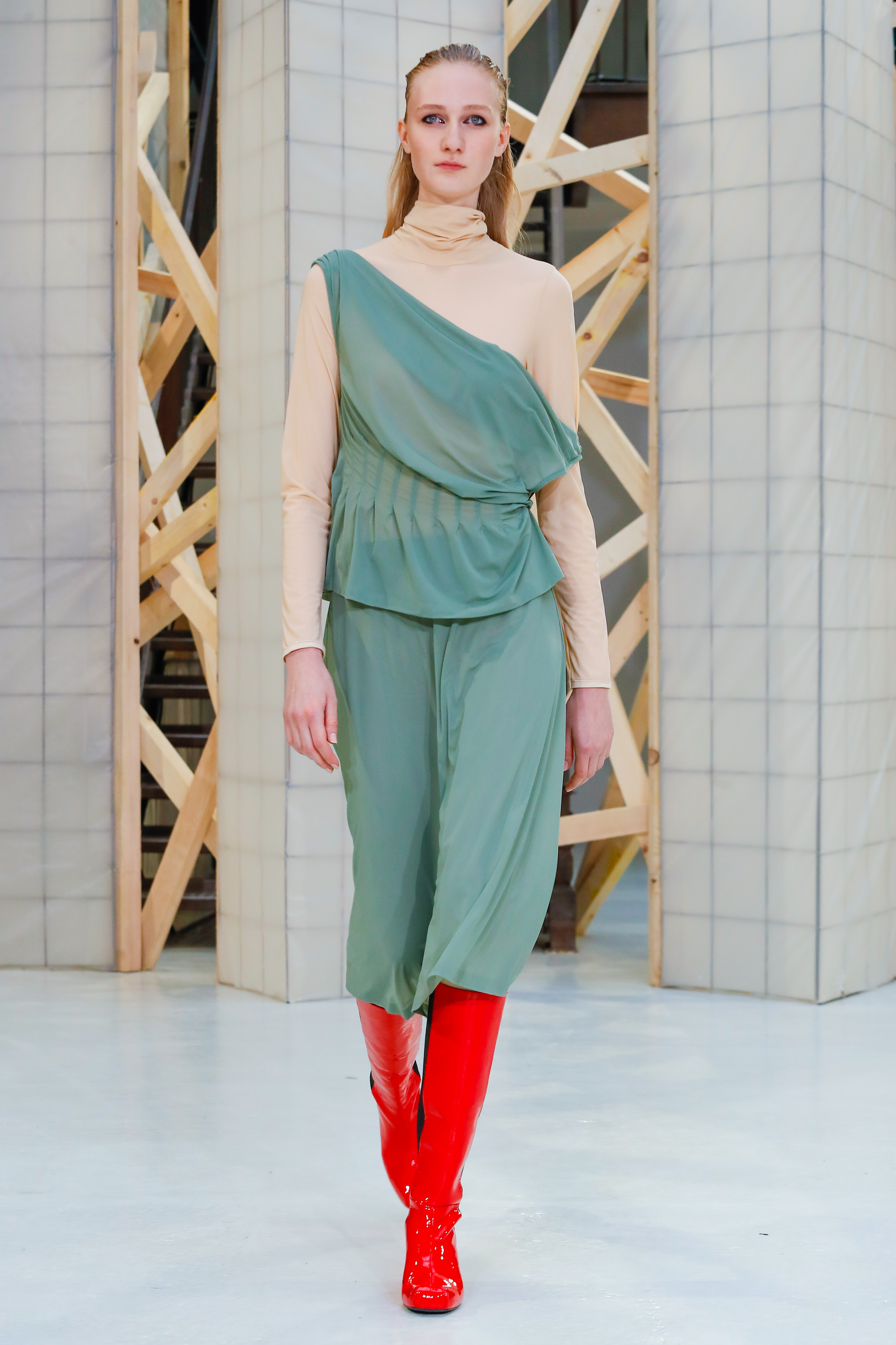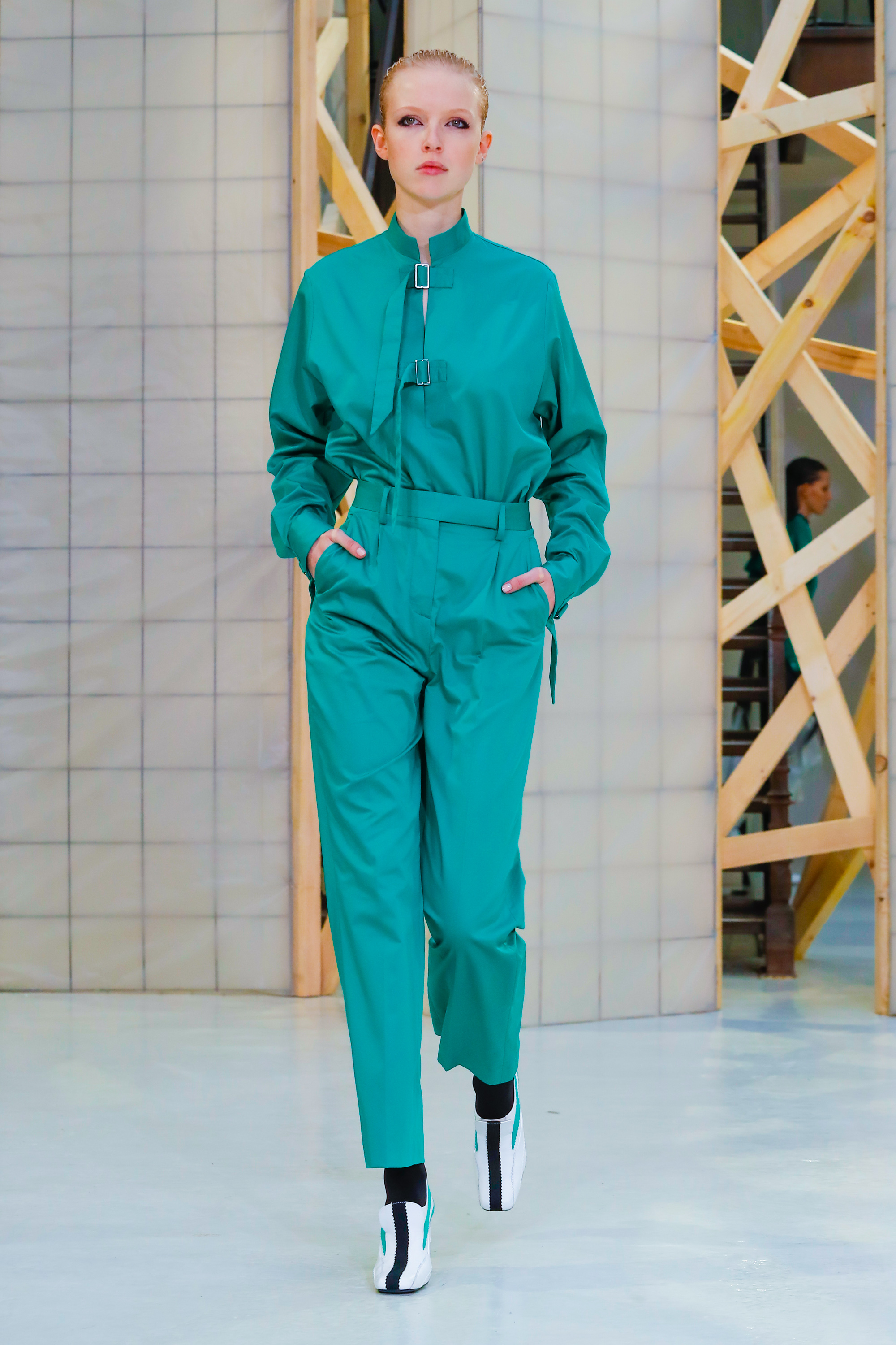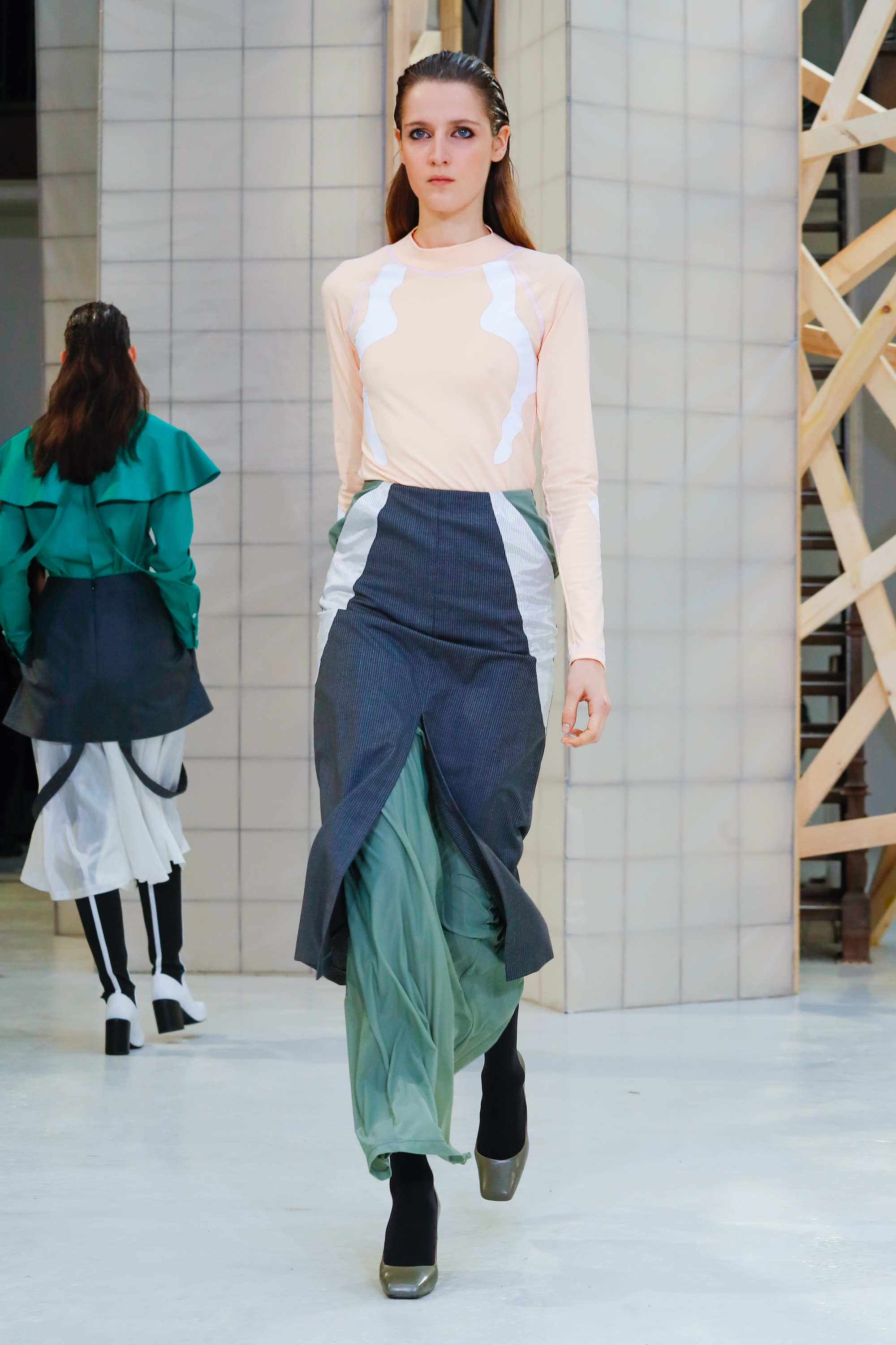 Aalto a présenté à Paris sa 5 ème collection, la marque prône le classicisme, l’équitable, le pragmatisme et l’utilitaire. Elle propose une recherche sur le féminisme, la liberté de pensée et les sociétés ancienne et secrètes. Cette collection fait echo à Blade runner et à Gattaca. L’utilisation de la fourrure est totalement équitable. Les Swarovski sont aussi présents. Côté couleurs, on utilise les tons sombres mais aussi le nude ainsi que le vert émeraude.