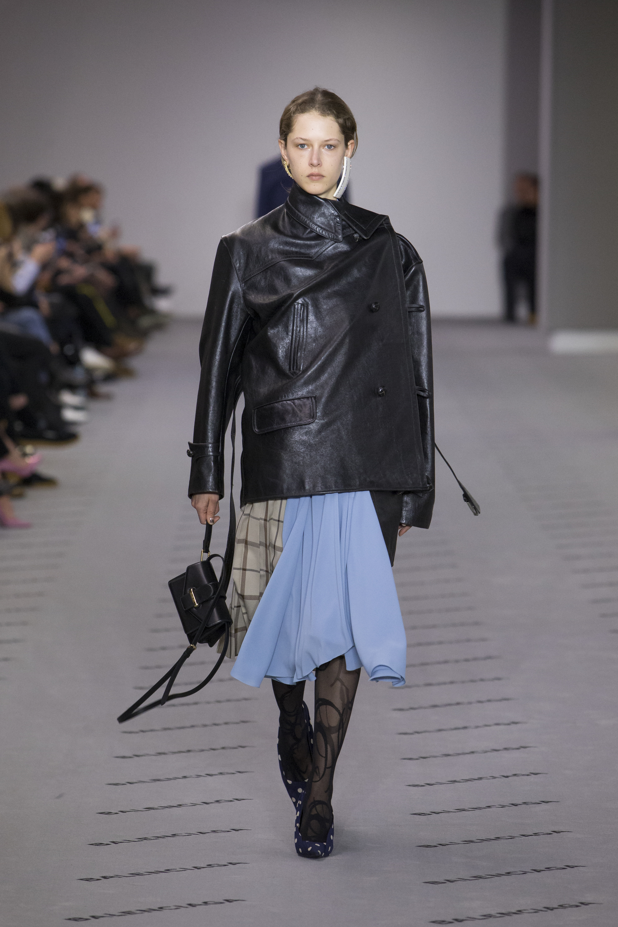 Les manteaux et vestes, en particulier, sont coupés pour suivre le geste d’une femme qui balaie un boulon par dessus son épaule, créant un volume enveloppé qui peut être boutonné et déboutonné à volonté.