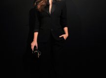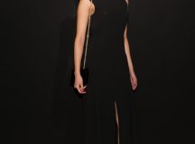 LES SENSATIONS DEVIENNENT SOURCE D’INSPIRATION ET S’ENTOURENT D’UN HALO DE MYSTÈRE. LA SILHOUETTE EST SOULIGNÉE PAR DES VESTES AJUSTÉES ET DÉCOLLETÉES PORTÉES SUR DES PANTALONS MASCULINS, DES JUPES FOURREAU FRONCÉES À LA TAILLE, RÉALISÉES DANS DES TISSUS SPÉCIAUX QUI EN ACCENTUENT LA LÉGÈRETÉ. LES NUANCES DÉGRADÉES SONT UN HYMNE À LA NATURE: GLYCINE, BLEU CIEL, MAGNOLIA, CÉLADON, BLEU FONCÉ. LE NOIR EST LA TOUCHE QUI COMPOSE, EXALTE ET MÉTAMORPHOSE LES TACHES DE COULEUR, QUI SEMBLENT ESQUISSER DES MOTIFS FLORAUX OU UN VOL D’OISEAU. COMME DANS L’INTENTION DE «CHANTER LES FORMES CHANGÉES EN CORPS NOUVEAUX» AVEC UN GOÛT FORTEMENT PICTURAL. LES FAÇONNAGES INHABITUELS – COMME LES RUBANS DE CUIR VERNI NOIR CONSTELLÉS DE CRISTAUX QUI DESSINENT LES CONTOURS FLORAUX – LA MAGIE DES TRANSPARENCES ET DES VOILES ET LES PRÉCIEUSES BRODERIES HAUTE COUTURE ÉVOQUENT L’IMAGE D’UNE FEMME MYSTÉRIEUSE ET SENSUELLE. LA COLLECTION GIORGIO ARMANI PRIVÉ FUT PRÉSENTÉE DANS UNE SALLE SPÉCIALEMENT AMÉNAGÉE RECRÉANT LES DÉCORS DU PALAIS ORSINI A MILAN, LE SIÈGE DES ATELIERS.