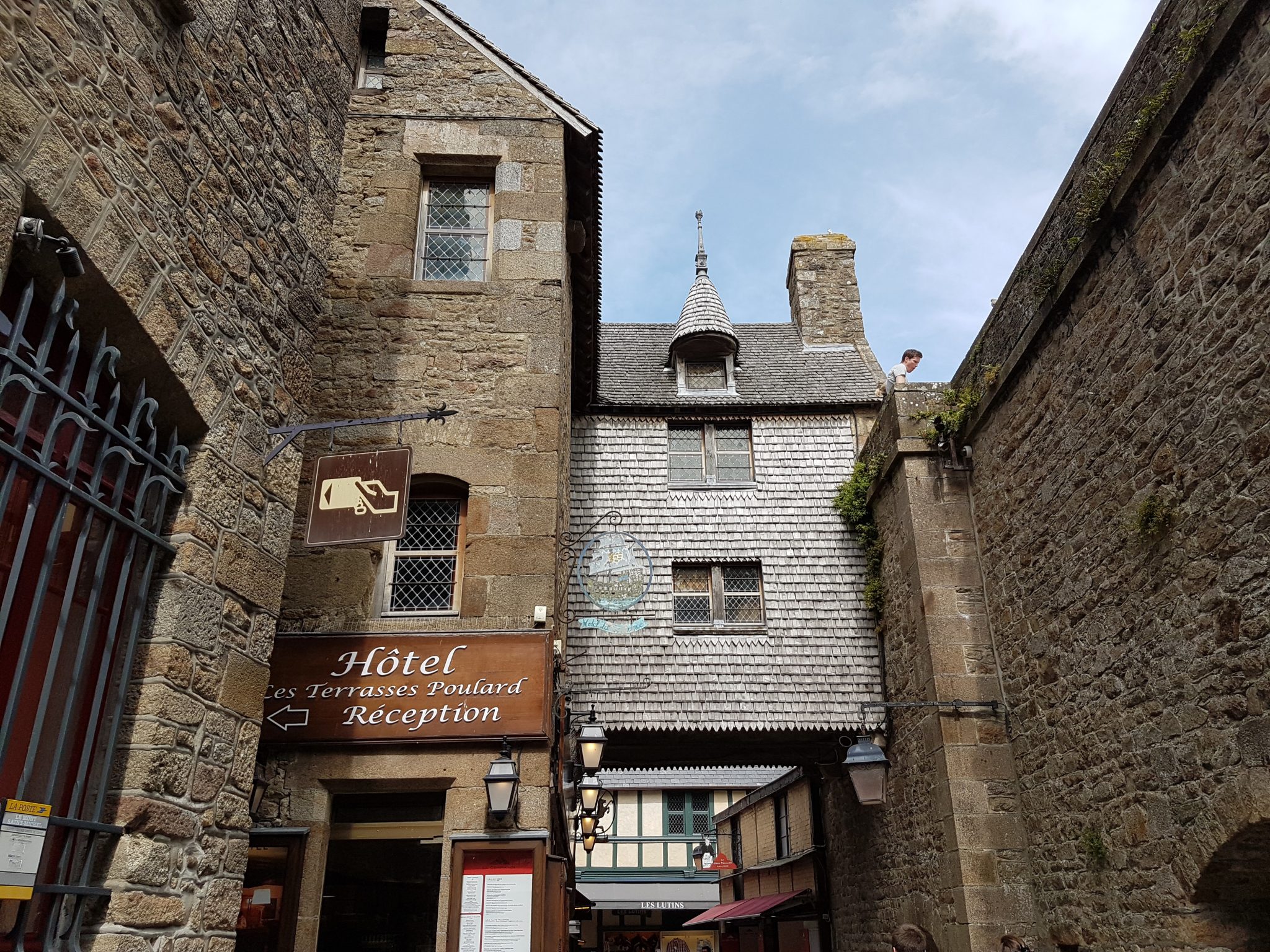 Mais revenons à la célèbre auberge historique et traditionnelle depuis 1888. L’hôtel*** La Mère Poulard, situé au cœur du Mont Saint-Michel, a conservé le caractère des belles auberges d’antan. Vous apprécierez le charme et le confort de cette maison célèbre et traditionnelle, de ses chambres avec vue sur la baie, l’Abbaye et la ville médiévale ainsi que la qualité des prestations mises à votre disposition. Les deux bâtiments historiques qui composent cet hôtel sont chargés d’histoire :