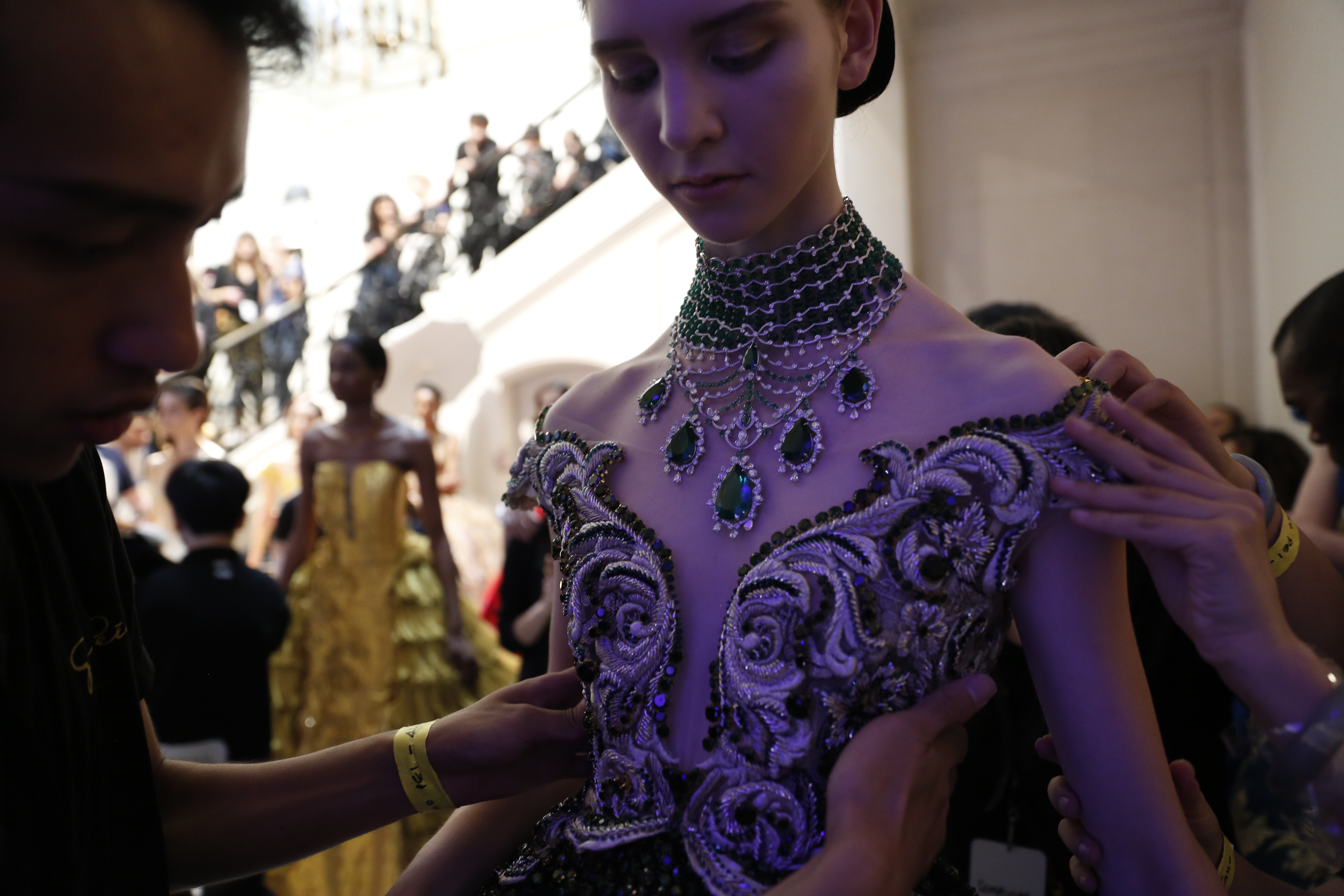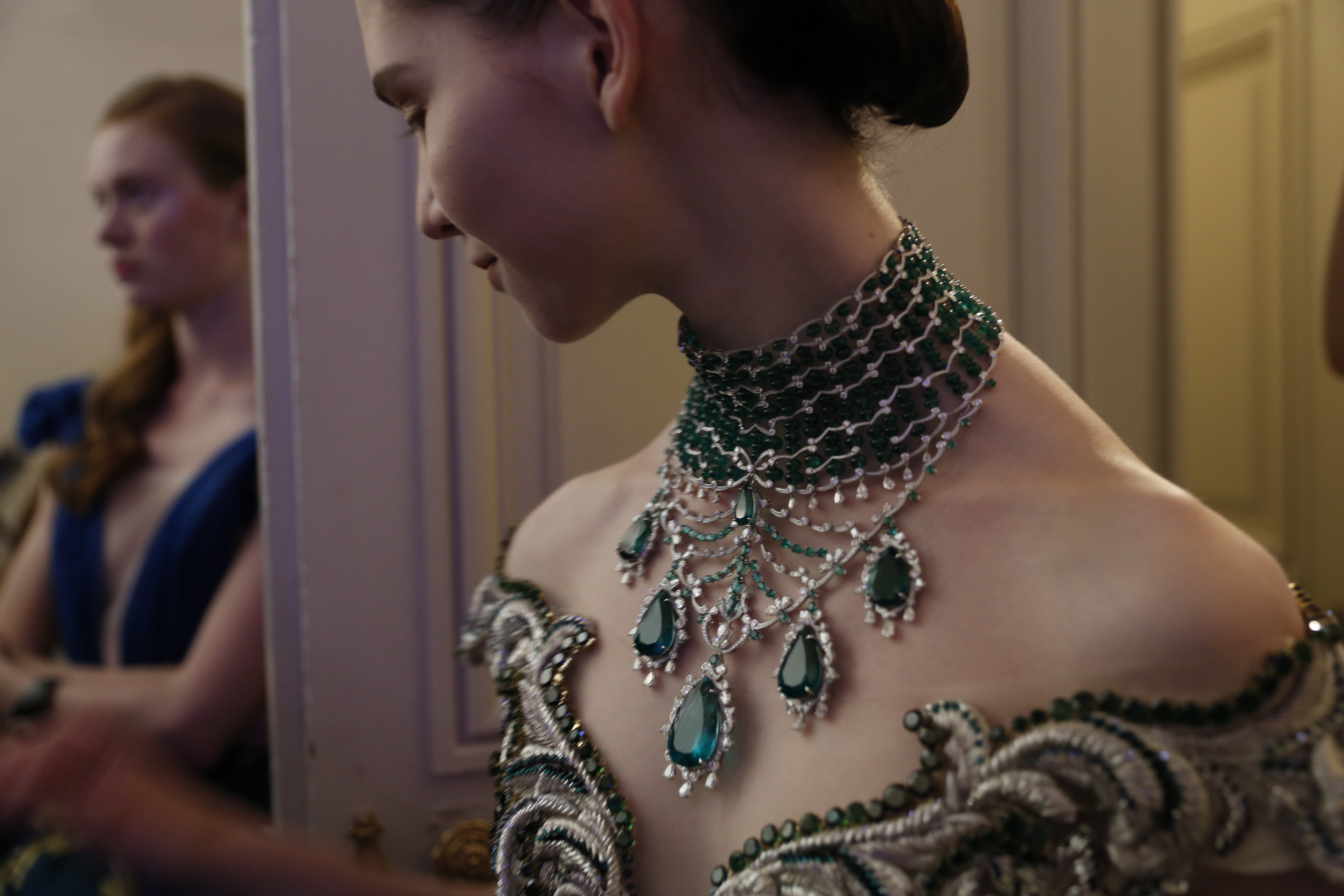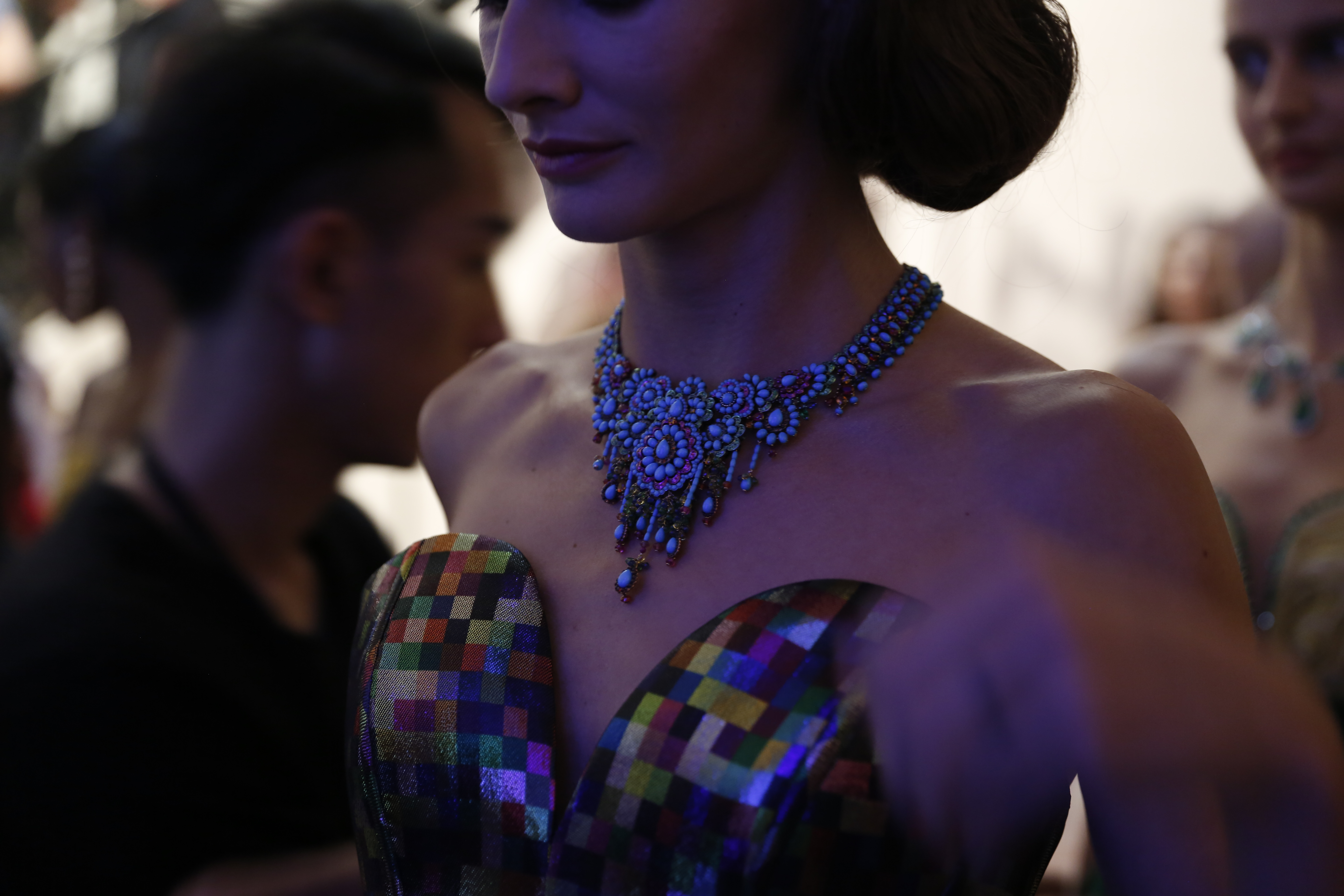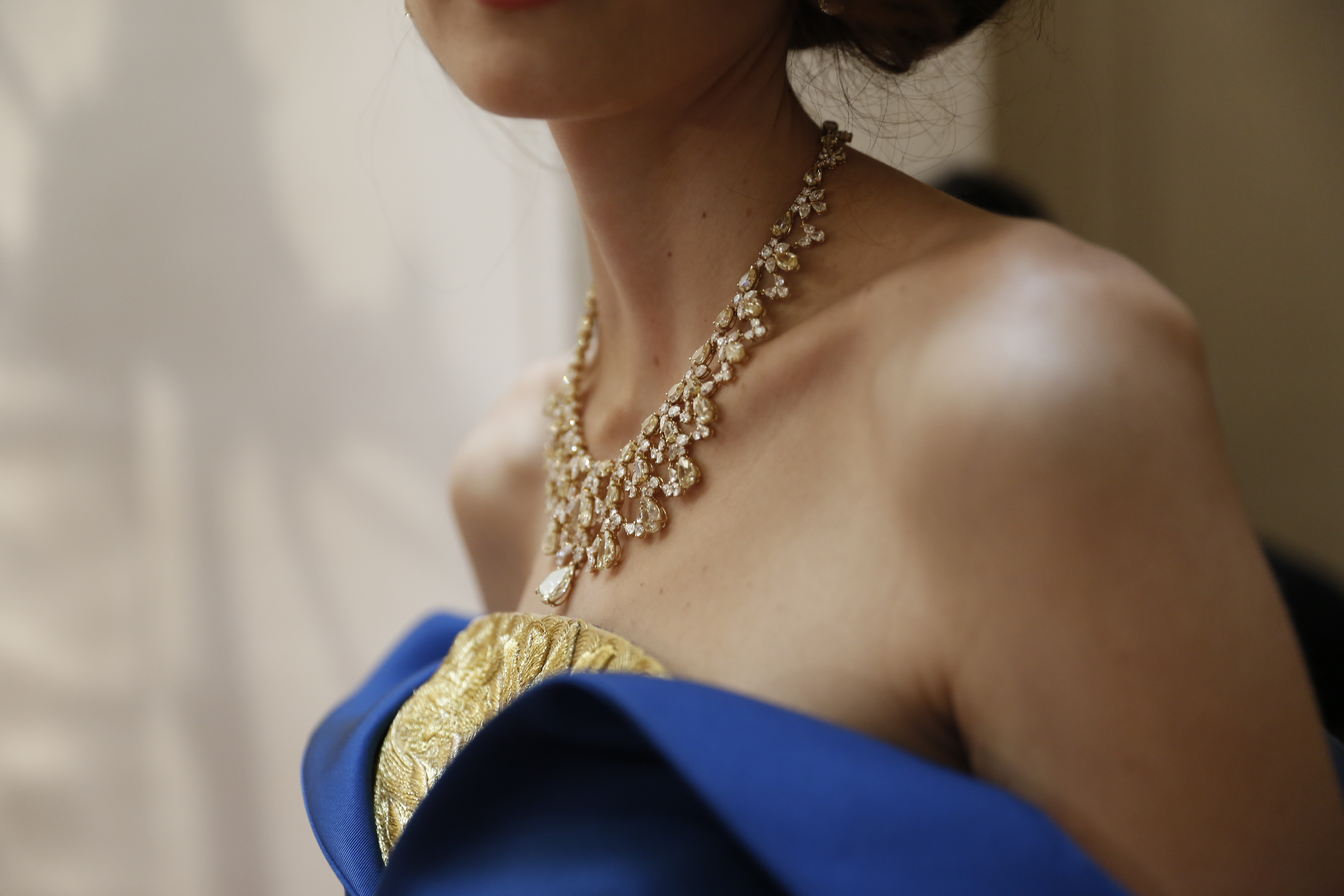 Pour cette collection, Guo Pei a travaillé main dans la main avec Caroline Scheufele, co-présidente et directrice artistique de Chopard, afin d’exprimer une vision idéale de la Couture et de la Haute Joaillerie.