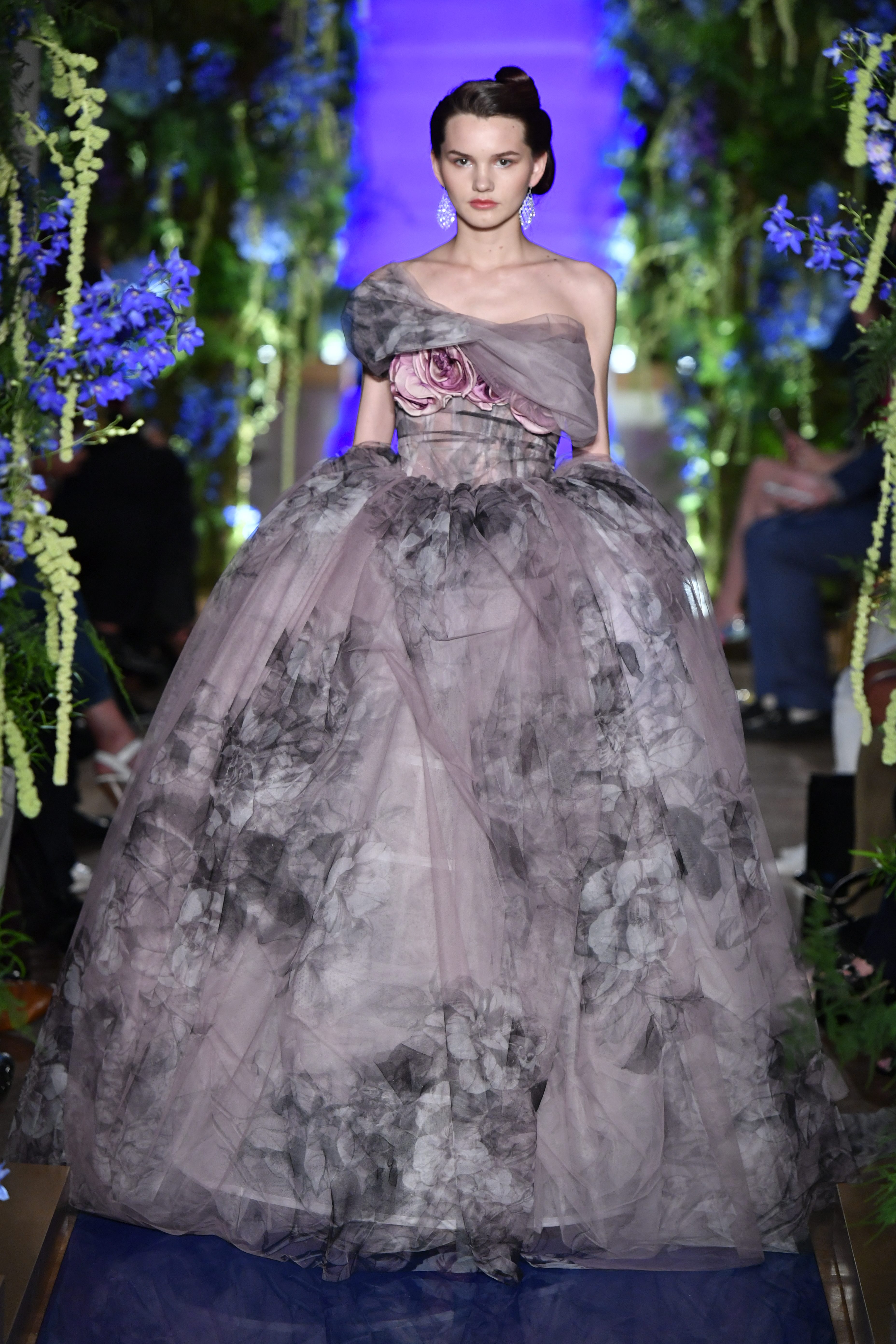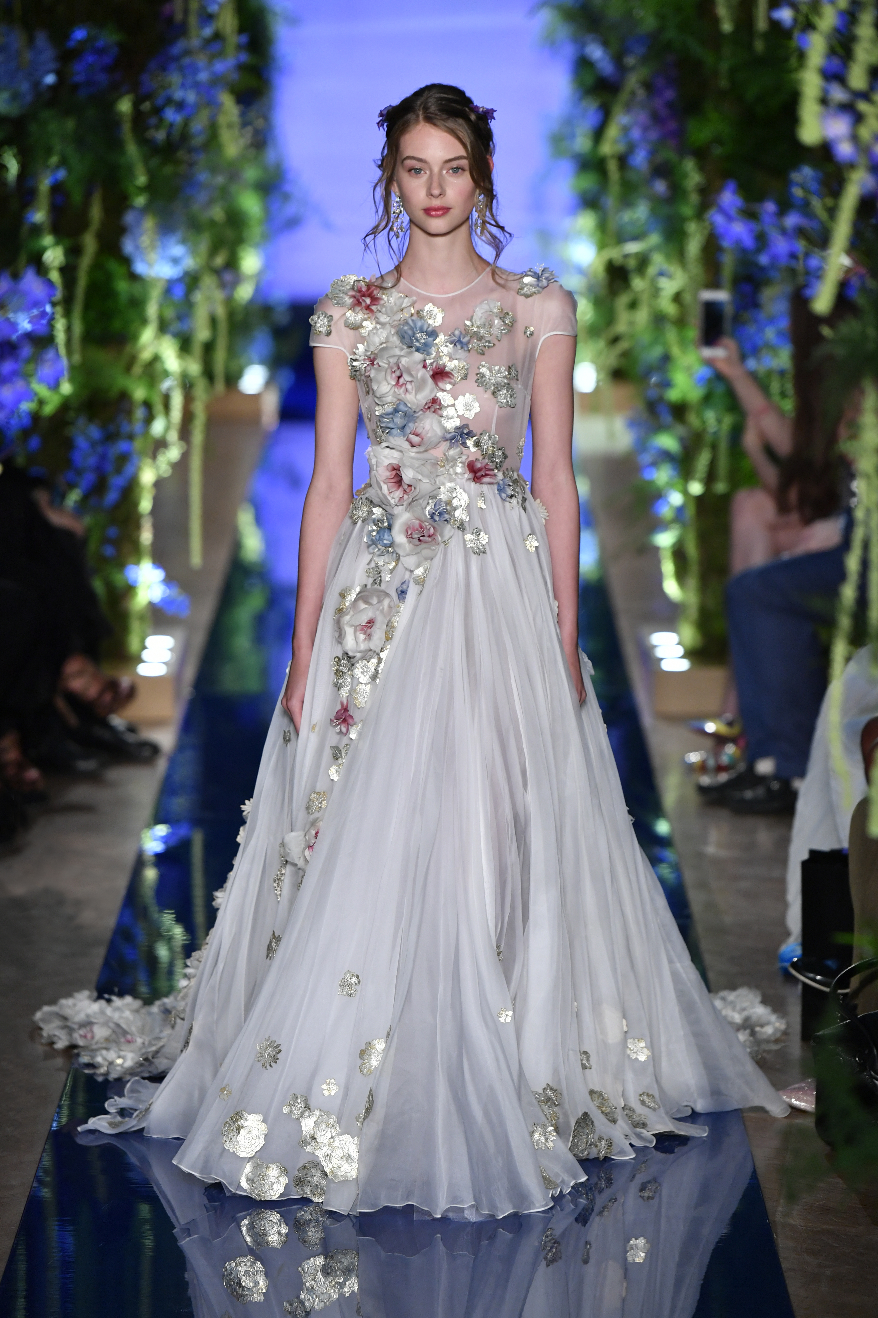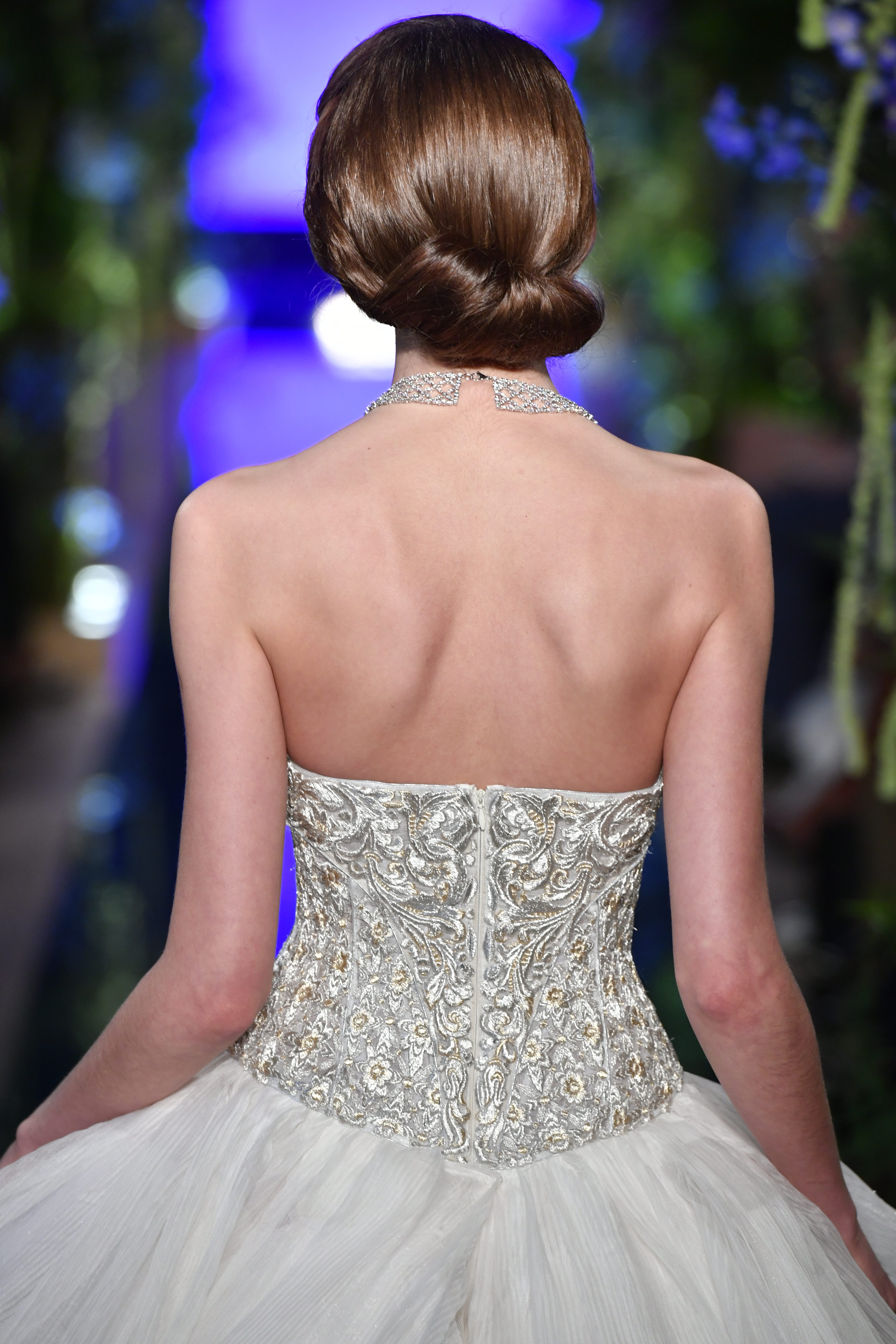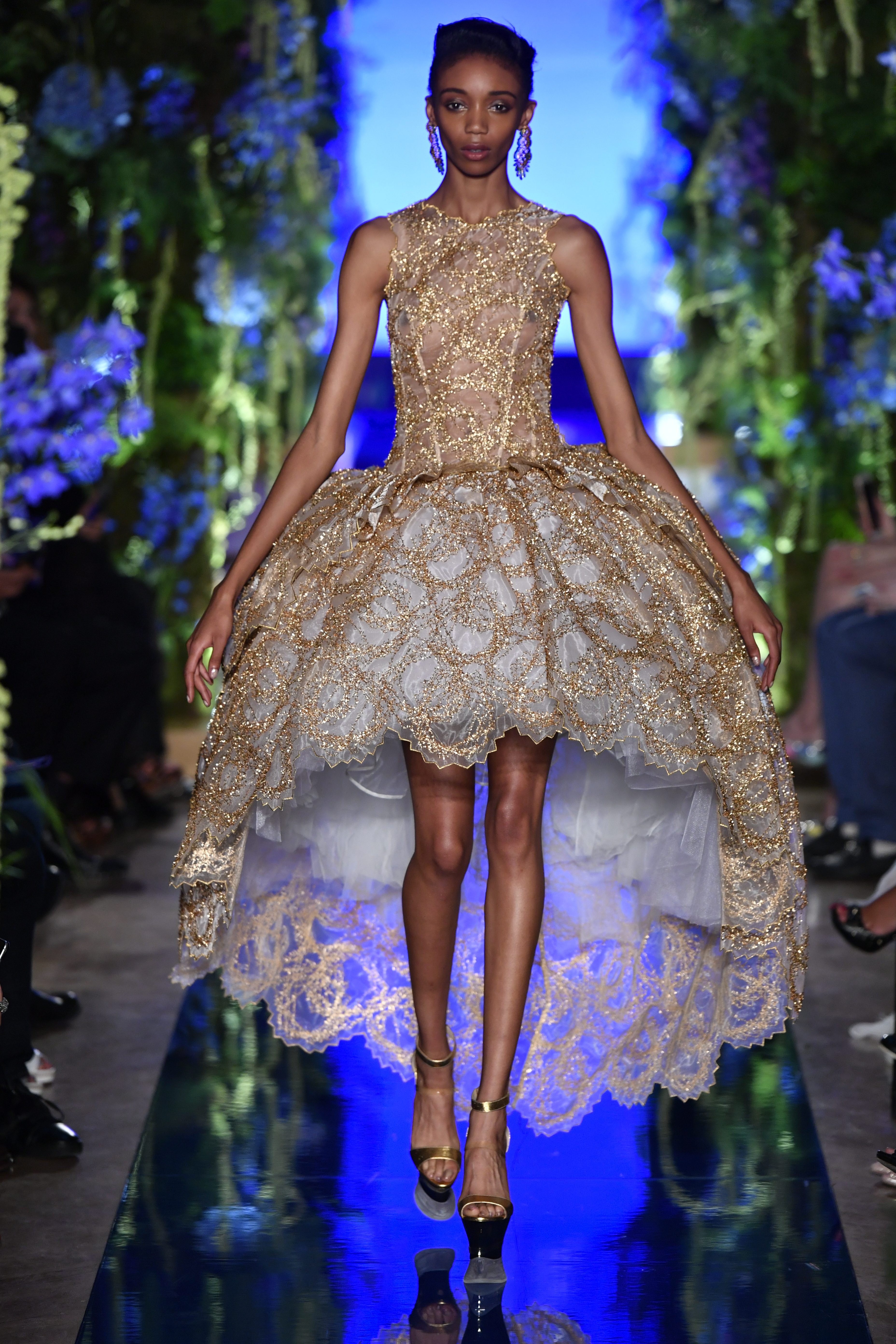 Broderies, perles et savoir-faire artisanal forment la signature de Guo Pei. Ses broderies en relief associées à des ornements délicats subliment l’aspect rythmé de la collection et lui donnent un charme féminin très vivant.