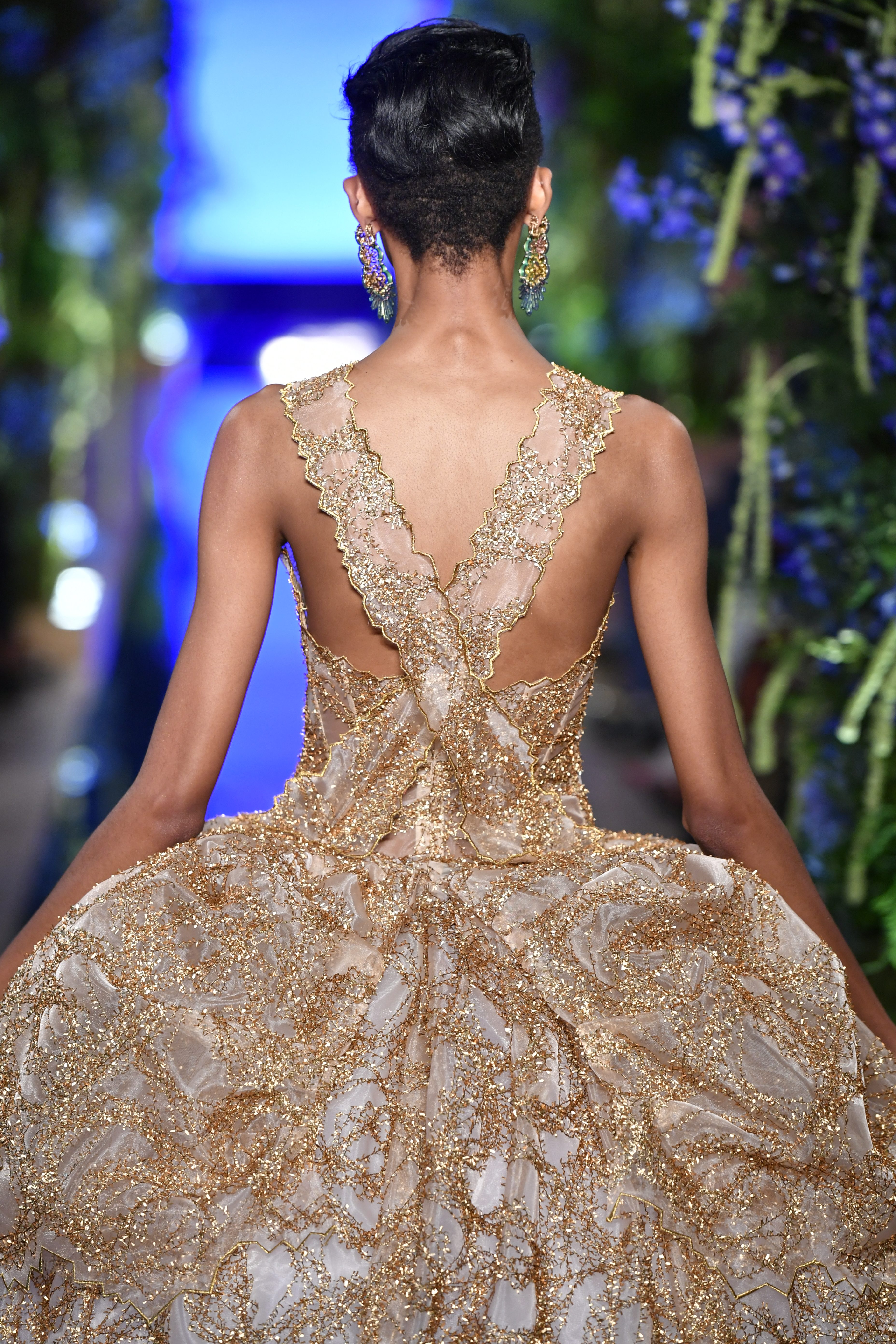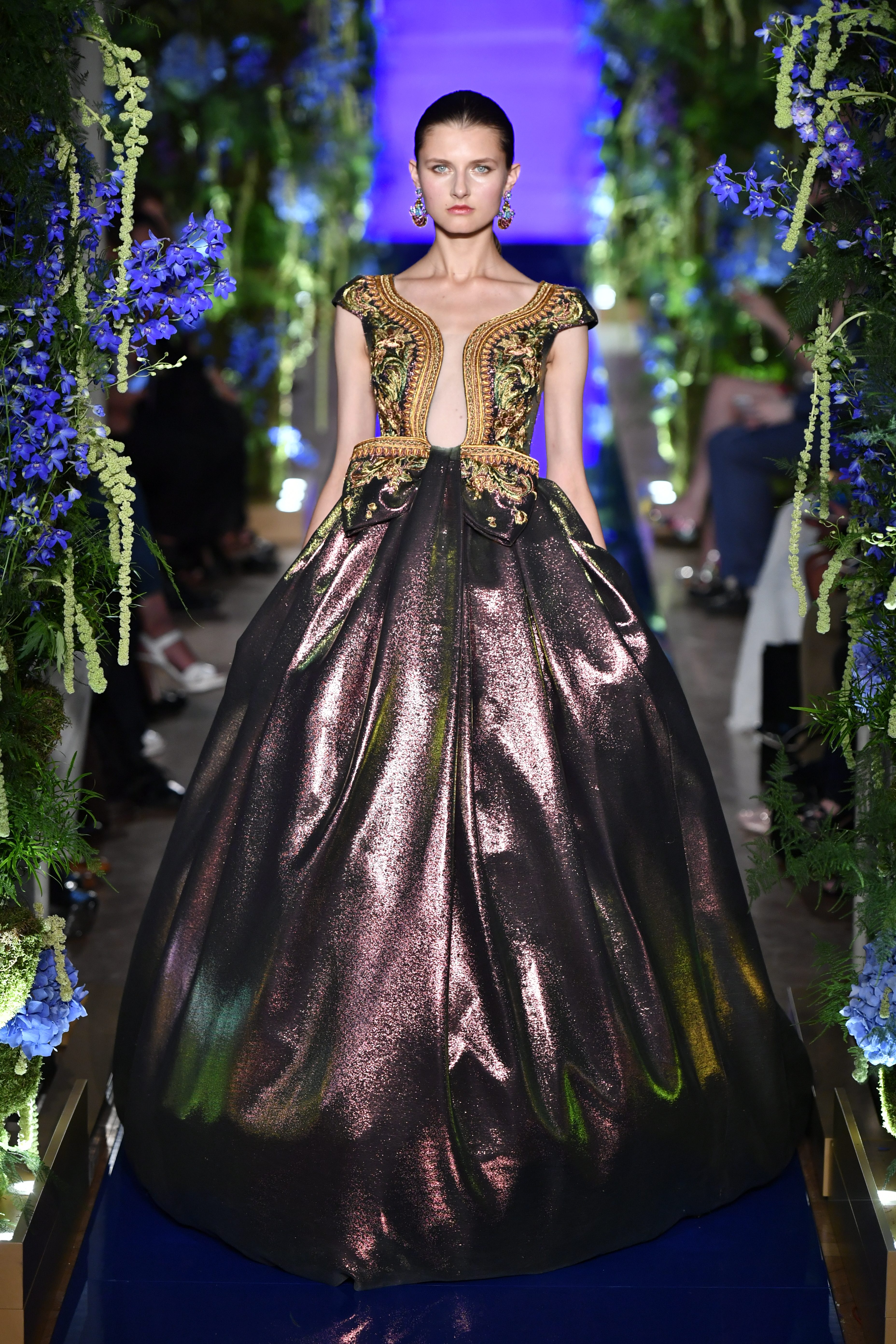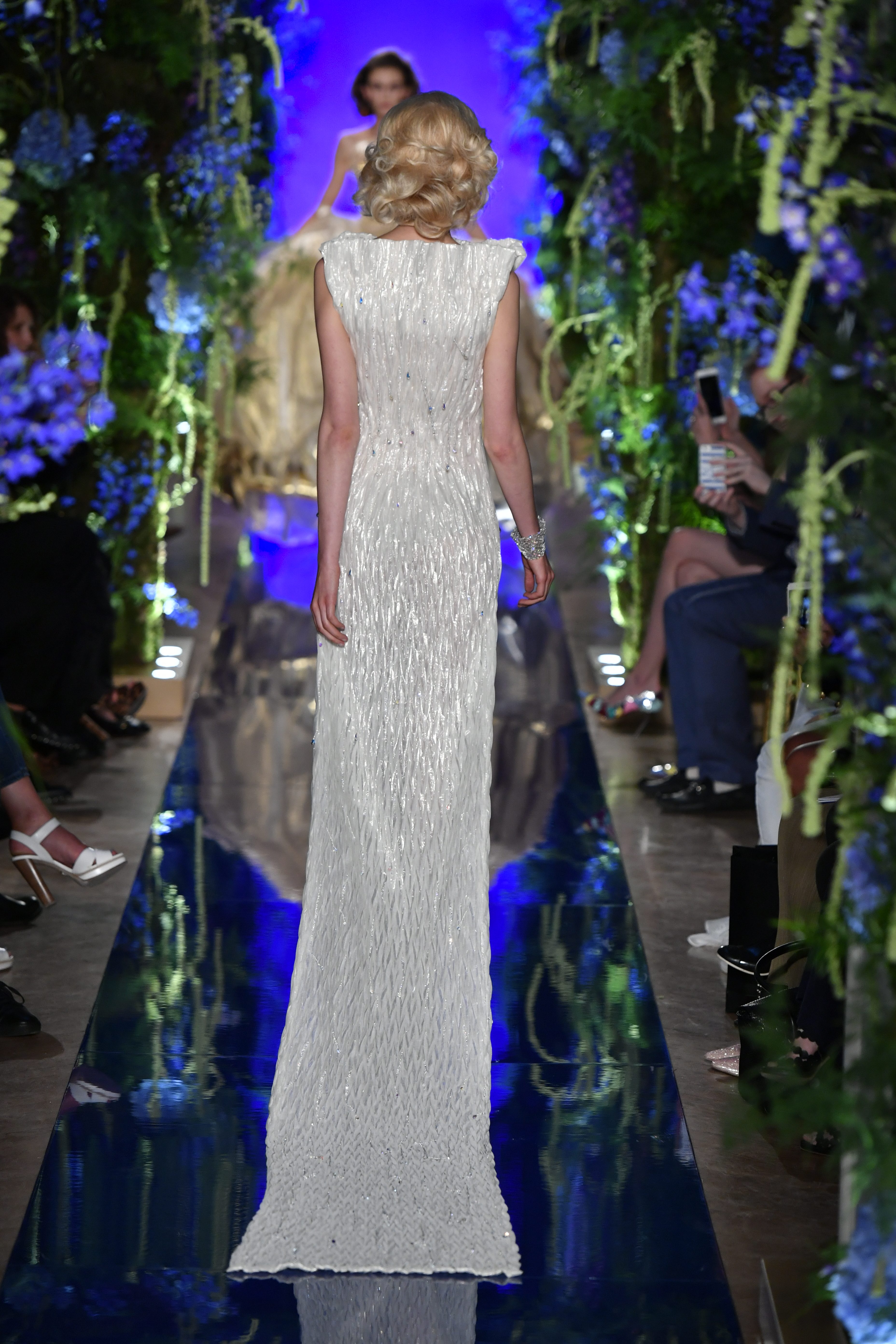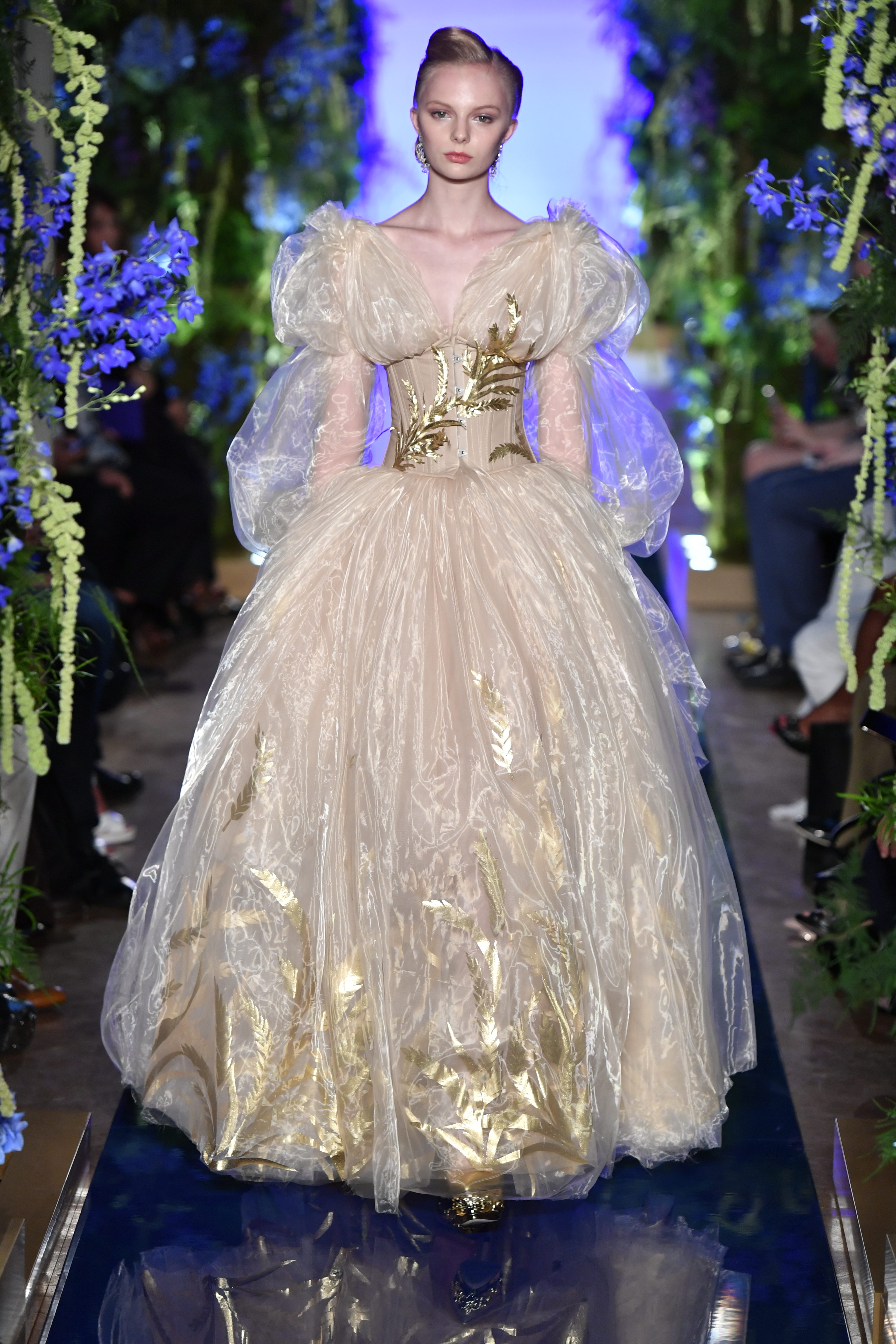 La grande époque de la Haute Couture n’est certes pas si ancienne, mais elle nous devient de plus en plus étrangère avec le temps qui passe. Guo Pei a créé 43 looks empreints d’un profond respect pour ce qui demeure de l’innocence de ces temps… l’industrialisation et la fast fashion ne cessent de nous éloigner des métiers d’art et de la formidable élégance qui prévalait à l’époque. Les modèles, jamais exagérés et sans affectation, associent les procédés les plus délicats et les lignes les plus classiques pour recréer la beauté essentielle du métier et rendre hommage à l’âge d’or de la Haute Couture.