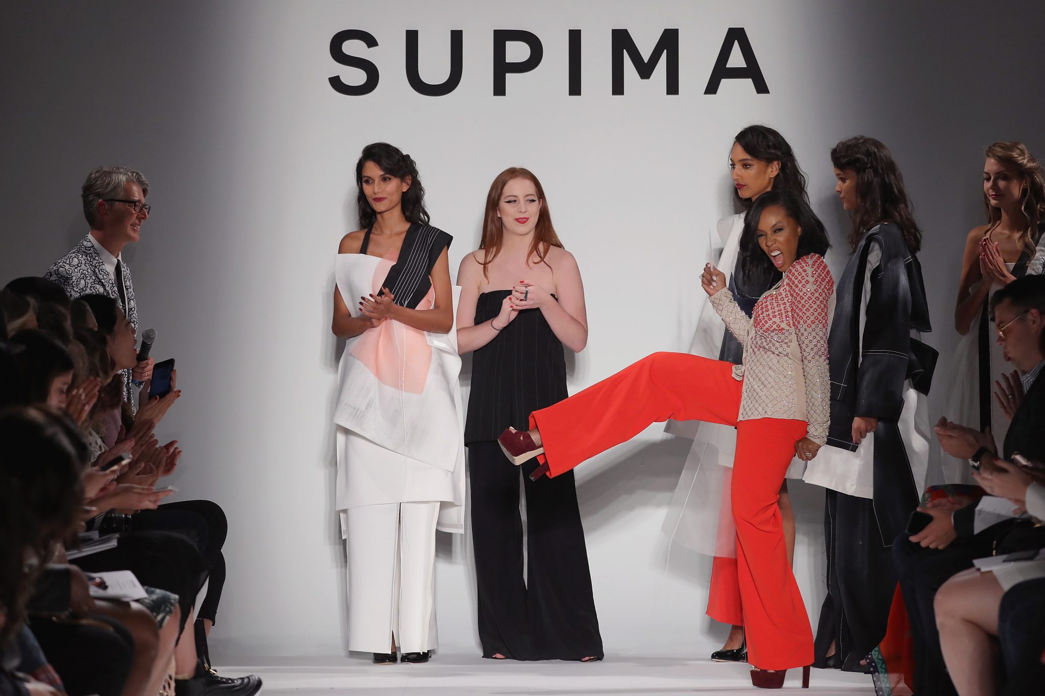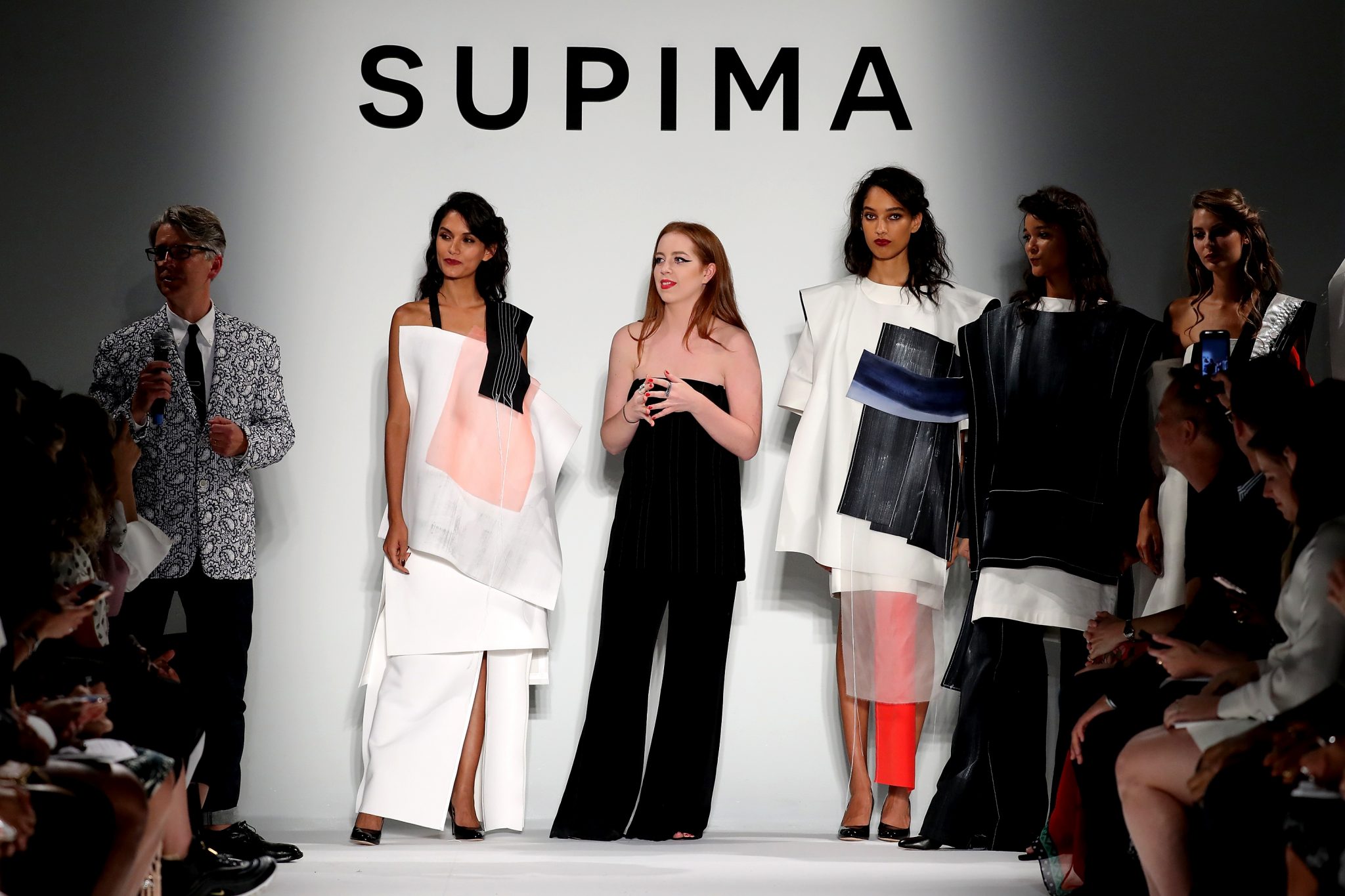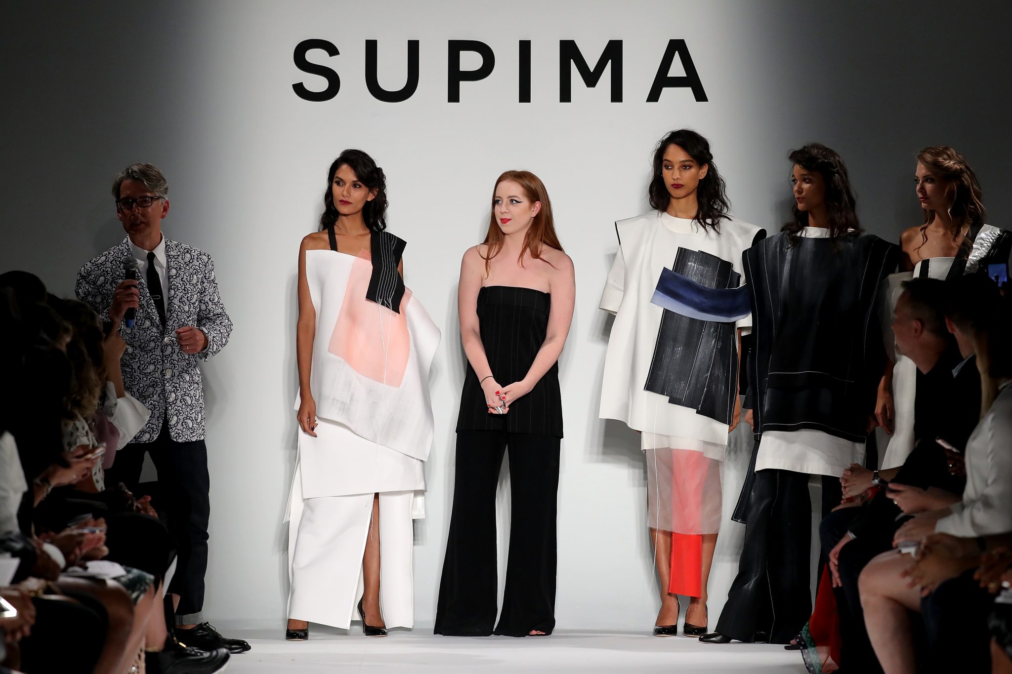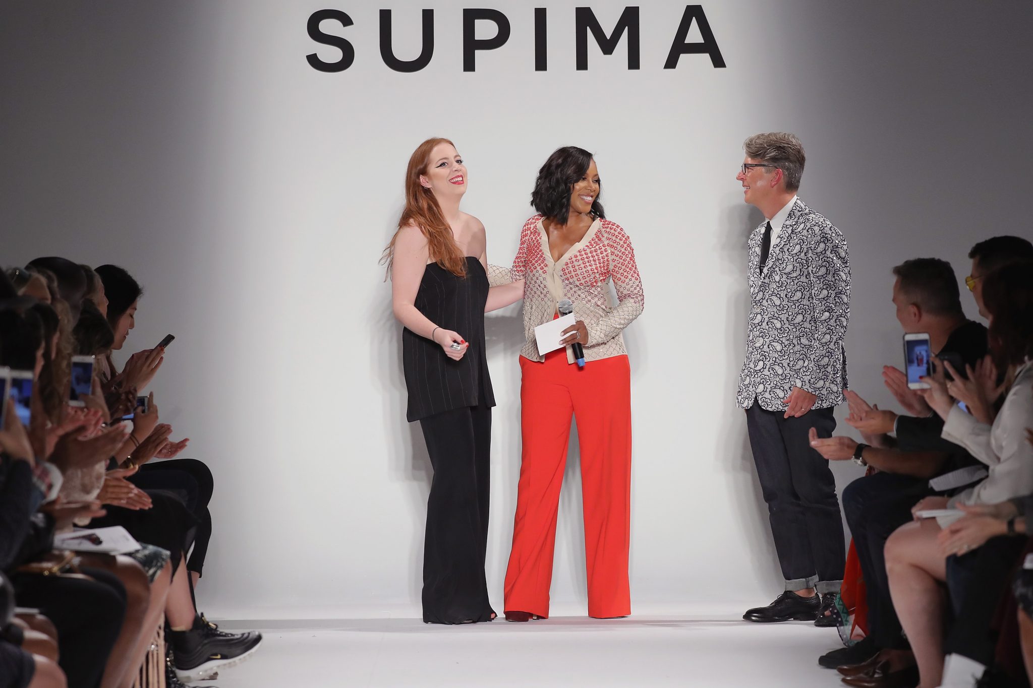 - NEW YORK, NY – SEPTEMBER 07: (L-R) Winner Alyssa Wardrop, FIT, June Ambrose, and Buxton Midyette attend Supima Design Competition SS18 runway show during New York Fashion Week at Pier 59 on September 7, 2017 in New York City. (Photo by JP Yim/Getty Images for Supima Design Competition)