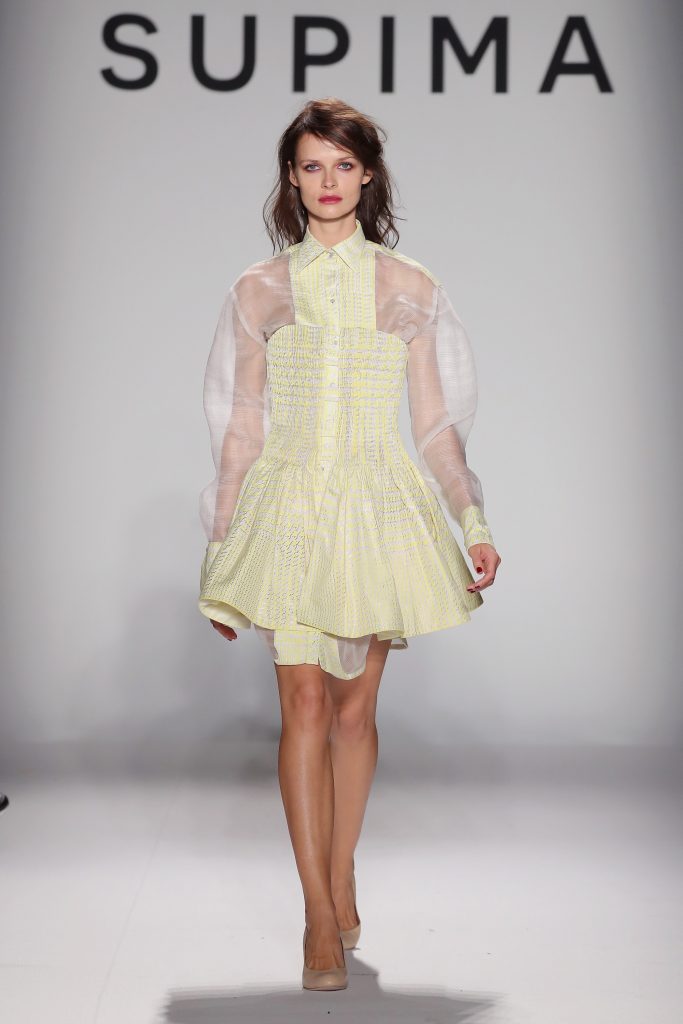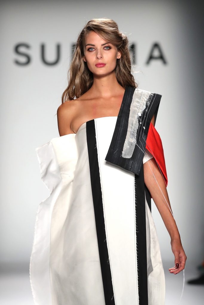 - NEW YORK, NY – SEPTEMBER 07: A model walks the runway at Supima Design Competition SS18 during New York Fashion Week at Pier 59 on September 7, 2017 in New York City. (Photo by JP Yim/Getty Images for Supima Design Competition)