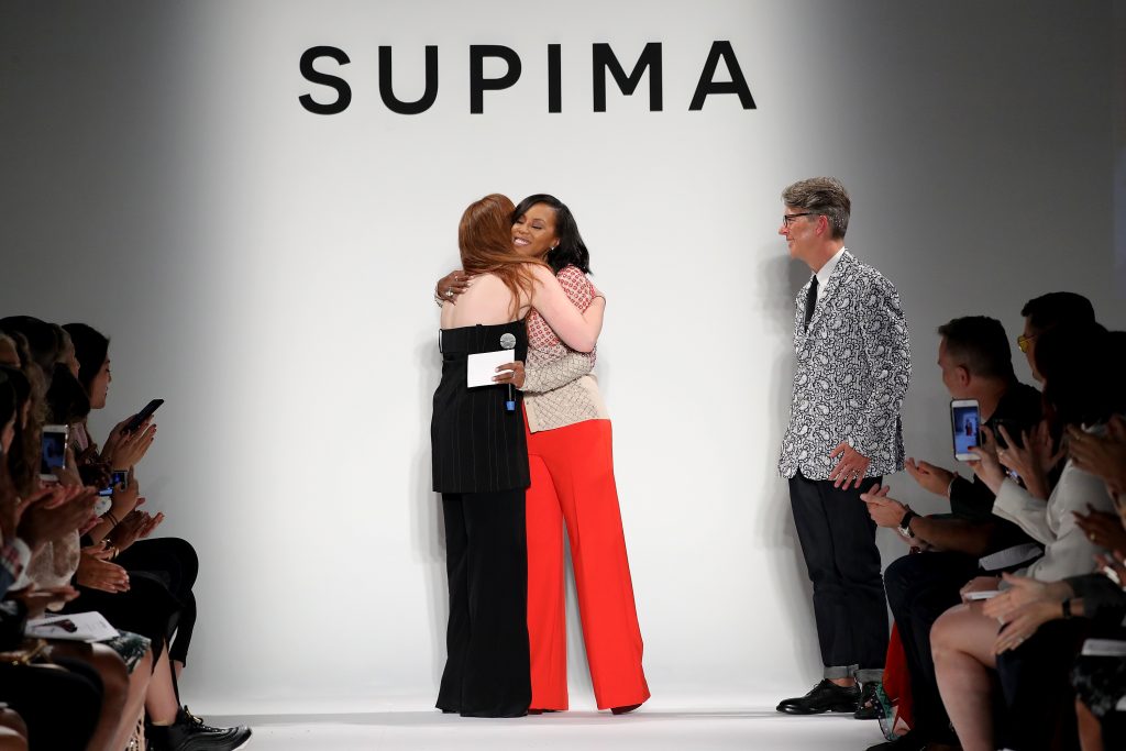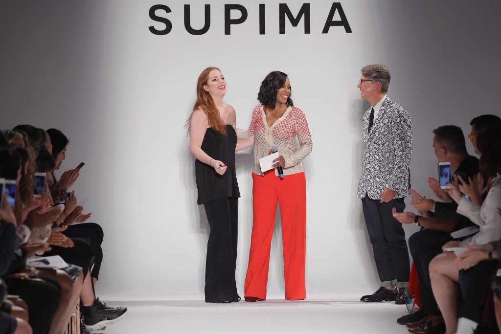 - NEW YORK, NY – SEPTEMBER 07: (L-R) Winner Alyssa Wardrop, FIT and June Ambrose attend Supima Design Competition SS18 runway show during New York Fashion Week at Pier 59 on September 7, 2017 in New York City. (Photo by JP Yim/Getty Images for Supima Design Competition)
