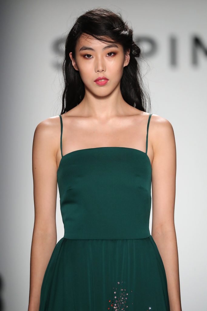 - NEW YORK, NY – SEPTEMBER 07: Margaret Kwon, Parsons The New School walks the runway at Supima Design Competition SS18 during New York Fashion Week at Pier 59 on September 7, 2017 in New York City. (Photo by JP Yim/Getty Images for Supima Design Competition)