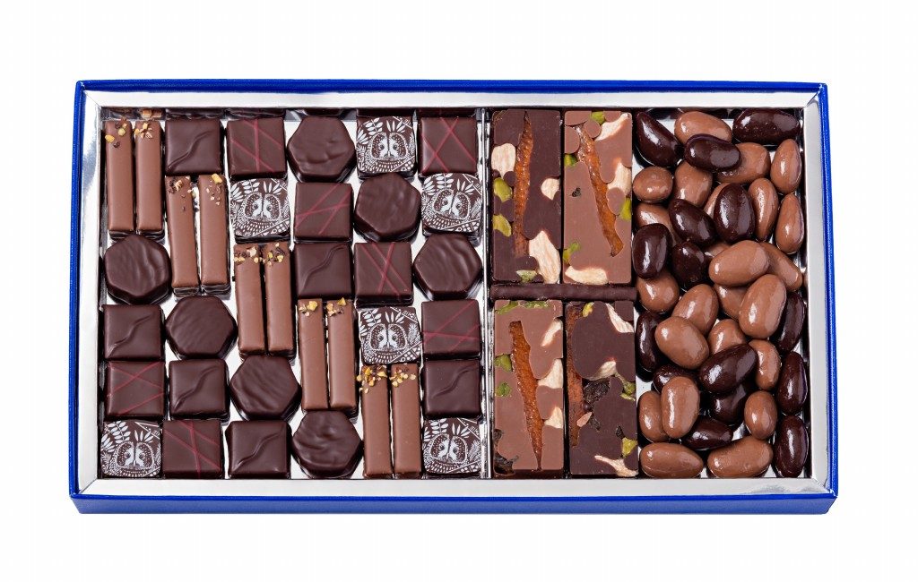 Cinq nouvelles créations signent une collection vive et acidulée où la Mara des Bois teintée de fleur d’oranger rêve de chocolat, le duo d’agrumes Kumquat/Kalamansi se dévore du confit au zeste, la pâte d’amande joue de chocolat, le mendiant se grignote en plaisir lacté et la ganache noire du Brésil dévoile une nature chocolatée éprise de fruit de la passion.
