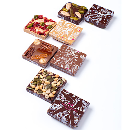 Cinq nouvelles créations signent une collection vive et acidulée où la Mara des Bois teintée de fleur d’oranger rêve de chocolat, le duo d’agrumes Kumquat/Kalamansi se dévore du confit au zeste, la pâte d’amande joue de chocolat, le mendiant se grignote en plaisir lacté et la ganache noire du Brésil dévoile une nature chocolatée éprise de fruit de la passion.