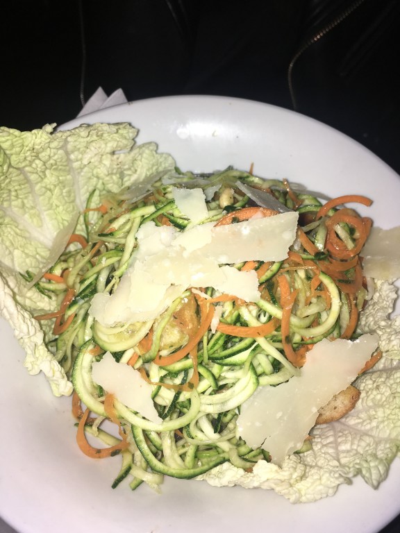 En plats, les amoureux de cuisine healthy seront ravis de tester les spaghettis de légumes (courgettes, tomate cuisson douce, pesto et ail). En cette fin d’été, elles sont un moment de fraicheur.