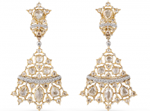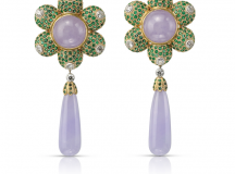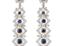 Frappé lors de ses derniers voyages par l’engouement des femmes du monde entier pour les boucles d’oreilles pendantes, le créateur signe ici une collection construite sur des partis pris esthétiques qui sortent de la norme. Superbement assorties, les pierres précieuses concrétisent la force émotionnelle du dessin. Avec ces boucles d’oreilles pendantes, Andrea Buccellati magnifie le style initié par son père Gianmaria, il enrichit cette collection et revisite les codes centenaires de la haute joaillerie pour dévoiler les formes les plus audacieuses. Soit un étourdissant ballet de , tanzanites, saphirs, émeraudes, jade, diamants blancs taille brillant et taille rose.