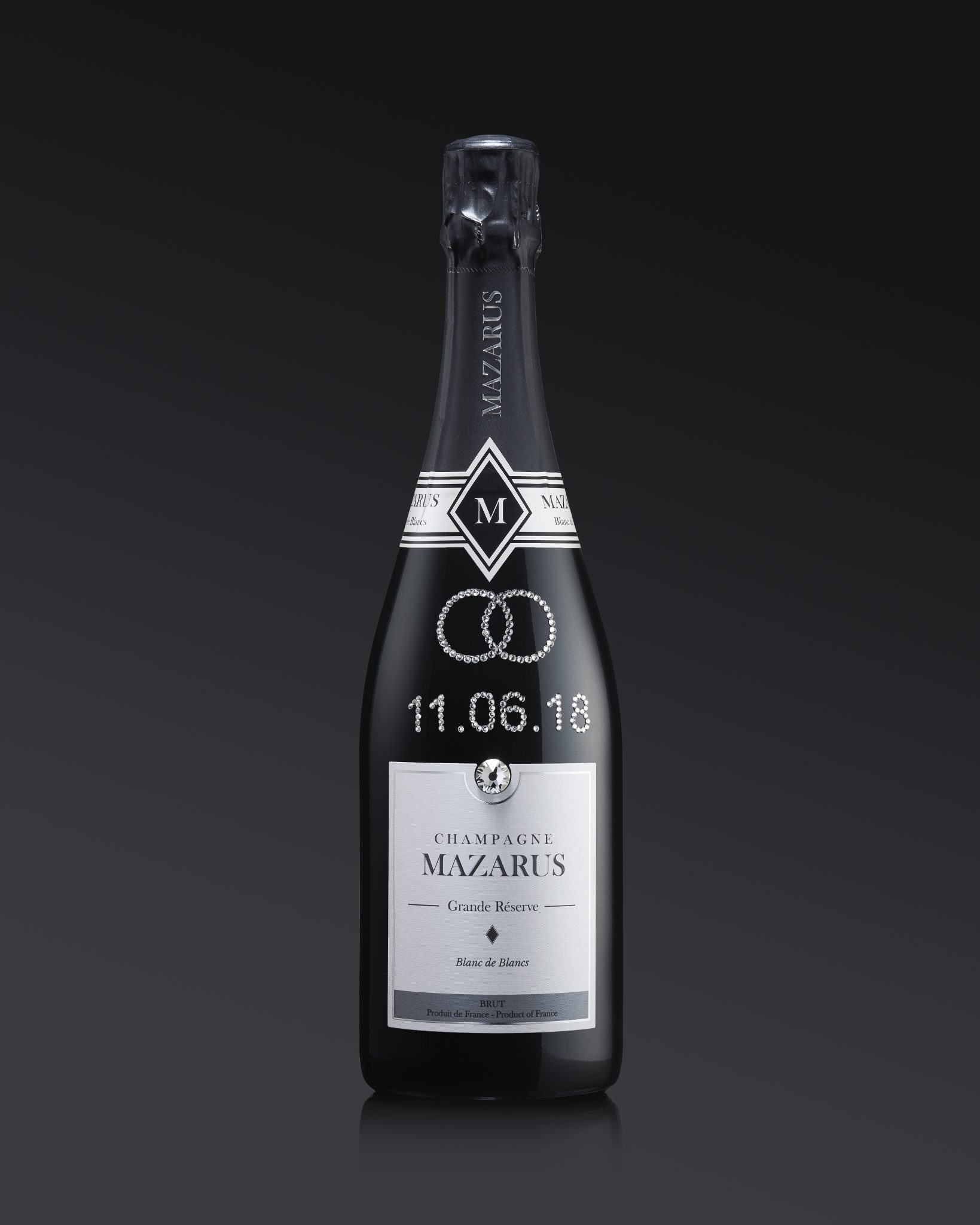 Mazarus offre également un service unique et exclusif, celui de personnaliser sa bouteille en cristaux Swarovski® pour y inscrire un prénom, une date, un symbole et bien plus. Entièrement fait-main, chaque personnalisation est réalisée dans l’atelier de création situé à Amiens.