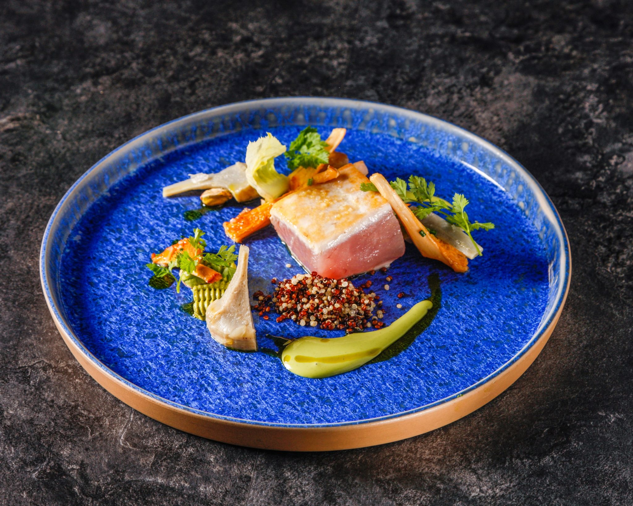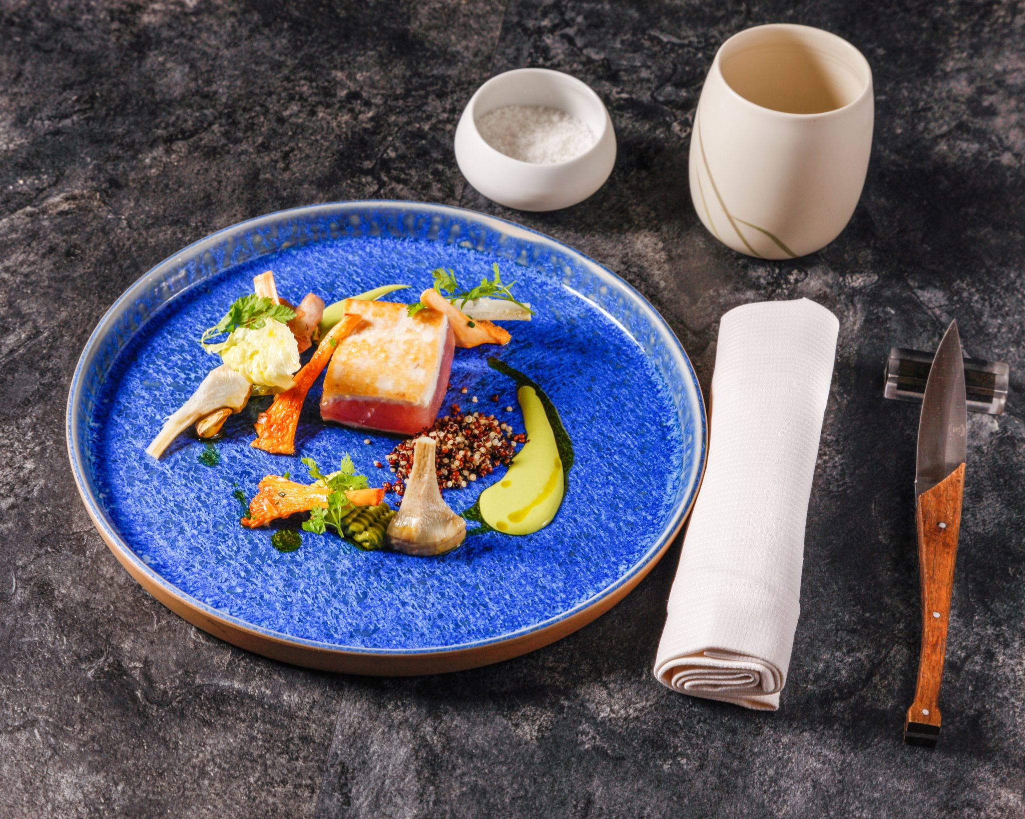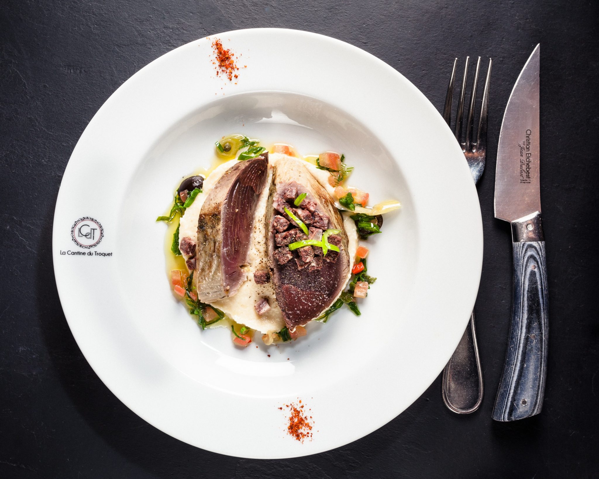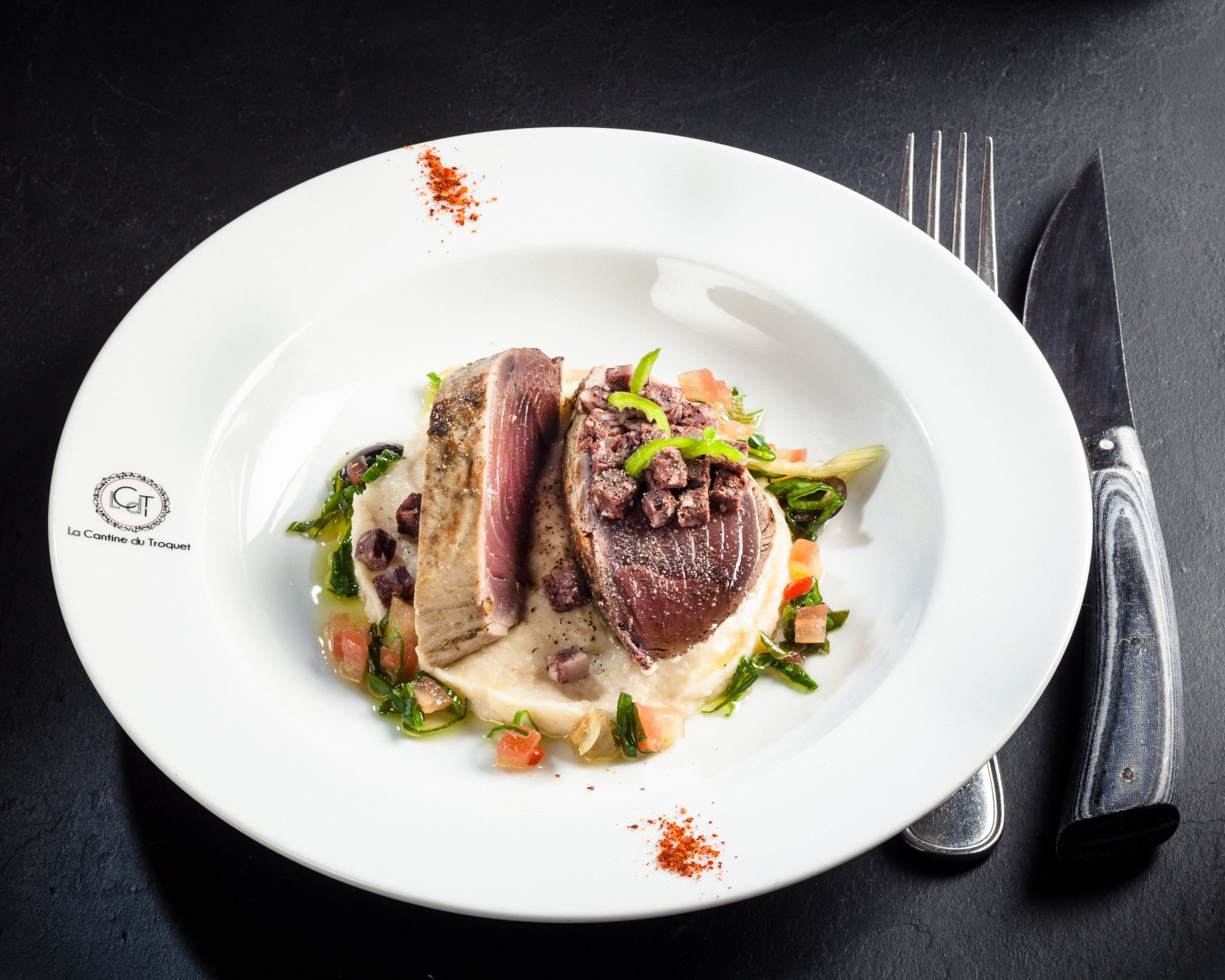 Au menu : Dôme intense chocolat, cheesecake à la passion, mousseline de céleri, tomate coeur de boeuf rôtie 36h, cabillaud coco, ravioles coulantes, cèpes poêlés, arlequin de courgettes, tartare de bar à la poutargue…