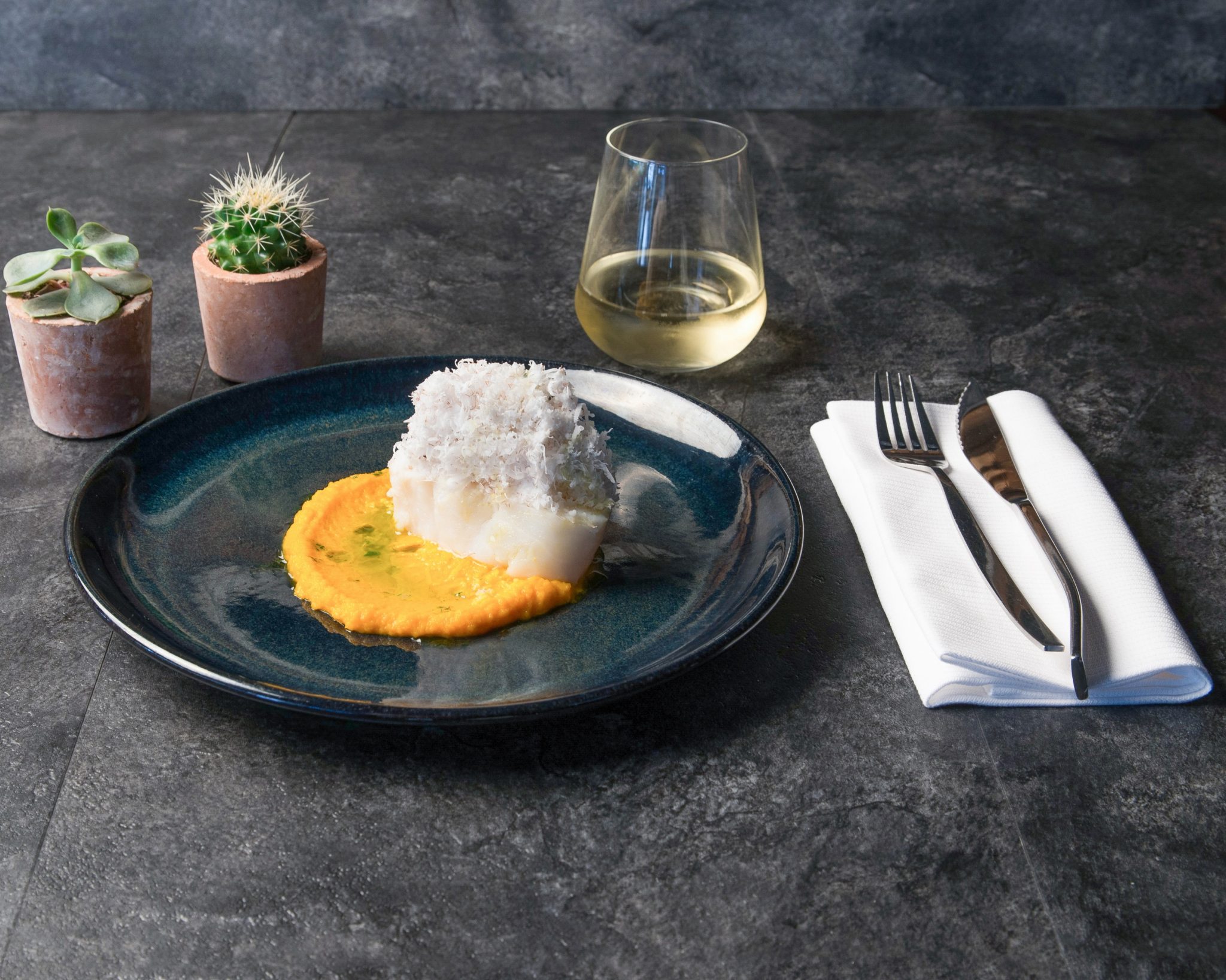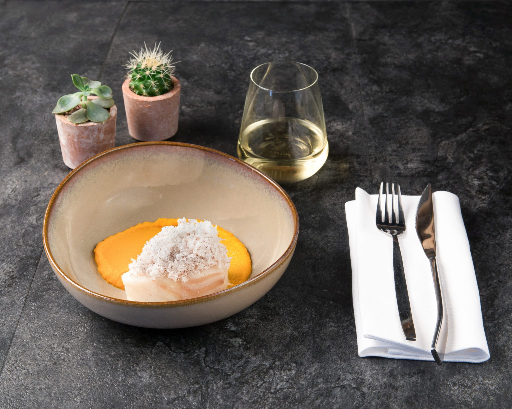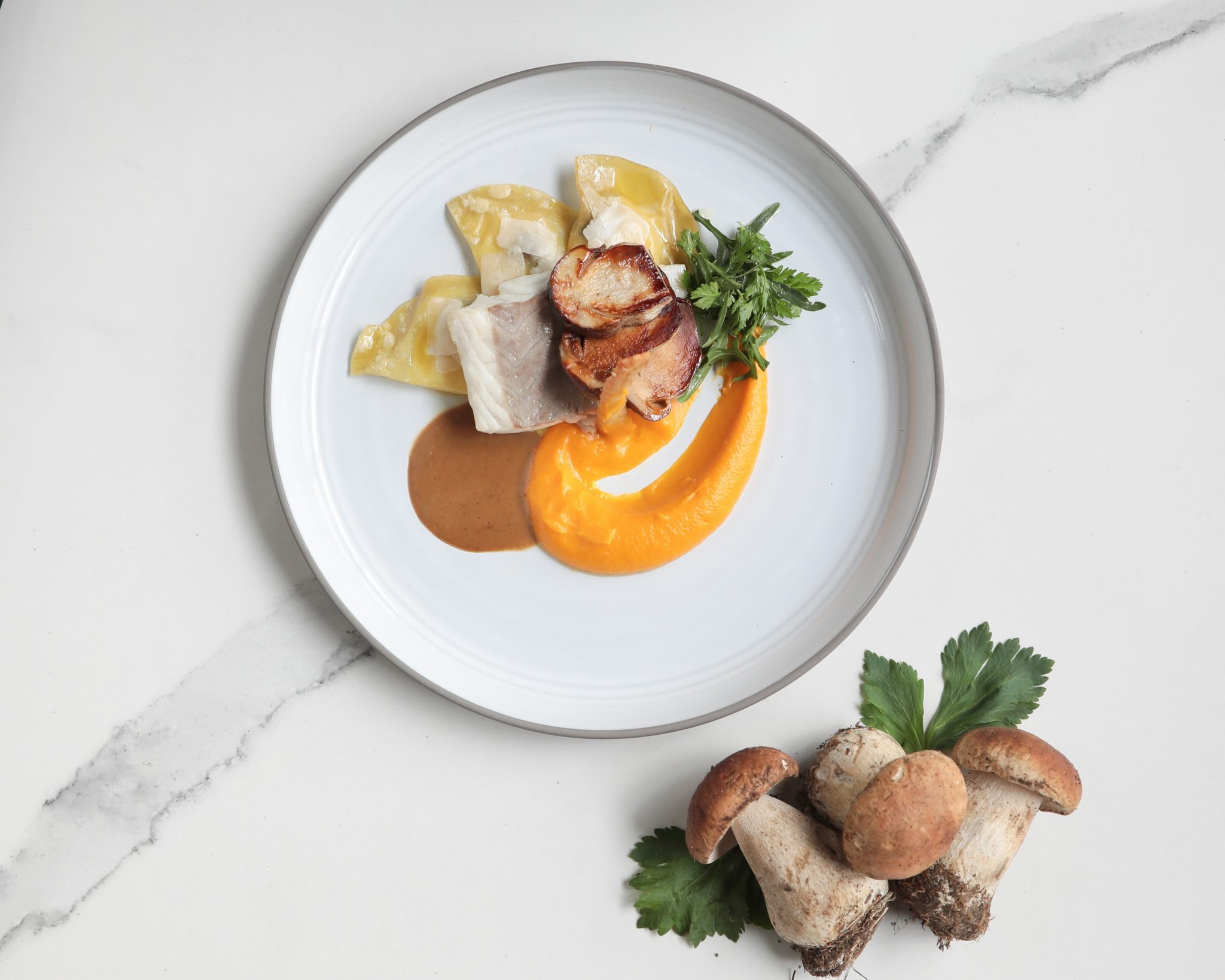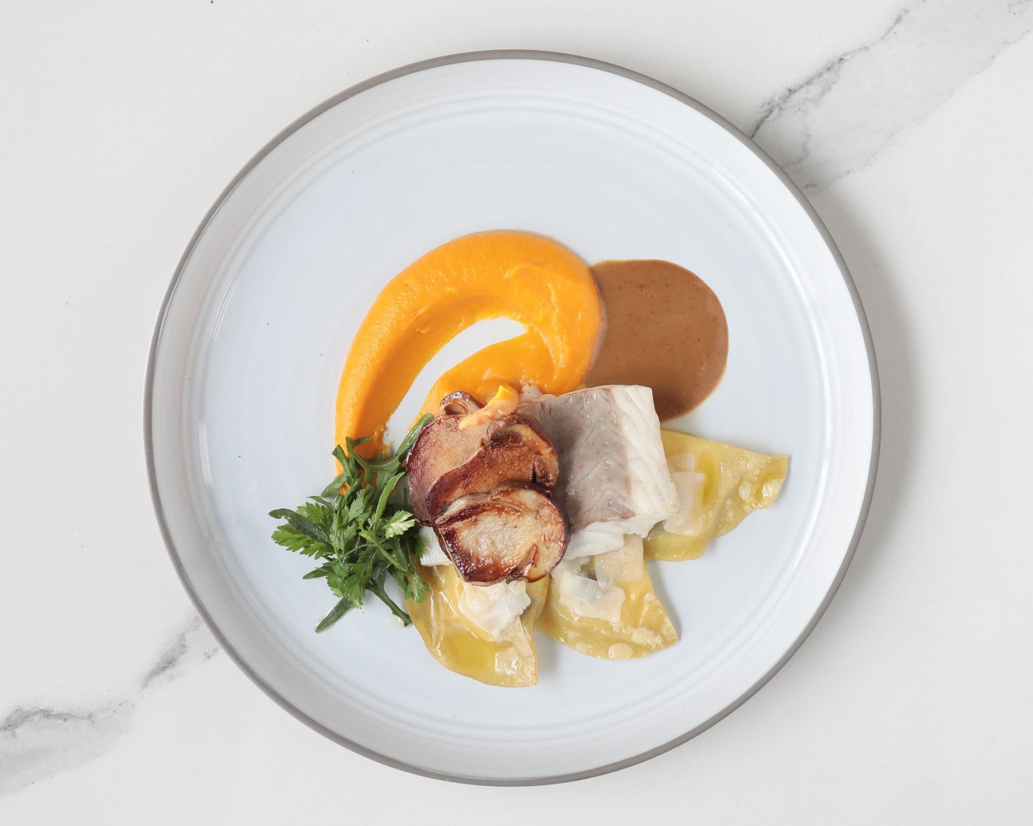 Au menu : Dôme intense chocolat, cheesecake à la passion, mousseline de céleri, tomate coeur de boeuf rôtie 36h, cabillaud coco, ravioles coulantes, cèpes poêlés, arlequin de courgettes, tartare de bar à la poutargue…