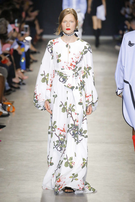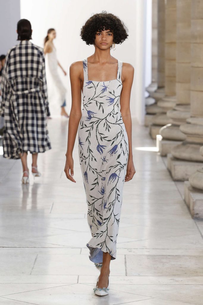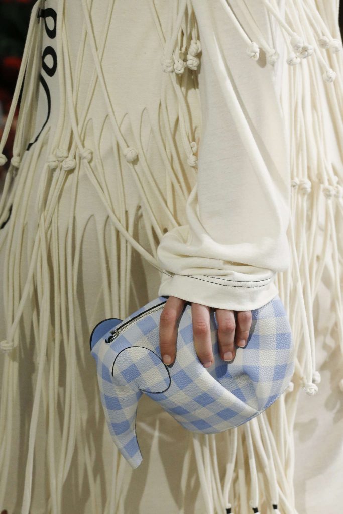 De créateur cérébral, il passe à maître des tendances. Au risque de devenir trop easy et portable – Balearic selon BoF. Un défilé mainstream, comme une mauvaise compile musique dance pour raves party sur Ibiza beach. C’est là que l’on comprend toute l’envergure d’une collection : à peine montrée elle est soumise aux plus virulentes éloges et critiques. Il serait dur de s’arrêter là en ce qui concerne ce défilé, ou de se contenter de décrire les tendances de l’été 2018 : patchwork de chutes de tissus imprimés, esprit seventies et silhouettes longilignes. Un brin champêtre un brin safari. Au regard des détails, de la musique ou de la scénographie du défilés c’est faire déshonneur à la pensée de J.W Anderson que de la momifier dans une mode IN. Parmi les suiveurs, Andrew G.N propose une collection fleurie, agrémentée de perles et rubans. Même élan chez Christian Wijnants.