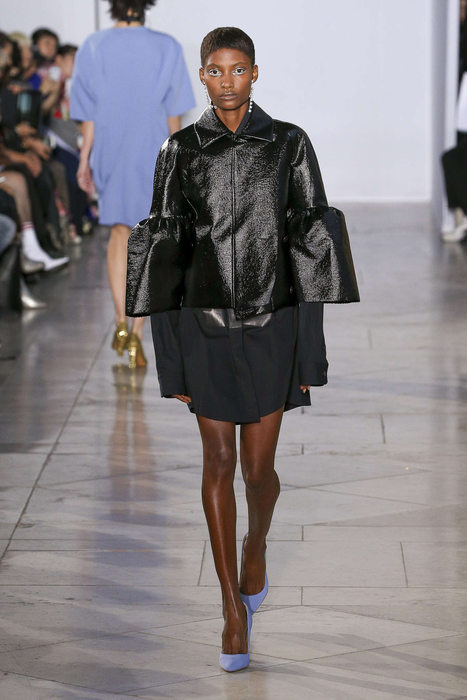 Fidèle à sa signature un brin punk, Lutz Huelle continue son travail sur les drapées. Coupes asymétriques, et blousons qui se muent aux robes. Au néo-grunge nineties, de nouvelles notes se sont gréffées. Des vestes et capes qui auraient pu s’intégrer à un hommage personnel et moderne à Jeanne Lanvin. Pour devenir roi, Huelle s’attaque à la féminité parisienne.